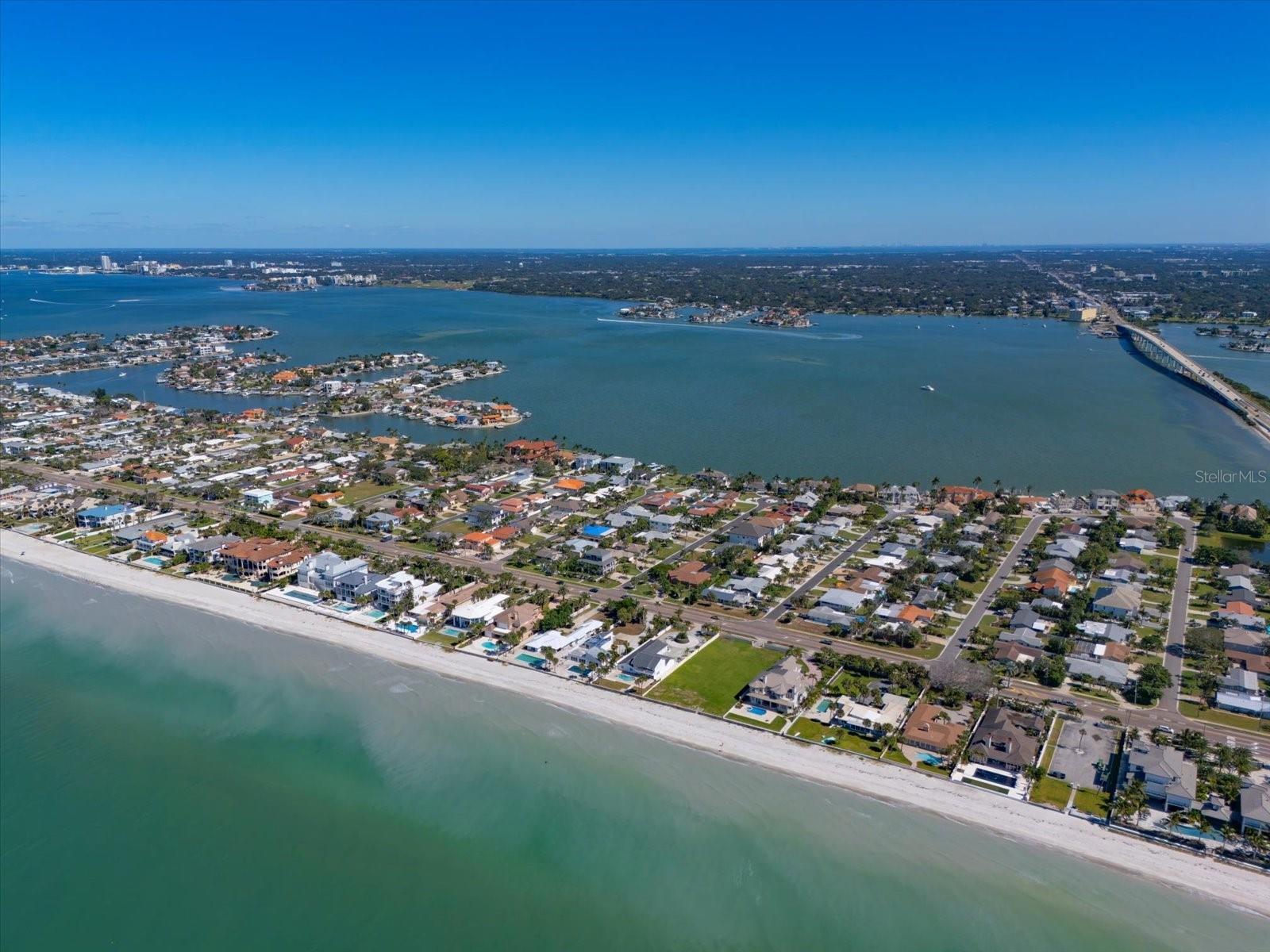 One or more photo(s) has been virtually staged. Experience luxurious coastal living in this exquisite custom-built home in the prestigious community of Belleair Beach, one of Florida’s most exclusive seaside enclaves. Offering elegant living and multiple entertaining spaces, this elevated residence was thoughtfully designed in 2016, providing peace of mind with a main floor elevation of 17.5 feet. Just five houses from both the Intracoastal Waterway and the Gulf of Mexico, this ideal location allows you to enjoy postcard perfect sunrise and sunset views from the expansive covered front porch. Inside, the home’s refined craftsmanship is immediately evident — from hand-scraped hardwood and marble flooring, vaulted ceilings and intricate moldings to Abalone shell accent walls. Light-filled living areas and a gleaming white kitchen with stainless steel appliances, an island with seating, and abundant storage, flow seamlessly for effortless and impressive entertaining. An elevator adds convenience to the main floor. The primary bedroom is a luxurious retreat with a custom walk-in closet and exquisite ensuite with double sink vanity and walk-in shower. Additional bedrooms are filled with natural light and are equally well-appointed sharing a gorgeous hall bath with a tub/shower combo. The 4-car tandem garage features newly installed Polyaspartic flooring—and connects to a spacious pool entertainment room. Step through French doors to your private resort-style pool, complete with splash pad, jets, and color-changing fountains, perfect for relaxing after a day at the beach or hosting guests. Enjoy the Belleair Beach lifestyle with resident-only beach parking, three private beach entrances, and a community center offering tennis, pickleball, and a nearby fishing dock—all just a short golf cart ride away. This exceptional, move-in ready property blends architectural sophistication with a relaxed coastal atmosphere—a timeless investment in luxury beachside living. Conveniently located close to shopping, restaurants and bridges.