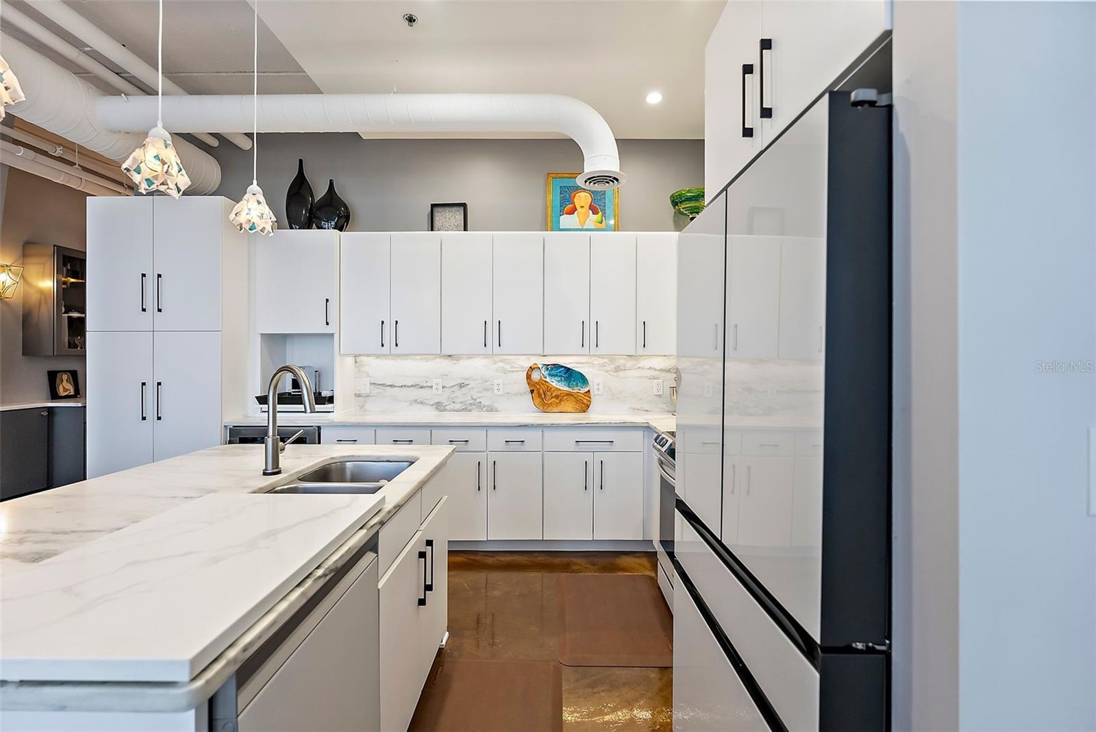 This one-of-a-kind penthouse at The McNulty Lofts is designed to captivate from the moment you step inside. Inundated in natural light, the spacious layout is brought to life by floor-to-ceiling windows that span the entire east side of the condo, offering stunning views of Tampa Bay. This extraordinary residence effortlessly blends modern luxury with breathtaking scenery, creating a truly unparalleled living experience. The breathtaking views are perfectly matched by the exquisite designer-grade finishes throughout this stunning penthouse. The light and airy kitchen has been thoughtfully updated with luxurious marble countertops that flow seamlessly into the backsplash and center island, creating a cohesive and elegant design. The all-white custom cabinetry, complete with soft-close drawers and pull-out racks, offers both style and functionality, while a built-in nook provides the perfect space for a coffee bar and wine fridge. Completing the space are all-new Bespoke appliances, including a state-of-the-art stove, oven, dishwasher, refrigerator, and microwave, ensuring a modern and sophisticated culinary experience. The open concept living spaces serve as the vibrant heart of this stunning penthouse, offering an organic flow that perfectly complements the true split floor plan. The unique layout includes a spacious sitting area off the primary suite, designed to double as the ultimate workspace. Immersed in natural light, this room redefines the home office experience. Say goodbye to uninspiring, tucked-away workspaces, making this one of the most enviable home offices in downtown St. Pete. This stunning office space doesn’t sacrifice functionality for beauty. Custom-built bookshelves and storage line the back wall, providing ample space for organization while enhancing the room’s sophisticated design. The sitting room seamlessly transitions into the expansive primary bedroom, where the floor-to-ceiling windows continue to impress. Imagine waking up each morning to breathtaking, panoramic views of the sun rising over Tampa Bay—a daily masterpiece to start your day. Or sleep in with automated Lutron black out window treatments in your primary. The luxury of this penthouse extends into the primary walk-in closet. This generously sized closet boasts custom-built features, offering two thoughtfully separated sections and an entire back wall of sleek shelving—perfectly suited to showcase your collection of bags and shoes with style and ease. The second bedroom rivals the primary in size and features a versatile layout with an ensuite bathroom. An oversized walk-in closet with custom-built shelving provides ample storage, while soaring 11-foot ceilings create space for a loft above the closet and laundry room—ideal for seasonal items. Additional upgrades include Lutron window treatments, designer lighting, and a high-performance Trane HVAC system (2022). McNulty Lofts offers a boutique living experience with only 83 residences, on-site management, a fitness center, and a newly renovated lobby. Residents enjoy two private parking spaces and a prime Downtown St. Pete location. Step outside to top-tier restaurants, shops, serene parks, museums, and iconic theaters like The Dali Museum and The Mahaffey Theater. With landmarks such as St. Pete Pier and Vinoy Park nearby, this penthouse blends luxury, culture, and convenience for an extraordinary downtown lifestyle.