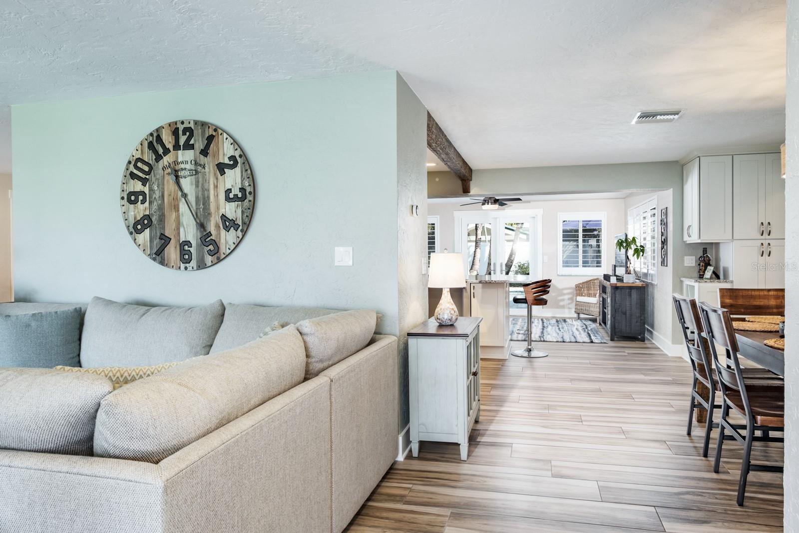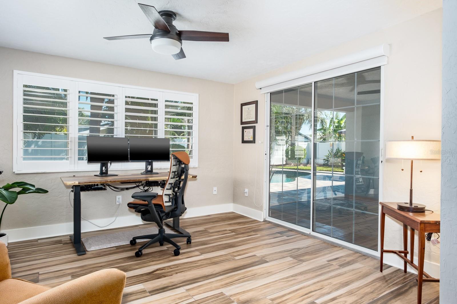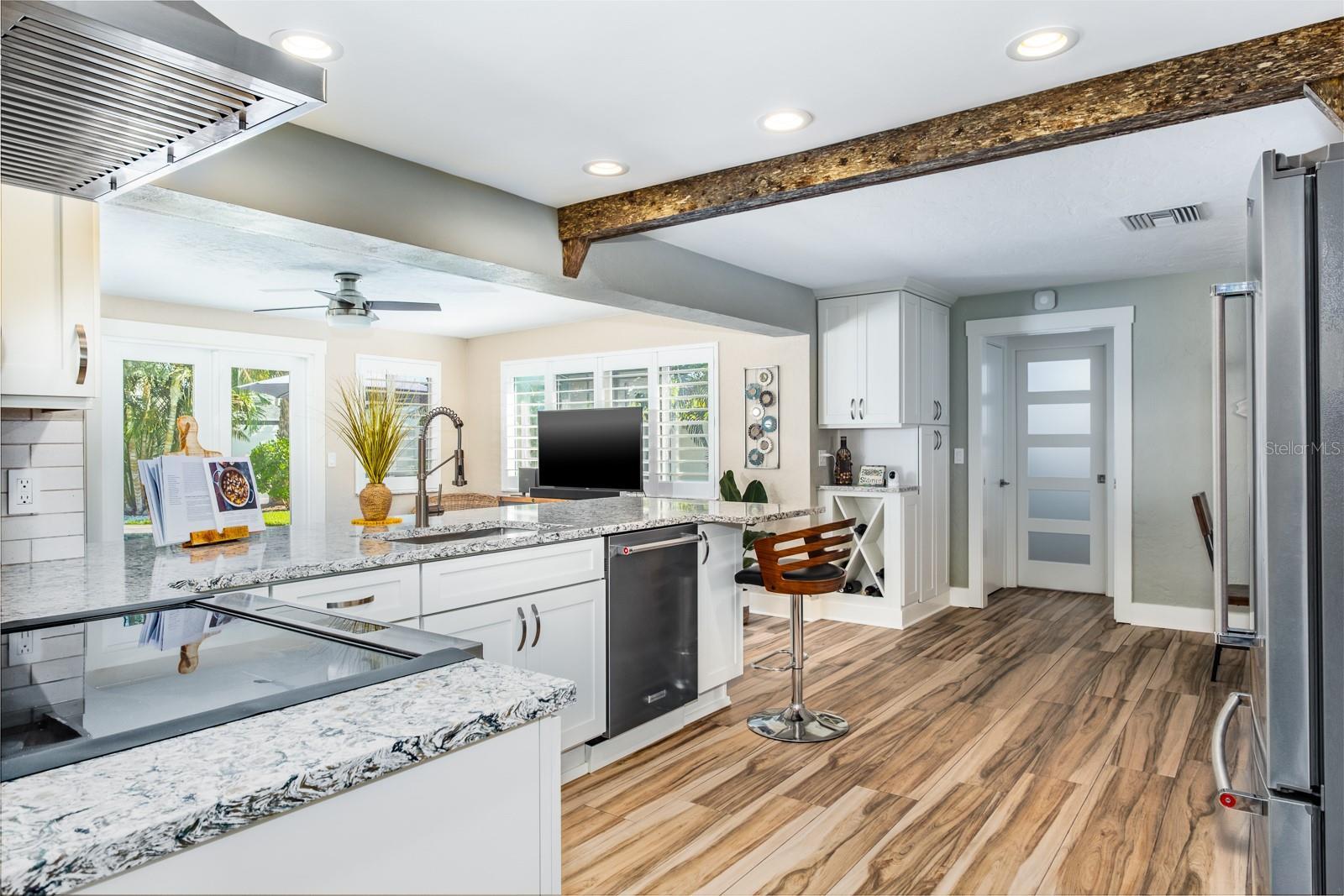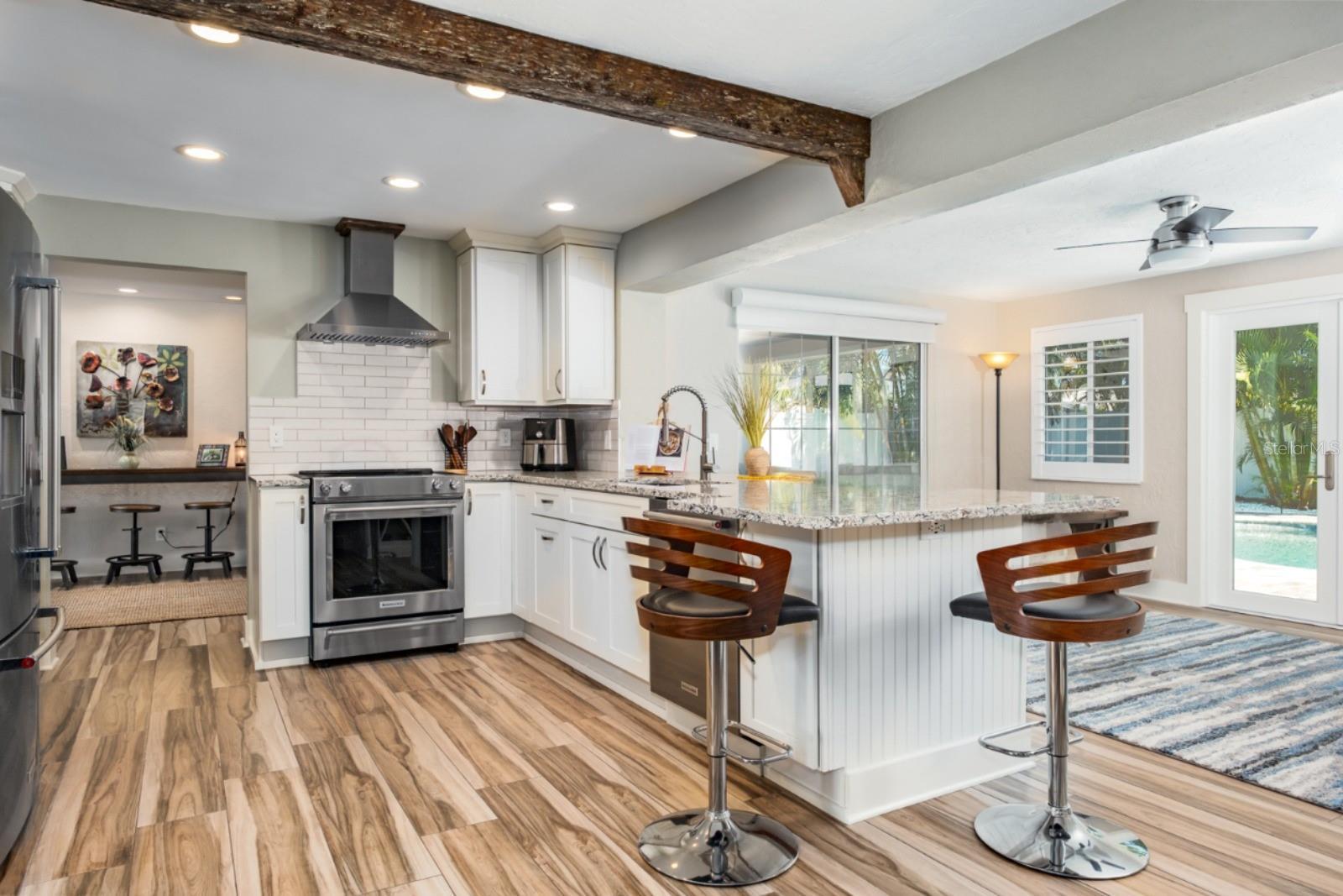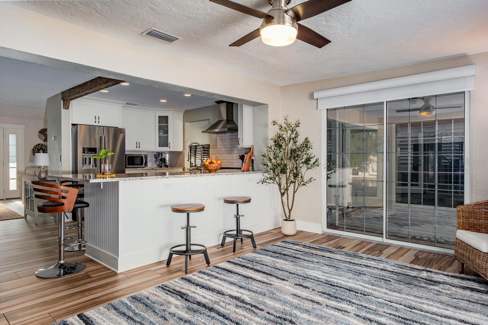 Welcome to the secluded Island of Vina Del Mar! This 2BR/2BA coastal-inspired residence showcases an oversized office/ flex room adjoining the primary suite, creating a private space for work, wellness, or relaxation. This coveted island home offers light-filled, open-concept living with views of the landscaped backyard and saltwater pool. The updated kitchen features custom quartz countertops, all-wood cabinetry & pantry with soft-close drawers, and a striking 100-year-old cypress beam with matching accent trim. The split floor plan includes a spacious primary suite with an en suite bath, a walk-in closet with custom shelving, and a versatile office/den/nursery space with pool access. This flex space could also be used as a third-bedroom or in-law room with exterior access. The guest suite offers a built-in closet and adjacent bath, with a custom pocket door for added privacy. Two distinct living areas provide flexibility—one for larger gatherings, the other is open to the kitchen with direct pool access. The covered lanai offers shade while overlooking the private backyard, with an adjacent lounge area ideal for cooling off indoors. Meticulously upgraded and kept, the home features a new roof (2025), pool pump (2024), water purification & filtration system (2022), water heater (2020), Air Knight purification system (2017), custom Pebble-finish saltwater pool (2017), wood plank-style porcelain flooring, plantation shutters, Nest smart thermostat & smoke/CO detectors, updated electrical panel, newer windows and doors, fresh paint, and more. The two-car garage provides additional storage, while underground power lines preserve unobstructed views. Nearby Vina Del Mar Park offers a playground, dog park, pickleball, tennis, and basketball courts. Cruise down to the beach, restaurants, shops and entertainment in famous Pass-A-Grille or even a short drive to the vibrant Downtown St Pete for nightlife and the St Pete Pier. Don’t miss your chance to live the Salt Life!