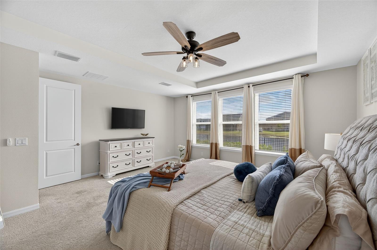 - Ceiling Fans(s), Eat-in Kitchen, High Ceilings, In Wall Pest System, Open Floorplan, Primary Bedroom Main Floor, Thermostat, Tray Ceiling(s), Walk-In Closet(s), Wet Bar, Window Treatments