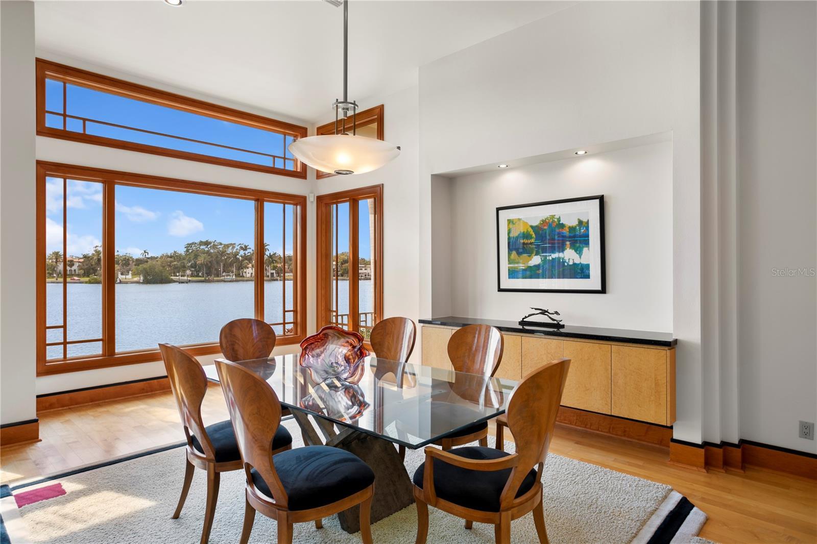 Welcome to 950 Monterey Point NE, a rare waterfront masterpiece gracefully extending into Tampa Bay. Positioned at the end of a quiet cul-de-sac with 155 feet of water frontage and breathtaking southwestern views, this exceptional residence captures the essence of coastal luxury living. Designed by acclaimed architect Daniel Thayer Dawson and engineered by Koly Engineering, the home was artfully created to celebrate its extraordinary setting. Every line and material was chosen to showcase the expansive bay and downtown skyline, offering the remarkable sensation of floating above the water. Inside, timeless design meets modern sophistication. This private sanctuary radiates warmth, serenity and natural beauty, with one-of-a-kind custom cabinetry, Coquina stone finishes, elegant railings, and floor-to-ceiling windows that frame uninterrupted panoramic views from every room. Constructed with uncompromising quality, the home’s engineered block, steel-reinforced concrete, and cambered beams speak to its enduring strength and craftsmanship, qualities that also contribute to an impressively low homeowners' insurance premium of just $5,267 per year. From its architectural pedigree to its awe-inspiring vistas, 950 Monterey Point NE stands as a work of art on the water, where elegance, design and location converge in harmony.
