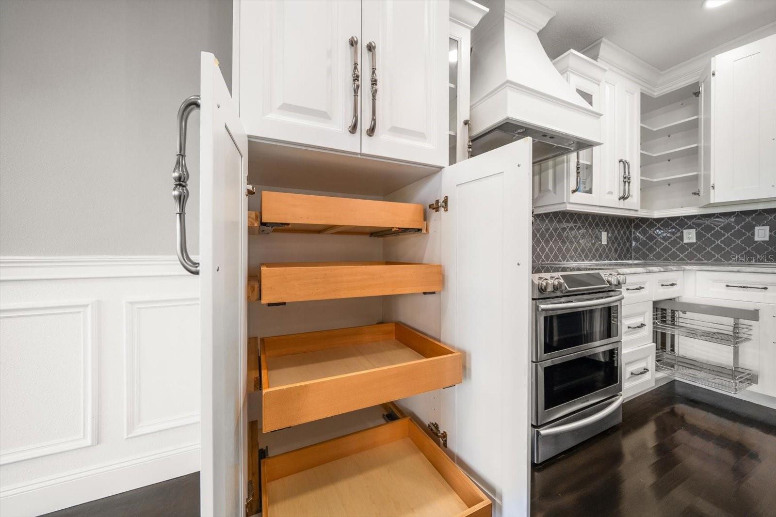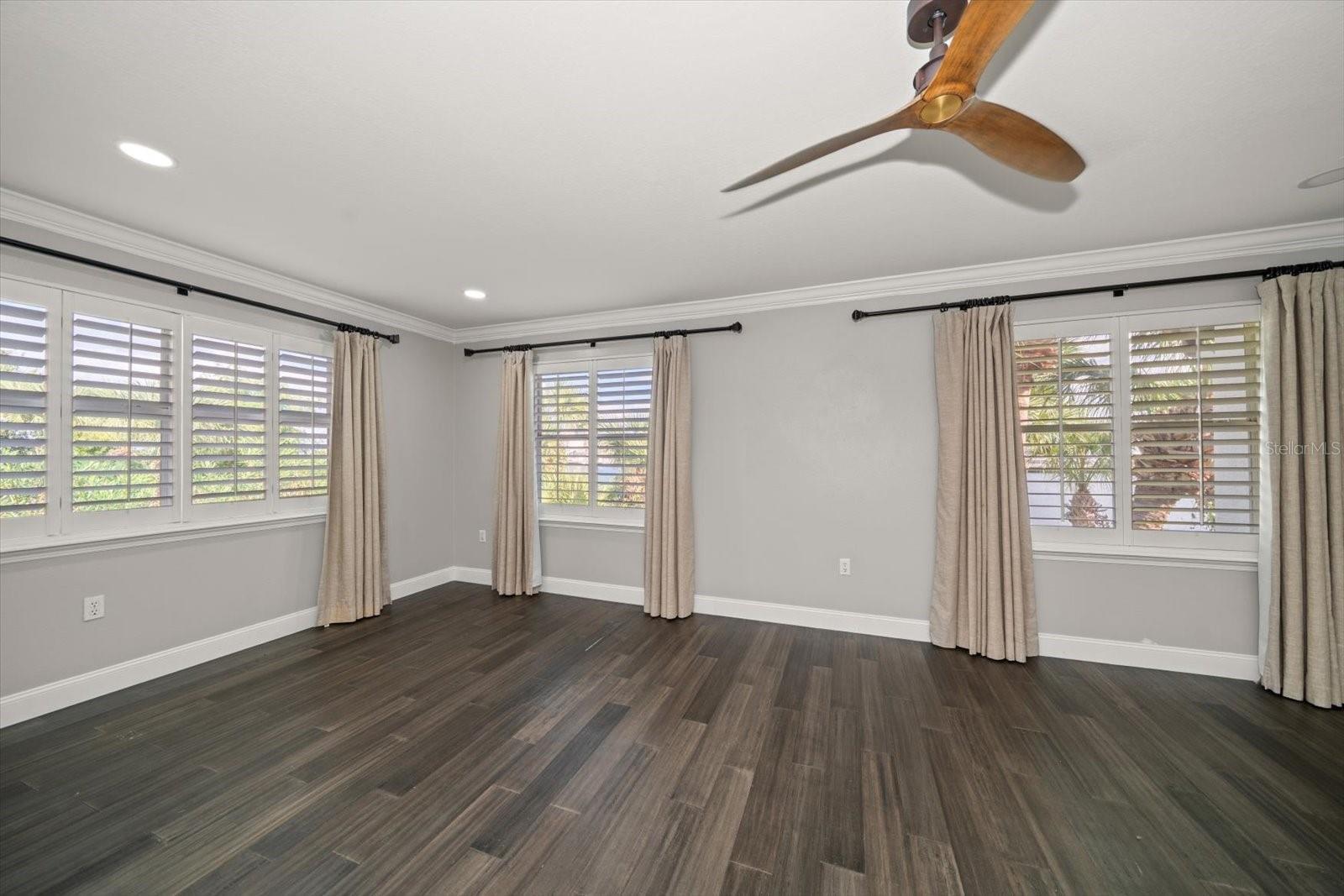 - Built-in Features, Ceiling Fans(s), Chair Rail, Crown Molding, Eat-in Kitchen, Kitchen/Family Room Combo, Open Floorplan, PrimaryBedroom Upstairs, Solid Wood Cabinets, Split Bedroom, Stone Counters, Walk-In Closet(s), Window Treatments