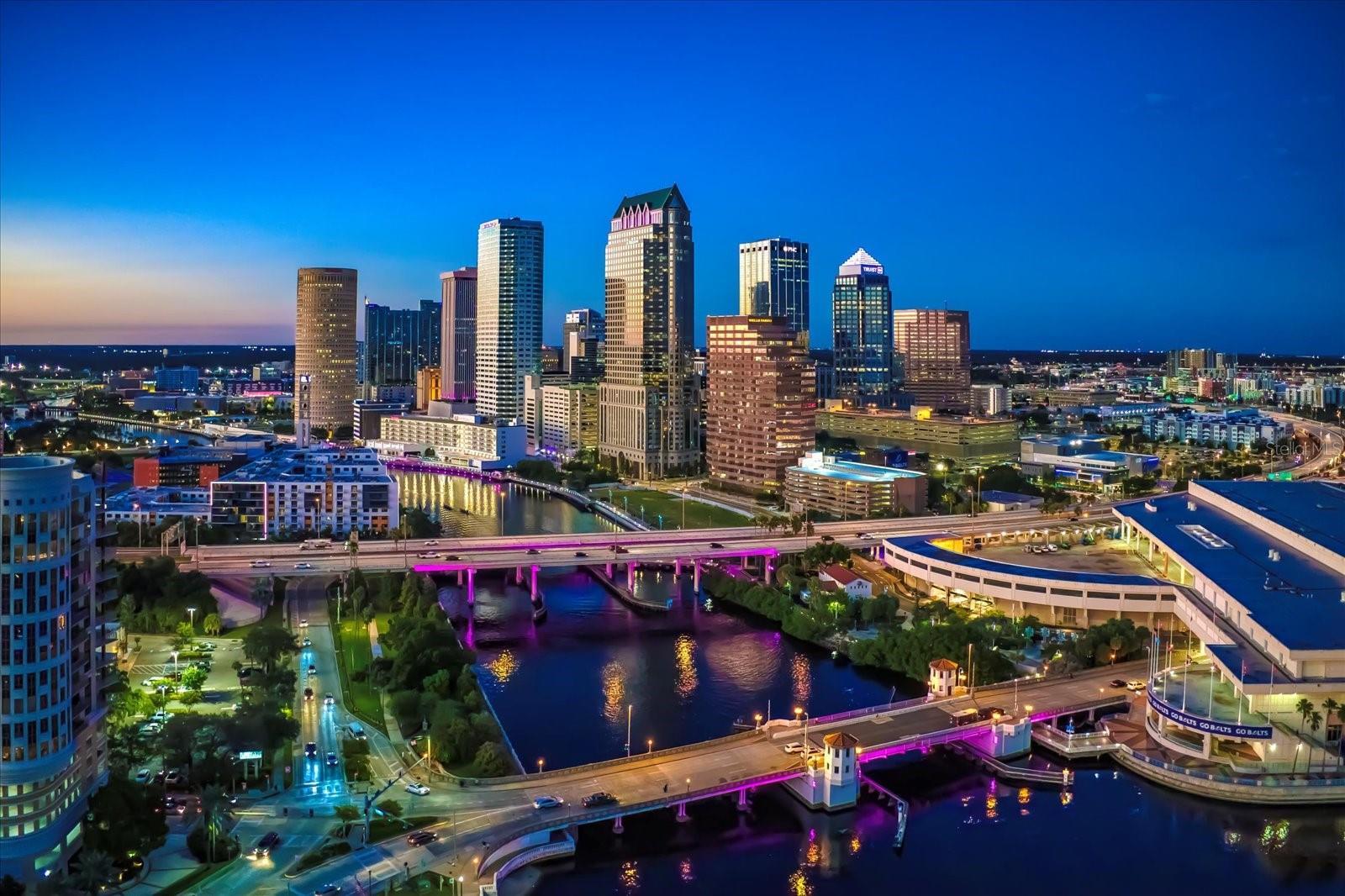 One or more photo(s) has been virtually staged. Harbor Homes Community of Harbour Island! Your paradise awaits in the heart of Tampa located in the 24-hour gated community of Harbour Island. The perfect Lifestyle awaits you in this Mediterranean style corner/end home with two bedrooms plus a loft area used as an office, two bathrooms upstairs, 2-car oversized garage on waterfront (Sparkman Channel), surrounded by lush landscape with a private side entry that captures your imagination of what's inside. Current owner's created an incredible open floor plan that combines casual elegance with enhanced outdoor entertainment area on the oversized composite engineered deck. The floor plan has open views of water from every area of the downstairs with an updated kitchen that offers a wonderful island with marble counter that seats four, large stainless steel basin sink with designer faucets, the cabinetry has pull-out shelves that adds to your convenience and has a microwave hidden in the cabinets. A creative feature is the wine cabinet that stands between the kitchen and dining area. It will keep your wines cool and possibly use the bottom cabinet for a humidor or your favorite bottles. A nicely appointed half bathroom next to the updated stairwell that has featured crown molding and wainscotting. The downstair areas have crown molding, chair-rail, two tone designer paint color, battery operated shades, window treatments, alarm system with glass break, HVAC's (2024) with UV Lights on Handlers, home surge protector, LED lighting throughout and smart phone wired. Additional features are the matching lighting in dining area and pendants over the kitchen island, recessed lighting to include under counter lights that enhance the overall experience of the kitchen. Imagine anytime of the day enjoying light bright, airy views of the water a spectacular lifestyle with all the location has within walking distance. On to the upstairs where a guest room is large and may be considered a second master with walk-in closet that has built-ins a barn door on order and a bathroom with dbl vanities, garden tub and a separate shower. As we move to the Primary you will pass a very nice niche area that was used as an office space, has cabinets for storage. The Primary bedroom is large with an area that may be used for additional seating or exercise equipment with wonderful views of the channel, the windows have plantation shutters that more than likely will remain open to enjoy the sunshine and tropical landscape. A spacious walk-in closet accessed through barn doors has built-ins to keep you organized. The ensuite has dual sinks, garden tub and a separate area for the walk-in shower and toilet. Additional enhancements are the wood floors with porcelain marble style floors in the bathrooms, water filtration system, you have fios and spectrum wired, electric vehicle station in garage, additional storage in garage area, impact rated doors that lead to the oversized deck surrounded by lush tropical landscape with the beautiful view of the water. You want Lifestyle and Location! this is the one for you within walking distances to upscale restaurants, Benchmark International Arena, Riverwalk, Sparkman Wharf and so many nice areas that will add to your quallity of life. Seller's advised Buyer's will have a new Roof Replacement in 2026 Special Assessment paid by Sellers.