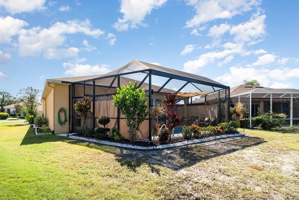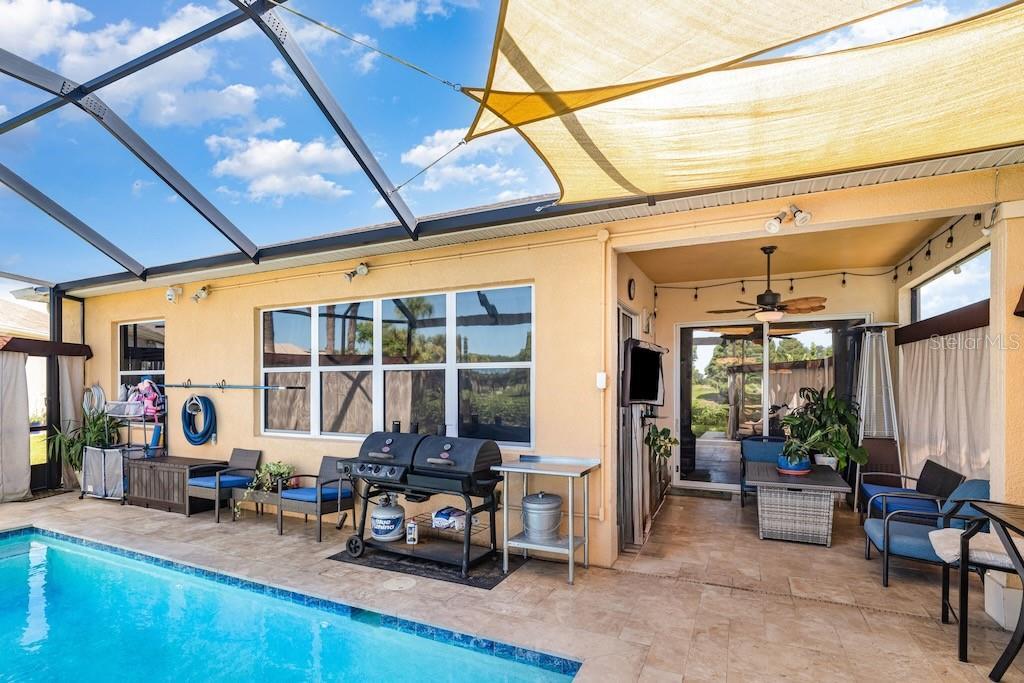 Welcome to the best time of your life! Get ready for resort-style living with all of the amenities, WITHOUT breaking the bank! This beautiful 3-bedroom, 2-bathroom pool home is the perfect place to call home! An open floor plan home with windows-galore that's bright and airy! The spacious, eat-in kitchen is a dream with its breakfast bar, quartz countertops, gas oven/range and all stainless steel appliances! The kitchen overlooks the living/dining great room which flows into the family room! With marble tile in the kitchen, ceramic tile in all of the wet areas and hardwood floors throughout the rest of the home, you’ll love the subtle elegance that this home provides! The oversized master suite features a recessed ceiling, walk-in closet and master bath complete with walk-in bath, separate shower, his and hers double sinks and tile throughout! Bedrooms two and three provide for an “in-home” office or perfect guest rooms! Outside, the beautiful screened lanai overlooks the lake and is perfect for morning coffee or a glass of wine in the evening! The lanai also has privacy curtains and leads into and pool area and both have travertine pavers! You’ll have access to the clubhouse restaurant and amazing amenities including a state-of-the-art fitness center, tennis courts, indoor and outdoor pools, pickleball courts and so much more! And to ensure that you have time for all of these amenities, lawn mowing and trimming are included!! Life is just better here so you won’t want to miss a single day! Set up your showing, today!