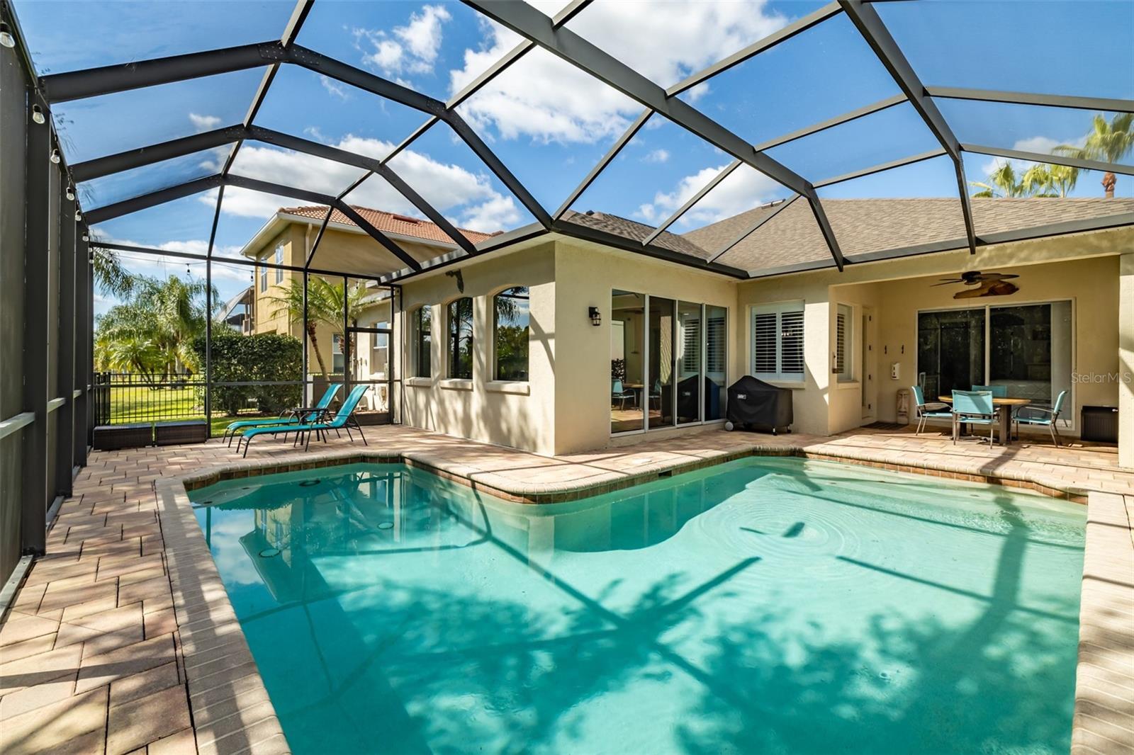 Luxurious Lakefront Living in Cory Lake Isles! Experience refined Florida living in this stunning 4-bedroom, 3-bath lakefront home, where pride of ownership and designer upgrades are evident at every turn. The chef-inspired kitchen is a showpiece, featuring expansive quartz countertops, 42” cabinetry, a stacked-stone backsplash, pendant lighting, a smooth cooktop with a vented hood, stainless steel appliances, wall oven, and a wine refrigerator. The breakfast nook opens through a French door to the screened lanai for effortless indoor-outdoor living. Natural light fills the open & airy family room, framed by quadruple glass sliders and large picture windows that showcase serene lake views. The formal dining and living spaces provide the ideal setting for hosting family gatherings or elegant holiday dinners. The primary suite is a private retreat, offering direct access to the pool and tranquil water views. Its spa-like en-suite has been fully renovated and features designer flooring, frameless glass shower, LED lighting, dual vanities, and custom his-and-hers closets. Spacious secondary bedrooms and updated baths ensure comfort for family and guests. Throughout the home, architectural details such as arched entryways, art niches, and soaring volume ceilings add a touch of timeless sophistication. Step outside to your backyard oasis featuring a sparkling pool and screen-enclosed lanai with privacy screening, surrounded by lush landscaping and tranquil lake views. Enjoy the sunrise and sunsets on your floating dock, evenings by the built-in fire pit, or weekends boating and fishing on the bass-filled lake. This meticulously maintained home has been extensively updated, including a New Roof (2025), AC (2021), Hot Water Heater (2022), Engineered Mahogany Hardwood Floors, Interior & Exterior Paint (2021 & 2019) Plantation Shutters, Lighting, Hardware, & Fans (2021–2022), Floating Dock with Walkway (2023) and Pool Equipment Upgrades (2024). Nestled within the 24-hour guard-gated community of Cory Lake Isles, residents enjoy resort-style amenities including a 165-acre ski lake, clubhouse, tennis courts, playgrounds, basketball court, beach volleyball, and a private sandy beach. Discover the perfect blend of elegance, comfort, and Florida lakefront living just minutes from shopping, dining, and I-75 access.