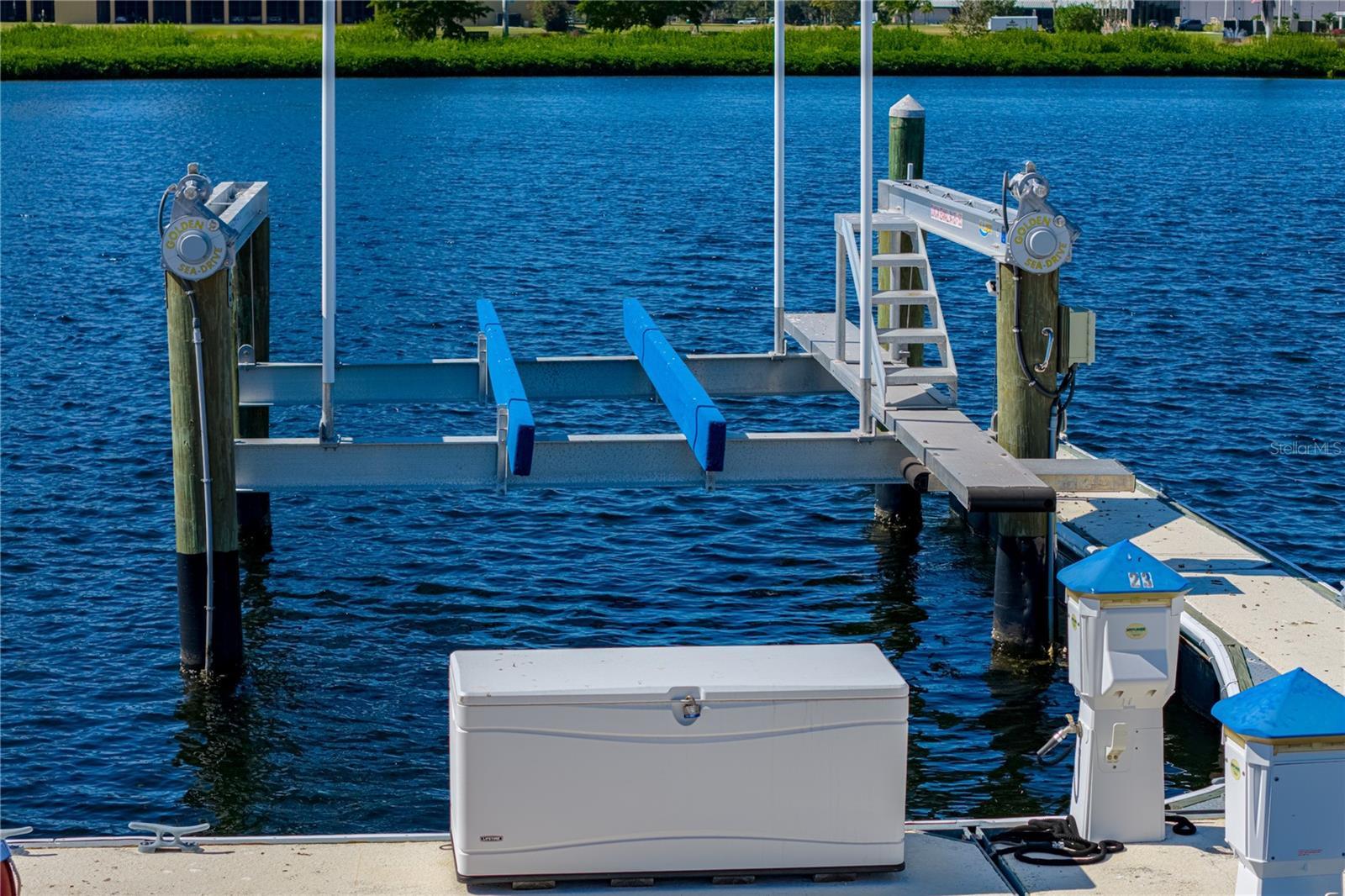 Includes a double-wide boat dock with a 40-foot slip and 15,000-lb electric lift, located just steps away at the private community marina—this exceptional home in Northshore at Riviera Dunes offers a rare opportunity to enjoy the boating lifestyle with deep-water access to the Gulf of America. Situated on a premium corner cul-de-sac lot—the largest in the subdivision, the residence overlooks a tranquil lake and provides scenic water views, privacy, and space rarely found in the community. This 4-bedroom, 2.5-bath home features 2,842 sq. ft. of thoughtfully designed living space filled with natural light. Inside, soaring ceilings and a grand staircase create a welcoming entry. A versatile office or study includes a gas fireplace with Italian marble surround, while the main living level flows seamlessly from the formal dining room into the kitchen and spacious living area. Large sliding glass doors open to the screened lanai and backyard, perfectly framing the peaceful lake setting. The kitchen maintains its timeless design while offering updated stainless-steel appliances (2023–2024). Upstairs, the primary suite offers a private retreat with lake views, a new glass-enclosed shower, and access to an upper patio deck. From the balcony, there are views toward the community marina, reinforcing the home’s connection to the water and boating lifestyle. The deck is enhanced by a 20' x 10' motorized retractable sunshade with wind sensor and integrated LED lighting (2024), ideal for relaxing in comfort throughout the day. Interior upgrades include crown molding, engineered wood flooring, solid oak hardwood on the mezzanine, and newer carpeting. Outdoor living is equally impressive with a screened lanai, no-see-um-resistant screening (2025), and gloss-sealed brick driveway and walkways. The HOA provides a truly low-maintenance lifestyle, covering landscaping, annual mulching, and exterior painting, with the home freshly painted in 2024. The private community marina, located on the same street and a short walk from the home, features deep-water access suitable for larger vessels and convenient guest docking. The included dock offers a double-wide slip, 15,000-lb powered lift (installed 2023), boarding stairs, and a dock box, making this an exceptional value for boating enthusiasts. Residents enjoy resort-style amenities, including a heated pool, fitness center, tennis courts, pickleball, and year-round community social events. Conveniently located near golf courses, downtown Bradenton, Sarasota, and the Gulf beaches, this home delivers a rare blend of lakeside views, oversized lot, and walkable Gulf-access marina. This is a standout opportunity to own one of the most desirable properties in Northshore at Riviera Dunes—where space, comfort, and boating convenience come together seamlessly.