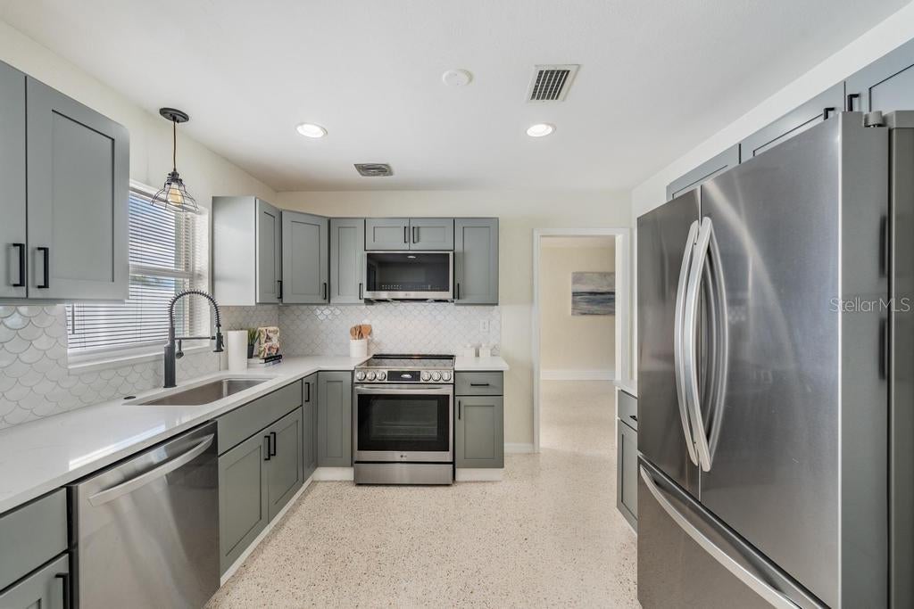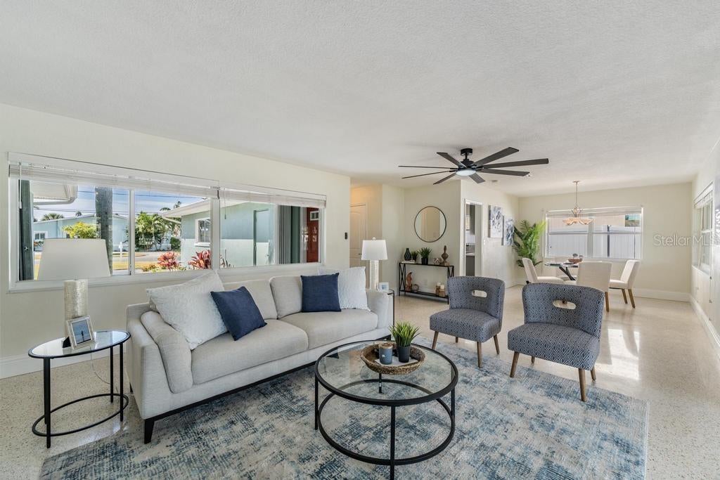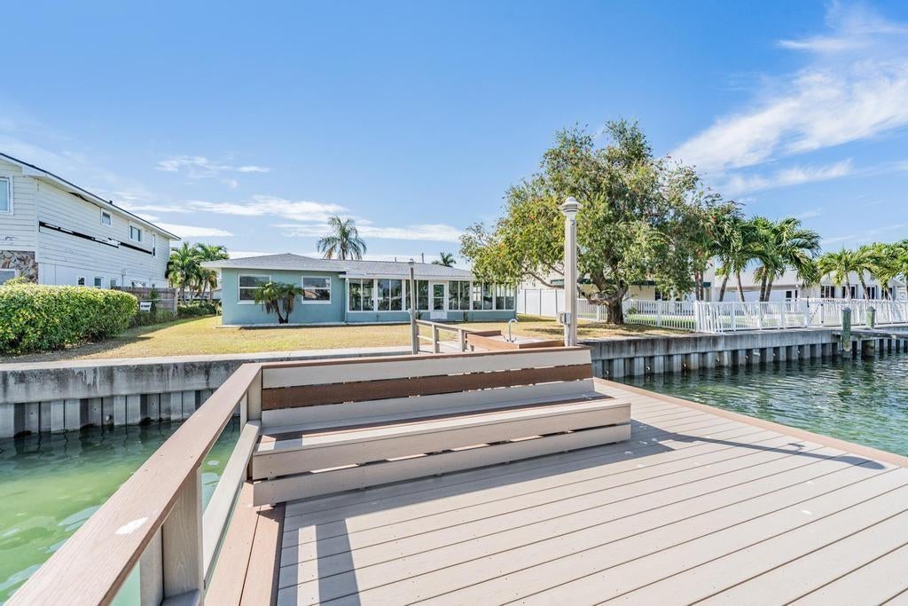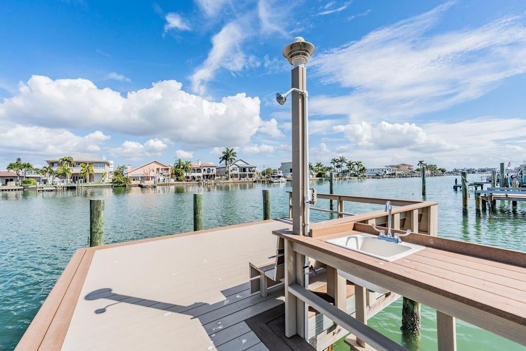 COASTAL WATERFRONT OPPORTUNITY! . Located blocks from the beach in TREASURE ISLAND'S ISLE OF PALMS neighborhood. The property offers 3 bedrooms, 2 bathrooms, 2 car garage, and a Florida Room of nearly 400 SF. This home sits on a 70' by 120' lot. with plenty of room to add a pool in the future. With DEEP WATER ACCESS to the Gulf, the seawall was replaced in 2014 and private composite dock with water/electric was replaced in 2017. This MOVE IN READY HOME and has been remediated and renovated in the wake of Hurricane Helene. All permits and inspections have been filed and completed. The renovation included new drywall, baseboards, upgrades to electric and plumbing, entry doors to the garage, laundry room and fresh paint throughout. The BRAND-NEW GOURMET KITCHEN features all new cabinets, quartz counters, tile backsplash, new LG stainless steel appliances, stainless steel Kohler sink and professional sprayer faucet. The primary bedroom features sliding doors on the Florida Room and all new luxurious bath with vanity and walk-in tile shower. The second and third bedrooms feature ample sized rooms with terrazzo floors of which either can be converted to an office. The second bath features new large tile, vanity and bath/shower combo. The dining room/family room is an ENTERTAINER'S DREAM with open views to BOCA CIEGA BAY. The home has a newer roof (2019), brand new water heater, new AC unit in the Florida Room and has poured terrazzo floors throughout the home (no carpet). The exterior has been painted and landscaped. Seller's Flood Insurance was renewed in August and is transferable. A short walk to the Gulf's spectacular white sand beaches. Enjoy all that Treasure Island and the Gulf has to offer, swimming, sunbathing, fishing, boating and water sports. With easy access to restaurants, shopping and nightlife this home offers an incredible opportunity to live in or invest in one of Southwest Florida's premiere waterfront beach communities.