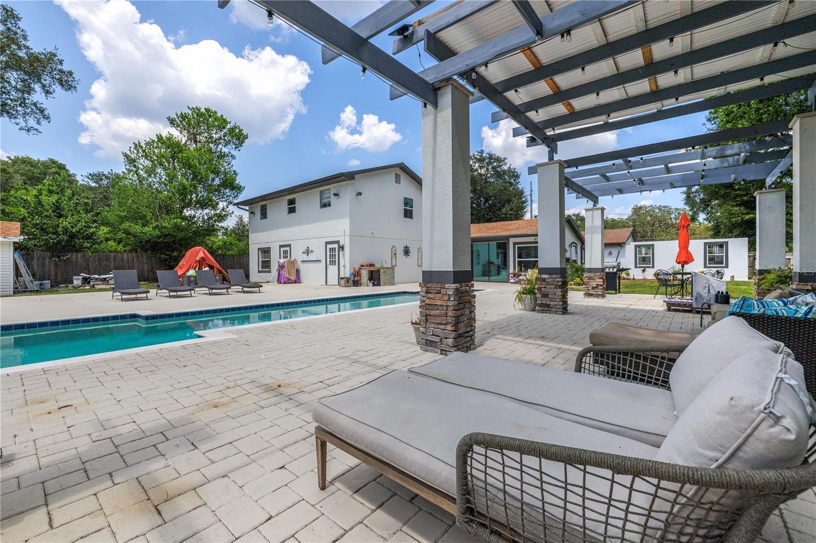 Stunning 6 Bed, 5 Bath Luxury Oasis with a 50ft Lap Pool – NO HOA, NO RESTRICTIONS! Below appraisal value,Discover the ultimate blend of elegance, privacy, and resort-style living in this exceptional 6-bedroom, 5-bath estate. From the moment you walk in, the grand room with soaring vaulted ceilings sets the tone for a home designed to impress. Entertain effortlessly with a dedicated entertainment room and both indoor and outdoor wet bars, while an office and spacious den add versatility for work or relaxation. Step outside to your own private paradise featuring a rare 50ft lap pool, multiple beach areas, a cozy fire pit zone, and a fully fenced private entry for unmatched seclusion. The upstairs in-law suite offers perfect accommodations for guests or multigenerational living, and two storage sheds plus a 4-car garage provide generous space for all your needs. With NO HOA and NO RESTRICTIONS, you have the freedom to truly live your way. Ideally located minutes from the Tampa Premium Outlets, restaurants, hospital, and major interstates, this home delivers unmatched convenience wrapped in pure luxury. This is more than a home—it's a lifestyle.