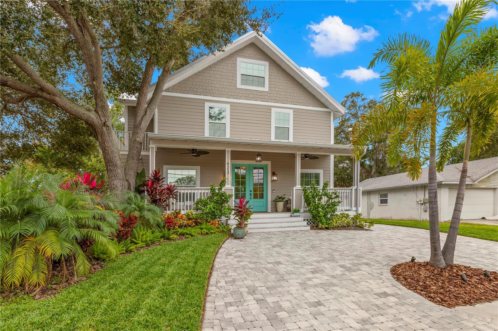 Welcome home to 623 1st Ave N in Safety Harbor FL that is set on a picturesque, tree-lined street, this beautifully reimagined 1925 residence radiates the charm, character, and warmth that define Safety Harbor’s most beloved homes. 4 bedrooms plus a den/home office and 5 full baths. From the moment you step onto the wide front porch framed by mature landscaping and double turquoise doors, the home feels inviting, soulful, and distinctly crafted. This location delivers the ideal Safety Harbor lifestyle. Enjoy effortless walks to downtown cafés, boutiques, 3rd Friday night events, Sunday markets and local festivals, and the iconic Safety Harbor Resort & Spa. Spend weekends exploring the waterfront vistas of Philippe Park, just moments away. Step outside and within minutes, hop onto the 13 mile Ream Wilson Trail for morning rides or evening strolls along the waters of Tampa Bay. Clearwater Beach and Tampa airport remain easily accessible, making travel and coastal adventures wonderfully convenient. Inside, nearly 3,800 square feet unfold with a thoughtful blend of period charm and modern design. Rich millwork, plantation shutters, warm flooring, and a wood-burning fireplace anchor the open main floor and highlight the home’s character. The living and dining spaces flow naturally into the designer kitchen featuring a 9-foot island, marble countertops, stainless steel appliances, pot filler, and an expansive butler’s pantry. A first-floor office with custom built-ins offers an elevated work-from-home environment. At the rear of the home, a set of French doors opens to the backyard, creating a seamless indoor–outdoor connection and enhancing the home’s inviting, relaxed atmosphere. Upstairs, every bedroom is a true ensuite, offering exceptional comfort and privacy. The primary suite includes a large walk-in closet and a spa-inspired bath with a luxury soaking tub, dual vanities, and a multi-jet shower with multiple shower heads. A well-placed second-floor laundry adds daily convenience. The third floor provides flexible space ideal for a media room, playroom, studio, fitness area, or additional guest suite. Outdoor living is a defining element of this property. The welcoming front porch sets the tone for neighborly connection and slow, easy mornings with a cup of coffee. The back deck, accessed through French doors, overlooks a private tropical yard with new sod and irrigation, lush foliage, and fruiting Meyer lemon and lime trees. A charming cottage-style shed enhances the appeal and functionality of the space. A detached, oversized garage has been finished with air conditioning, butcher block counters, and shiplap walls. It includes a 12,000-watt generator hook-up, pegboard walls, built-in cabinets, drawers, and abundant storage, making it an ideal gym, studio, workshop, or climate-controlled utility space. High-end upgrades such as impact windows and doors, CAT 6 internet that is wired with gigabit ethernet to all rooms and wireless access points on all floors with gigabit fiber to the house for internet, stainless steel appliances, marble countertops, and fully updated systems, including HVAC, plumbing, electrical, 2 water heaters (all 2021). A new standing seam metal roof was installed in 2024 with transferalbe warranty. Non-flood zone, and no HOA, the home offers peace of mind alongside its unmistakable charm and character. Historic charm. Modern luxury. A walkable coastal lifestyle unlike anything else. Welcome home.
