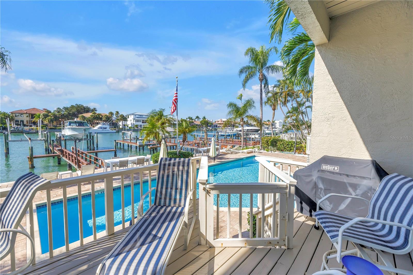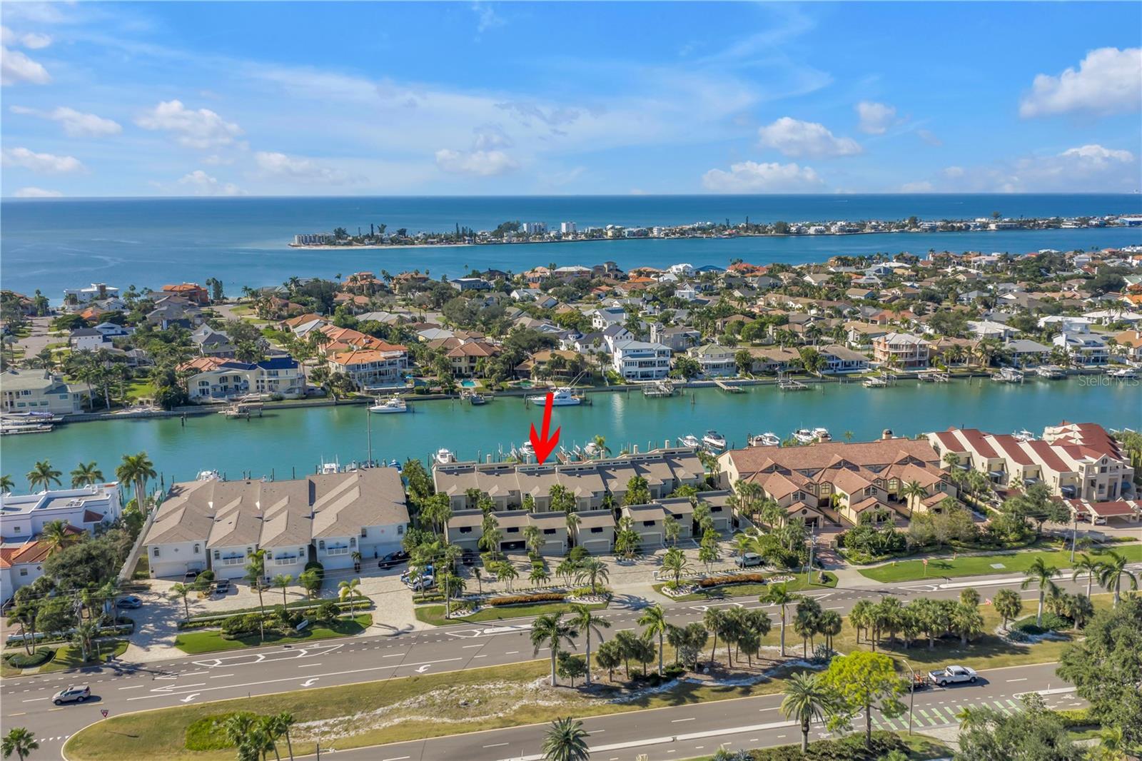 Luxury waterfront living on Tierra Verde’s Grand Canal in an intimate community of only seven Townhomes with a sparkling community pool overlooking the water. This rare offering includes a 3-bedroom, 2.5-bath main residence PLUS a separate private guest apartment above the garage featuring 1 bedroom, 1 bath, living room and kitchenette—ideal for extended guest stays, multi-generational living or a private retreat. A welcoming courtyard entry sits between the main home and guest house, creating the perfect outdoor space for evening gatherings or quiet mornings. Inside the main residence, enjoy a formal Living Room with wood-burning fireplace and built-in bar, an elegant formal dining room, and a bright enclosed sun porch with gorgeous natural light. The gourmet Kitchen offers a center island, stainless steel appliances, solid wood cabinetry and granite countertops. Upstairs, the spacious Primary Suite features a sitting area, luxurious bath with large walk-in shower, and a private balcony overlooking the Grand Canal. Two additional bedrooms, a full bath, and laundry complete the upper level. The entire property is enhanced with impact windows and doors for peace of mind. Step outside to your private dock with boat lift, offering immediate access to open Gulf waters—truly a boater’s paradise. Located on the coveted island of Tierra Verde, you’re just minutes from Fort De Soto Park, St. Pete Beach, award-winning dining, downtown St. Petersburg, I-275, and Tampa International Airport. Experience refined coastal living, exceptional convenience, and breathtaking waterfront beauty in one of Tierra Verde’s most special settings.