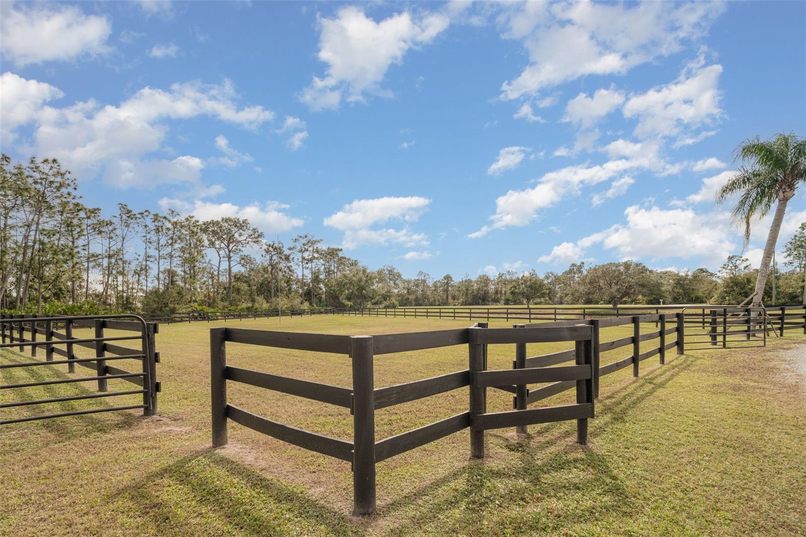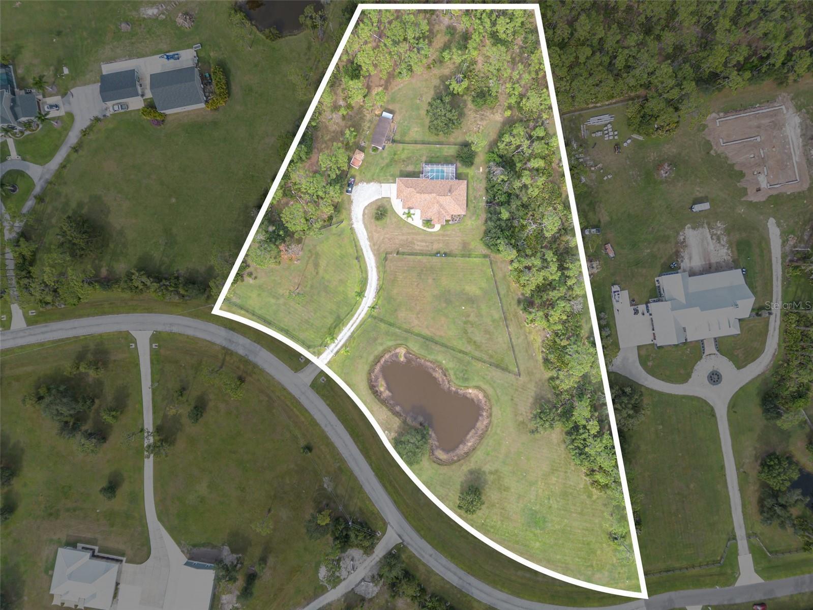 One or more photo(s) has been virtually staged. Welcome to 30215 Saddlebag Trail — an idyllic 5-acre horse-zoned estate in the highly sought-after Saddlebag Creek Ranches community of Myakka City, FL. This beautifully maintained 3-bedroom, 2-bathroom pool home offers over 2,000 sq ft of light-filled, open-concept living space designed for comfort and functionality. As you enter through elegant French doors, you're greeted by a spacious living area featuring wood-look tile flooring throughout, contemporary recessed lighting, and a modern electric fireplace — also found in the luxurious primary suite. The heart of the home is a chef-inspired kitchen, boasting white shaker cabinetry, stainless steel appliances, a center island with cooktop and range hood, and plenty of storage. The split-bedroom layout ensures privacy, with the primary suite offering backyard views and direct access to the pool. The spa-like ensuite includes dual vanities, a soaking garden tub, and a walk-in glass shower, plus a generous walk-in closet. Step outside to a true Florida lifestyle — a screened-in lanai overlooks the custom-shaped pool, perfect for relaxing or entertaining while enjoying sweeping views of the tranquil countryside. The long gravel driveway, private pond, and fully fenced acreage enhance the rural charm of this retreat. Equestrians will appreciate the 2 large horse pens in the front yard, a horse barn/stables, tackle barn/pole barn, and additional storage shed. Plus, the entire property is equipped with security cameras for added peace of mind. Enjoy the serenity of nature, the space of rural living, and the convenience of a thoughtfully upgraded home — all just a short drive from Lakewood Ranch, Sarasota, and Bradenton amenities. Don’t miss this rare opportunity to own a slice of Florida paradise. Schedule your private tour today!