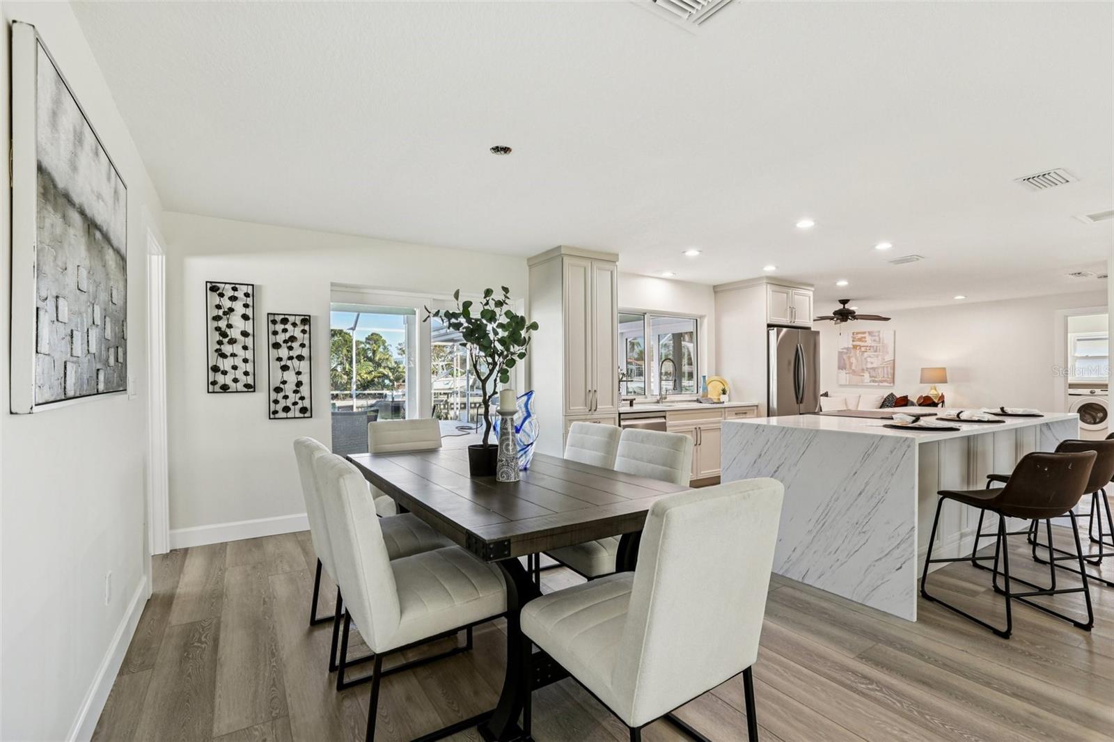Welcome to 6251 18th St NE, a beautifully renovated waterfront residence tucked away on a quiet cul-de-sac in the highly sought-after Tanglewood neighborhood of Northeast St. Petersburg—one of the area’s premier communities for true sailboat-water access and exceptional boating. This 3-bedroom, 2-bath home features a highly desired split floor plan and extensive updates throughout, including new flooring, two fully renovated bathrooms, impact-rated windows, and a completely remodeled kitchen with new stainless-steel appliances, custom cabinetry, a large entertainer’s island, and expansive counter space. The bright open layout connects the living, dining, and kitchen spaces seamlessly, and a convenient pass-through window opens directly to the covered lanai for effortless indoor-outdoor living. A dedicated indoor laundry room provides easy access to the oversized two-car garage, while each bedroom offers spacious walk-in closets, with the primary suite benefiting from exceptional privacy thanks to the split design. Outside, the home’s private oasis includes a screened-in pool and spa set atop elegant travertine pavers, a generous covered lanai, and tranquil wide-water views. With deep sailboat-water access, no bridges, and quick passage to Tampa Bay, this home is a true boater’s dream. All of this is ideally located in NE St. Pete, offering quick access to vibrant local dining, shopping, parks, waterfront trails, top-rated schools, and the unbeatable coastal lifestyle that makes this area so desirable.