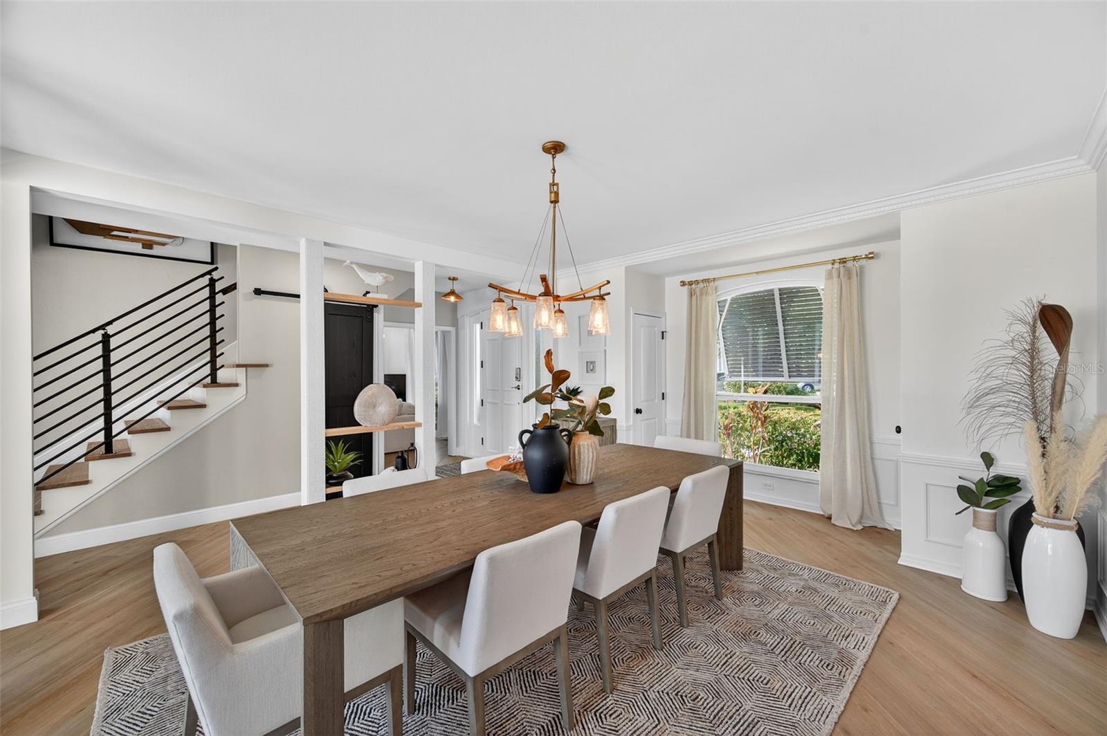 - Built-in Features, Ceiling Fans(s), Crown Molding, High Ceilings, Primary Bedroom Main Floor, Stone Counters, Walk-In Closet(s), Wet Bar, Window Treatments
