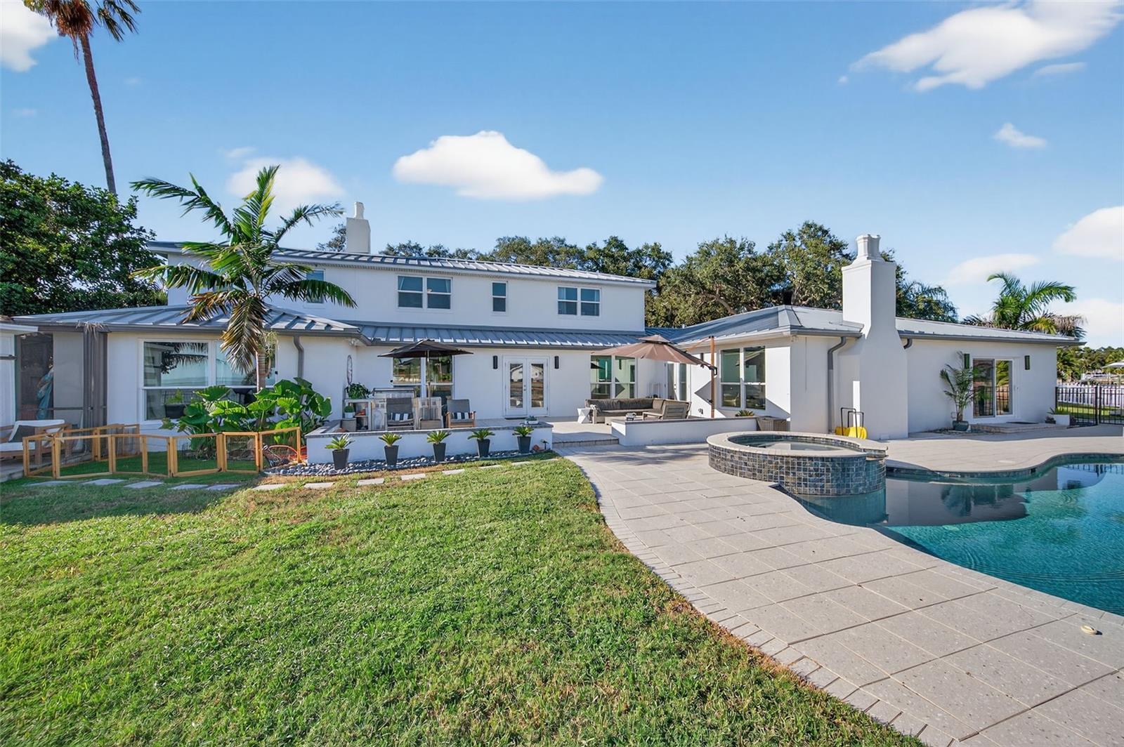 Experience the ultimate in waterfront luxury at this extraordinary St. Petersburg residence, where refined design meets resort-style living. This 3,699 sf home sits on over a half acre, Perfectly positioned on an expansive 200 feet of serene open water with the Skyway Bridge lit up in the distance. The property offers panoramic views that stretch across tranquil waters — a rare and breathtaking backdrop for everyday living and unforgettable entertaining. As you approach, the home’s elegant coastal architecture and lush tropical landscaping set the tone for what awaits inside. The open-concept interior captures the beauty of the outdoors with oversized windows and glass doors that frame sweeping water vistas in nearly every room of the home. Each of the 4 bedrooms are spacious and well appointed and the layout has a large primary suite overlooking the pool and bay, with an equally impressive 2nd ensuite that could easily be transformed into an in-law suite. The gourmet kitchen is appointed with premium appliances, quartz and granite countertops, and custom cabinetry, seamlessly connecting to inviting living and dining spaces. Every detail has been thoughtfully curated to blend modern luxury with timeless design. From the herringbone flooring in the living room/kitchen area, to the tray ceilings, the home has been updated to an amazing standard. Step outside to your sprawling outdoor oasis, where the true magic of this home unfolds. A stunning resort-style pool anchors the expansive patio, surrounded by generous lounging, cooking and dining areas perfect for entertaining under the Florida sun. There’s even a pool cabana with A/C! Whether hosting sunset cocktails by the water, large events, or weekend gatherings with friends and family, this outdoor retreat delivers the next level of coastal living. Boating enthusiasts will appreciate the 200 feet of direct waterfront, offering ample space for a dock and easy access to the Intracoastal and Gulf waters beyond. With such a vast waterfront span, privacy and potential abound — a setting few properties can rival. The dock sits on deep water, and can give you direct access to Tampa Bay and the Gulf. Launch paddleboards, kayaks, Jet Skis from your back yard. Electronic bikes allow quick entry to the Pinellas Trail, over to St. Pete Beach. Ideally located near St. Petersburg’s vibrant downtown, renowned beaches, and world-class dining, this property combines peaceful waterfront living with the best of city convenience. A quick 3 minute drive puts you on 275 for easy access anywhere in the Tampa Bay area. Best of all, the home sits just high enough to have escaped serious damage from Helene. Minimal water entered through the rear doors, and no interior flood damage to the home (other than garage area). Home has a commercial grade 50-year metal roof and hurricane rated windows. Flood insurance is only $2,672 per year. 6760 29th Ave N is more than a home — it’s a statement of lifestyle, luxury, and waterfront elegance. Discover the rare beauty and boundless possibilities that await on this spectacular stretch of St. Petersburg shoreline.