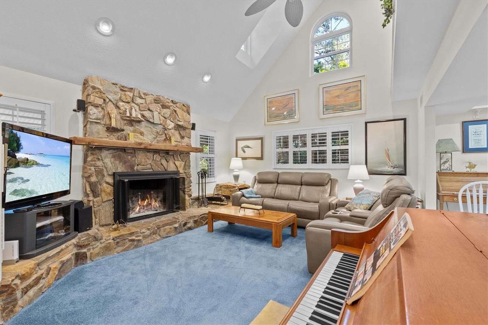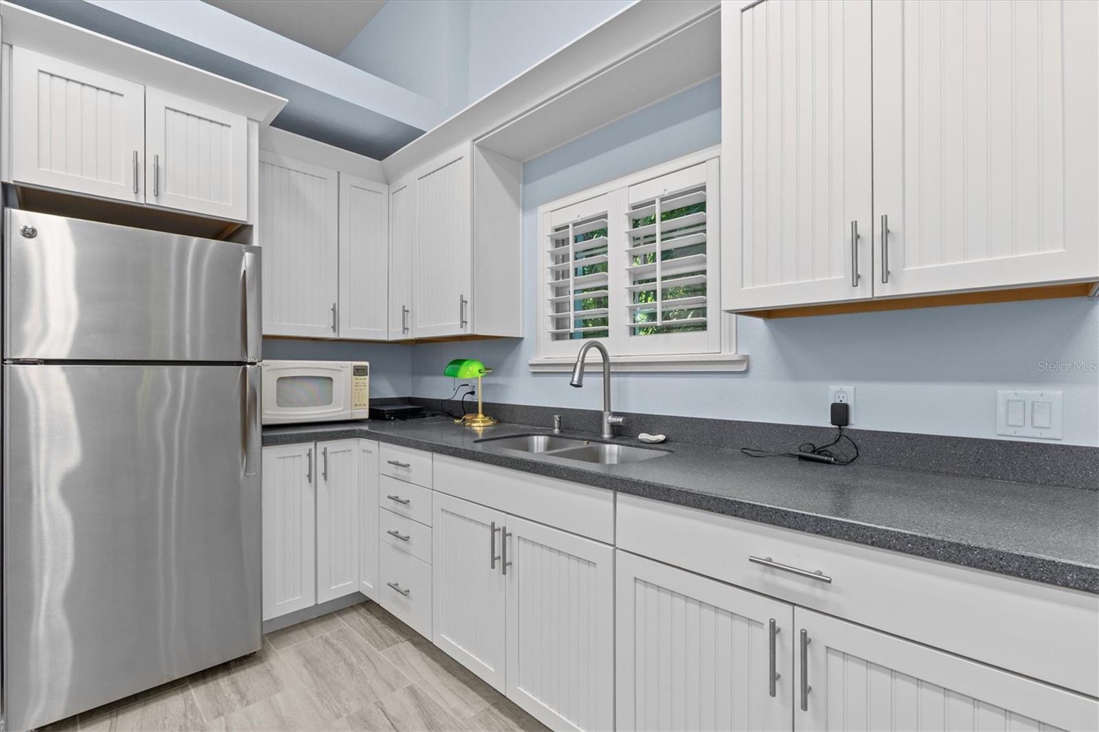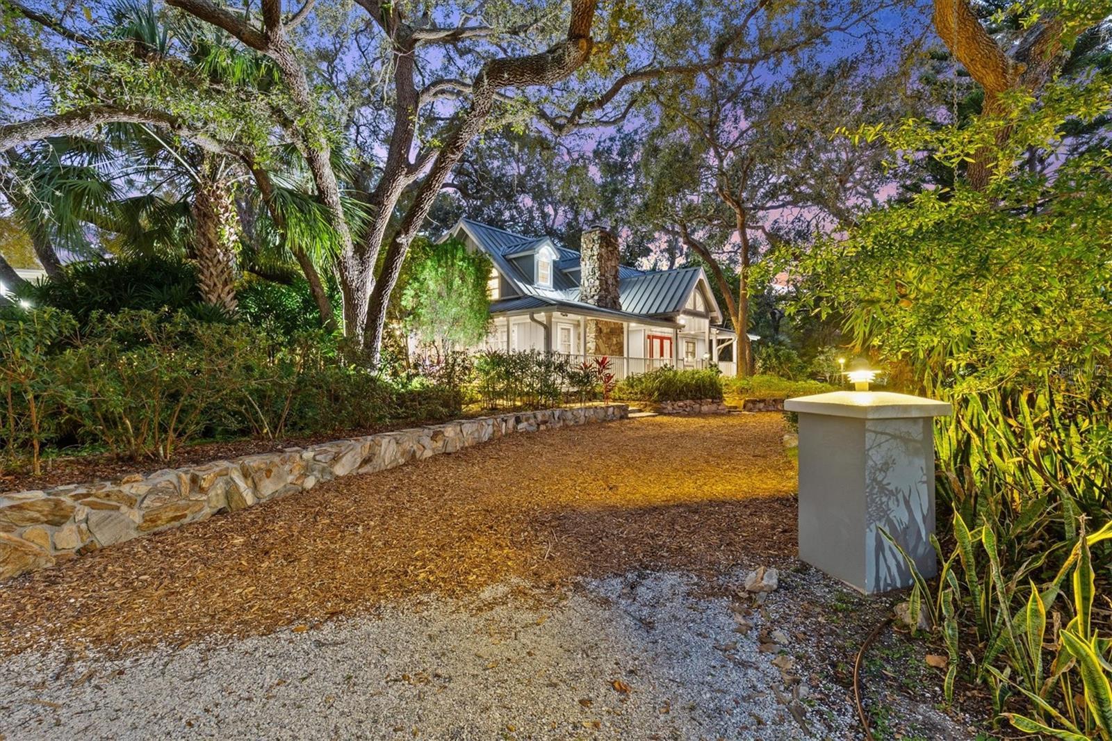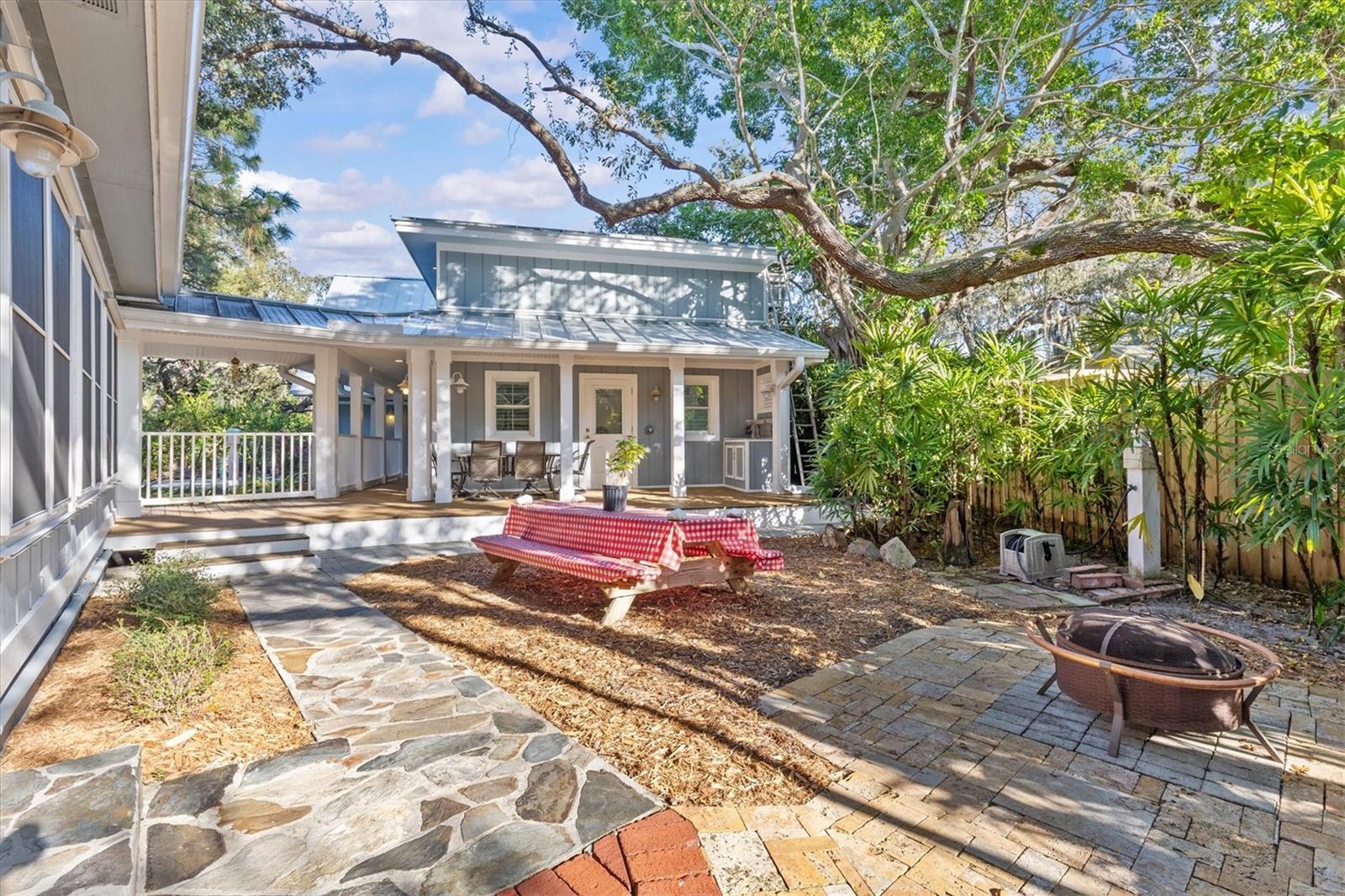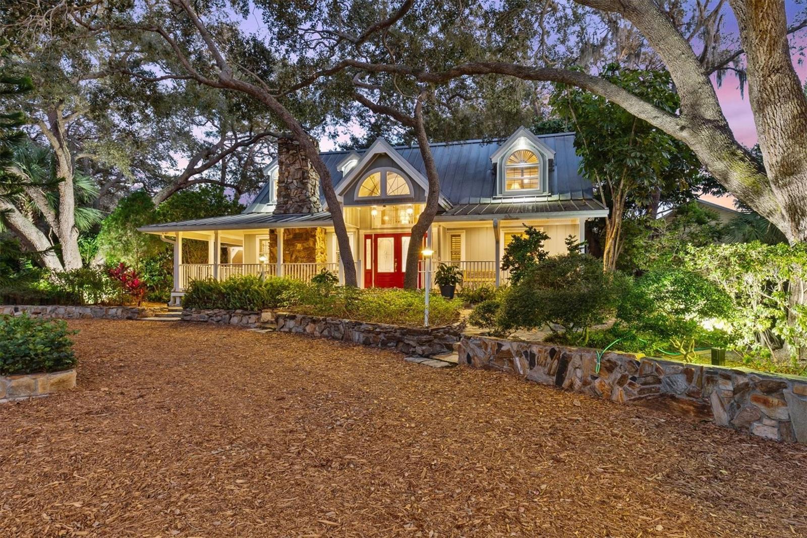 Rare Opportunity in Crystal Beach! Discover the charm of this sought after, iconic and unique estate situated on a coveted half-acre wooded corner lot in the heart of Crystal Beach. This classic storybook home, with an effective age of just 10 years, boasts incredible curb appeal, featuring a stunning metal roof, dormer windows, flourishing landscaping, and majestic oak trees. The home setting offers privacy and beautiful views from any window. A breezeway connects to the detached garage and versatile 533 SF Accessory Dwelling Unit (ADU), ideal for an office, Airbnb, or an in-law suite—perfect for multigenerational living. Nostalgic flagstone walkways meander throughout the beautifully landscaped grounds, leading you to the inviting covered wrap-around porches that offer the perfect spot for relaxation. The back yard is an entertainer’s dream, complete with a fire pit area, picnic table, and a covered porch that includes a cabinet/countertop and sink area for hosting gatherings. With a private entrance to the Pinellas Trail from your own gate, you have endless opportunities for convenient outdoor adventures.. You’ll enjoy the convenience of a spacious garage with 16-foot ceilings, perfect for working on your boat and recreational vehicles, plus an air-conditioned workshop for all of your projects. At the front home entrance, step through the double leaded glass entry doors into a lightfilled foyer that welcomes you into a bright living room, complete with vaulted ceilings and a cozy wood-burning stone fireplace. The open kitchen is a chef’s dream, featuring maple cabinets, Corian countertops, recently added KitchenAid stainless steel appliances, a breakfast bar, and a full-size pantry. The family room at the back of the home is perfect for gatherings, relaxation and desk work. The double French doors off the dining area lead you to a covered, screened-in porch where you can enjoy your morning coffee while listening to the gentle sounds of nature. On the first floor, you’ll find two bedrooms and a full bath, providing ample space for family or guests. The second floor features the primary bedroom, which boasts a private balcony, a large walk-in closet, and an en-suite bathroom with double vanities and a two-headed shower with a bench. Another bedroom on this floor adds flexibility for living arrangements. This home is owned by a General Contractor and was completely gutted and rebuilt with added area, including the addition of new structures, walkways and decks, driveways, site lighting, and many site improvements. All of this is situated in the delightful waterfront community of Crystal Beach, just a few blocks from the waterfront park and the brand-new community pier. This home is zoned for A-rated schools, including Ozona Elementary, Palm Harbor Middle, and Palm Harbor University High. Enjoy peace of mind in a non-flood zone—this home has never flooded! Don’t miss out on this fabulous estate—your coastal living dream awaits!