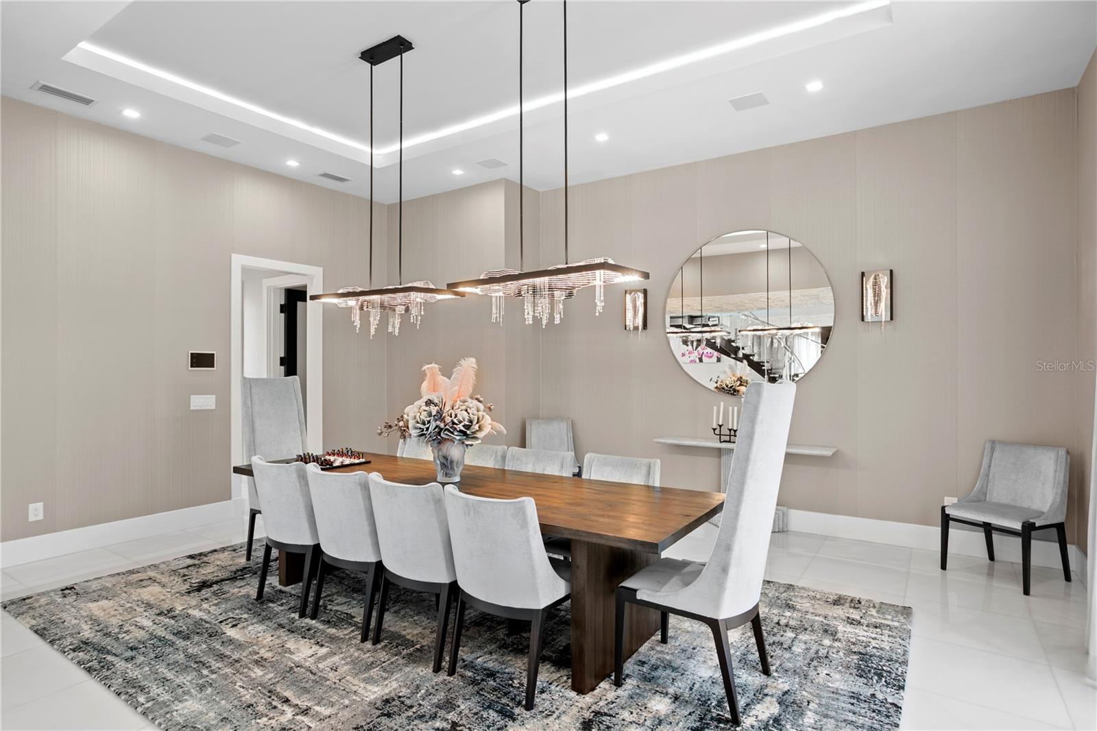 Experience the ultimate in waterfront living with this extraordinary Davis Island home, perfectly positioned on the open bay. Designed for both grand entertaining and resort-style relaxation, this five-bedroom, eight full and two half-bath masterpiece offers 9,646 square feet of indoor living space and over 12,500 square feet including terraces and garage- a true showcase of modern Tampa Bay luxury. A gym and a home office, both with closets and bathrooms offer flexible living options to suit your lifestyle. From the moment you arrive, the home’s modern architecture and sweeping bay views set the stage for an exceptional lifestyle. The rear exterior is an entertainer’s dream, featuring a uniquely designed layout that allows for both large gatherings and intimate moments - enjoy a central seating group within the pool, a fireplace, a round fire pit, and a fully equipped outdoor kitchen, all connected by multiple terraces and balconies. A whole-home sound system extends throughout the interior and outdoor living areas, with multiple zones for the pool deck, balconies, and outdoor kitchen - all complemented by TV seating areas for al fresco entertaining. Indoors, you’ll find sophisticated modern finishes including a stunning spiral staircase, designer lighting, and expansive windows that capture breathtaking water views. The open-concept chef’s kitchen features high-end appliances, sleek cabinetry, a wall-sized wine display, and a large island—flowing seamlessly into the dramatic two-story living and dining area, perfect for gatherings of any size. The home’s entertainment suite offers endless enjoyment, complete with a full bar, game area with video wall, and home theater with projection system and dedicated sound. This thoughtfully designed space connects through a bar seating area, ideal for mingling or movie nights. For wellness, a dedicated gym and a serene yoga/meditation room provide inspiring spaces overlooking Tampa Bay. Car enthusiasts will appreciate the four-car garage with 16-foot ceilings, designed to accommodate lifts and prized collections up to eight cars. Enjoy comfort and safety with a cutting-edge security system designed to protect your home and loved ones with remote monitoring; and a whole house generator for complete peace of mind. With multiple terraces on every level, an expansive pool and spa, this home offers varying features that define outdoor living in Tampa’s year-round beautiful weather. Your private dock ,with boat lift, offers effortless access to open bay waters. Living on Davis Island means joining one of Tampa’s most exclusive and vibrant communities—just minutes from downtown, Water Street, Amalie Arena, and Tampa International Airport. The island offers local restaurants, boutiques, parks, marinas, dog parks, tennis club, private airport, and golf cart-friendly streets. Beaches, Riverwalk attractions, and even Disney are all within easy reach. Discover the perfect blend of luxury, comfort, and location — welcome home to Davis Island’s premier waterfront estate.