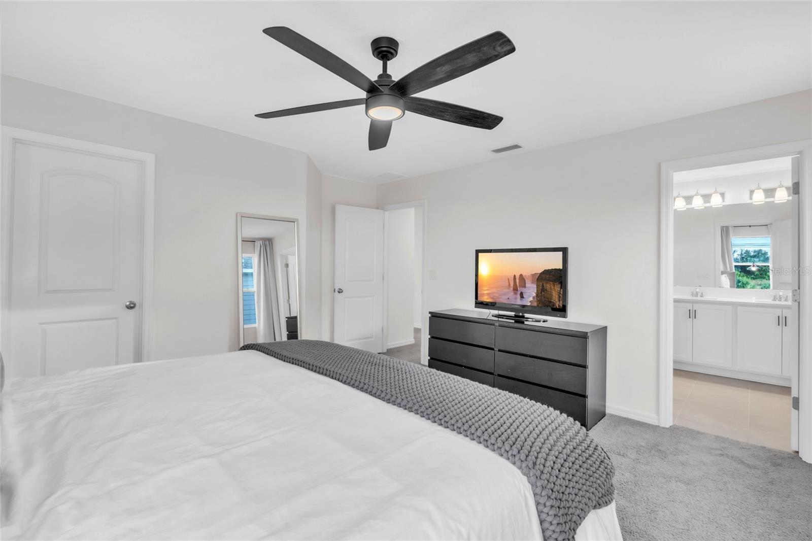 - Eat-in Kitchen, High Ceilings, Kitchen/Family Room Combo, Living Room/Dining Room Combo, Open Floorplan, PrimaryBedroom Upstairs, Solid Surface Counters, Solid Wood Cabinets, Thermostat, Walk-In Closet(s), Window Treatments