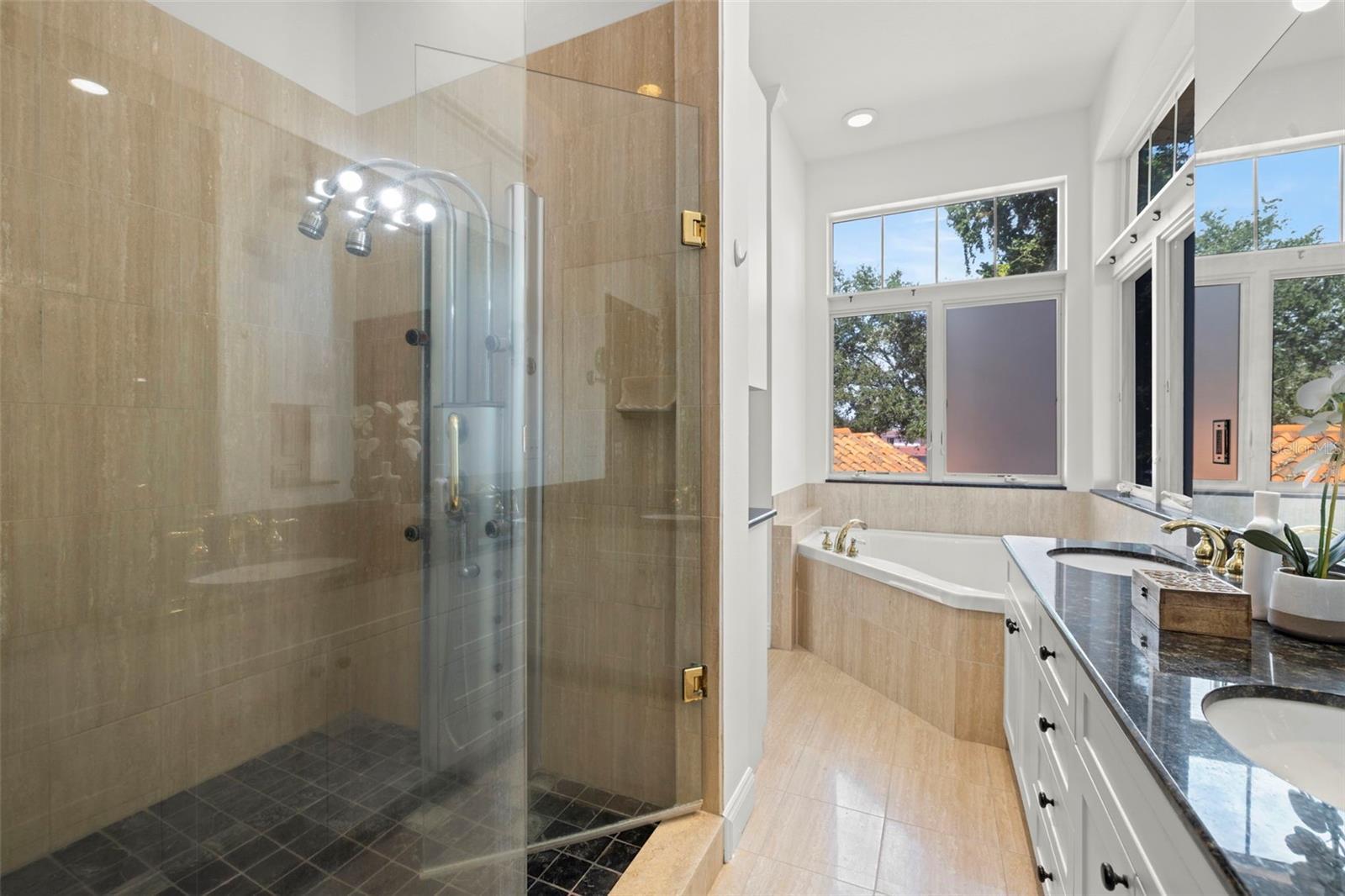 - Ceiling Fans(s), High Ceilings, Primary Bedroom Main Floor, PrimaryBedroom Upstairs, Split Bedroom, Stone Counters, Walk-In Closet(s), Window Treatments