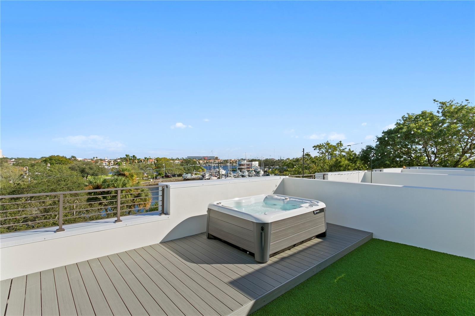 Experience upscale island life living in one of the hottest areas in all of Tampa, Davis Islands. This impeccably upgraded contemporary WATERFRONT TOWNHOME, featuring 4 bedrooms, 3 bathrooms, beautiful ceramic flooring throughout and a private elevator connecting all levels. One of the major perks of this townhome is it has vinyl flooring in the garage and has its own bay for a golf cart. As you enter, the soaring ceilings, designer finishes create a bright open living from the moment you enter. The first floor greets you with a beautiful seating area and a closet organized for all your storage needs, perfect for keeping shoes and essentials out of sight. On the second floor, your chef’s kitchen awaits with Viking gas cooktop, stainless hood, custom quartz countertop with waterfall edge, upgraded hardware pulls, and custom white shaker cabinetry with seamless flow for cooking and entertaining. Enjoy an Alexa controlled home, curated elegance with custom globe lighting, an oversized 8 blade ceiling fan, an instant hot water dispenser, and built in custom shelving with a walk in pantry. Head up to the third floor which which truly feels like a wellness floor. Walking upstairs you have your own private built in sauna along along with an expansive home gym, which can easily be converted back to two separate rooms along with a huge bathroom and massive laundry room. Walk down the hall and you’ll be greeted by your beautiful and bright master suite with the most beautiful water views. The master suite impresses all with custom closets and an added linen closet in the bathroom with custom quartz counters and designer wall porcelain tile. Elevate your lifestyle on the fourth floor with your rooftop oasis outfitted with a premium Hot Springs Jacuzzi installed atop reinforced steel beams, composite decking and lush artificial grass that’s zero maintenance and on the entire roof which is the perfect setting for a glass of wine while relaxing or entertaining under the Tampa Skyline. This townhome is a rare blend of contemporary luxury, functionality, and thoughtful customization located on the water in front of Marjory Park Marina. Walking distance to Roy Jenkins Community Pool, Davis Islands Village filled with some of the best Restaurants, Boutiques, Coffee/Tea shops, food markets and little league fields in the area. Wait until January when Gasparilla Fireworks happen along with watching the entire invasion from the rooftop. Located in Gorrie, Wilson and Plant High School.