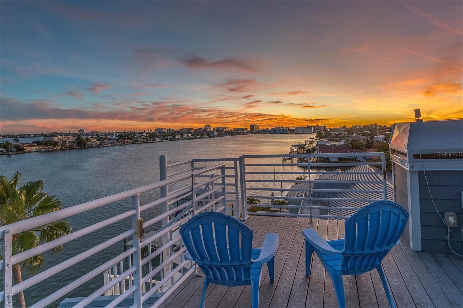 Under contract-accepting backup offers. 85ft OF WATER FRONTAGE | 2 BOAT LIFTS | 2 JETSKI LIFTS | PANORAMIC WATERVIEWS | PRIVATE ELEVATOR. Welcome to the most remarkable waterfront residences on St. Pete Beach, where coastal living, craftsmanship, and pure relaxation unite. The ultimate outdoor experience while maintaining peace of mind with full elevation, impact-rated windows and doors, and an outdoor oasis that surpasses every expectation. Step onto your own PRIVATE MARINA with an expansive composite dock featuring two boat lifts (30K and 10K), dual jet ski lifts, water, electric, newer seawall, and a fish-cleaning station for your fresh catch. Located on the Intracoastal waterway with quick Gulf access this is a fisherman/boater's dream. The backyard transforms into a resort-style escape with a SALTWATER PEBBLE TECH POOL featuring three cascading waterfalls, in-water seating, a sun shelf, and a heater/chiller system for ideal comfort in every season. Surrounding it all is elegant Travertine tile connecting multiple entertaining areas, a massive authentic TIKI HUT (22' x 24'), and low-maintenance artificial turf ensures your time is spent relaxing, not mowing. Step through the custom front door and enter into 3,489 square feet of luxurious living space (4,856 Total Gross Area) where an abundance of light fills every room, high ceilings and uninterrupted water vistas through floor-to-ceiling hurricane-rated frameless windows. The open-concept great room boasts a custom bar accented with wood trim and complete with its own refrigerator and sink. Designed for the modern chef, the custom kitchen boasts stainless-steel cabinetry, Quartz counters, four THOR refrigerator drawers, and premium stainless-steel appliances throughout. A dining area, half bath, and a butler’s pantry/utility room complete this level. The second-level covered porch overlooks the INTRACOASTAL and is complete with tongue and groove wood ceilings, tile floors, ceiling fans, electric shades, and a built-in propane gas connection for your grill. Enjoy Sonos-powered music throughout every level, inside and out. The third floor offers a split-bedroom layout with a cozy entertainment lounge and fireplace with sliders leading the third level covered balcony. Two guest bedrooms share a well-appointed bath, while the primary suite enjoys dual closets, a gas fireplace, and a private balcony. It's SPA-INSPIRED bathroom completes the retreat with sophistication and serenity. The fourth floor presents a versatile guest suite with its own bath, an all-glass sitting area, plus direct access to the ROOFTOP DECK which is the highest residential vantage point in St. Pete Beach. From here, take in 360-degree panoramas of downtown St. Petersburg, Tropicana Field, the Don CeSar, Boca Ciega Bay, and the Gulf. This deck is the ultimate perch for sunrise coffees, sunset toasts, and dolphin watching. The ground floor has a two-car garage, dual storage rooms, a bar area with roll-up door to the pool, a bonus recreation room, and a full bath. The oversized paver driveway offers ample space to accommodate multiple vehicles with ease. The entire exterior was reimagined with maintenance free Hardie Plank siding, new eaves, PVC fascia, gutters, and lifetime metal roof (2025), all designed for durability and style. Every surface of this home has been thoughtfully upgraded with precision and purpose. This is not just another waterfront home, it’s a custom-crafted sanctuary designed for those who want to live every day like a vacation.