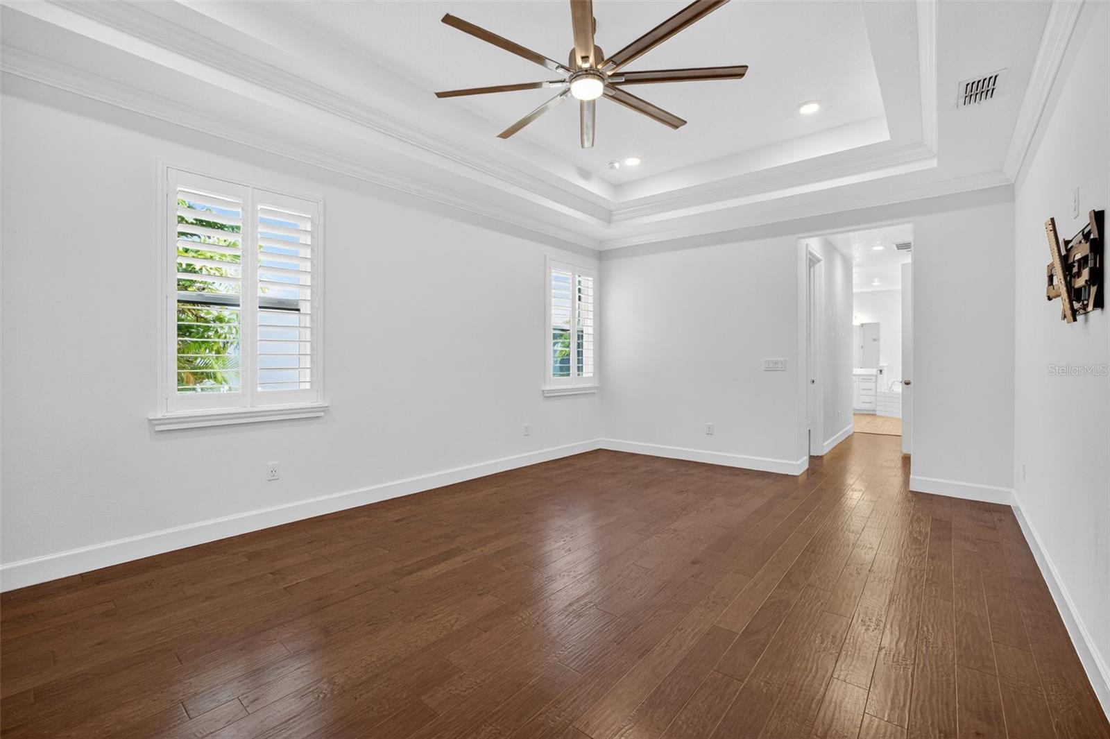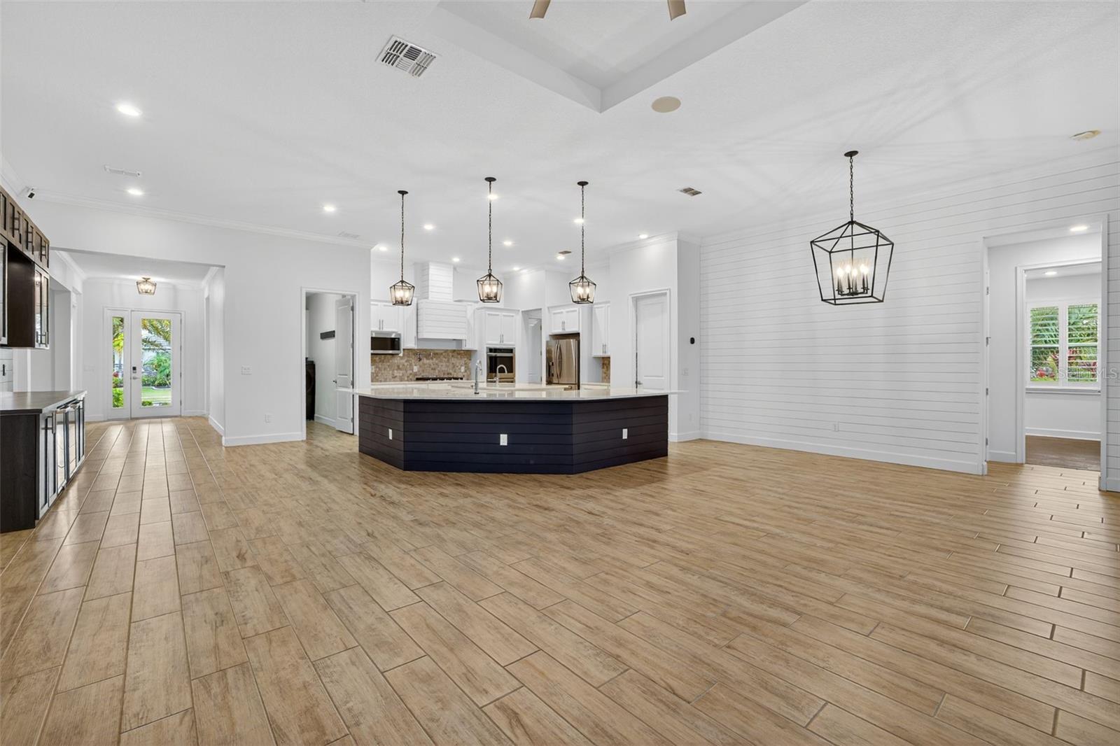 - Built-in Features, Ceiling Fans(s), Coffered Ceiling(s), Crown Molding, Dry Bar, Eat-in Kitchen, High Ceilings, Kitchen/Family Room Combo, Living Room/Dining Room Combo, Open Floorplan, Primary Bedroom Main Floor, Solid Surface Counters, Split Bedroom, Thermostat, Tray Ceiling(s), Walk-In Closet(s), Window Treatments