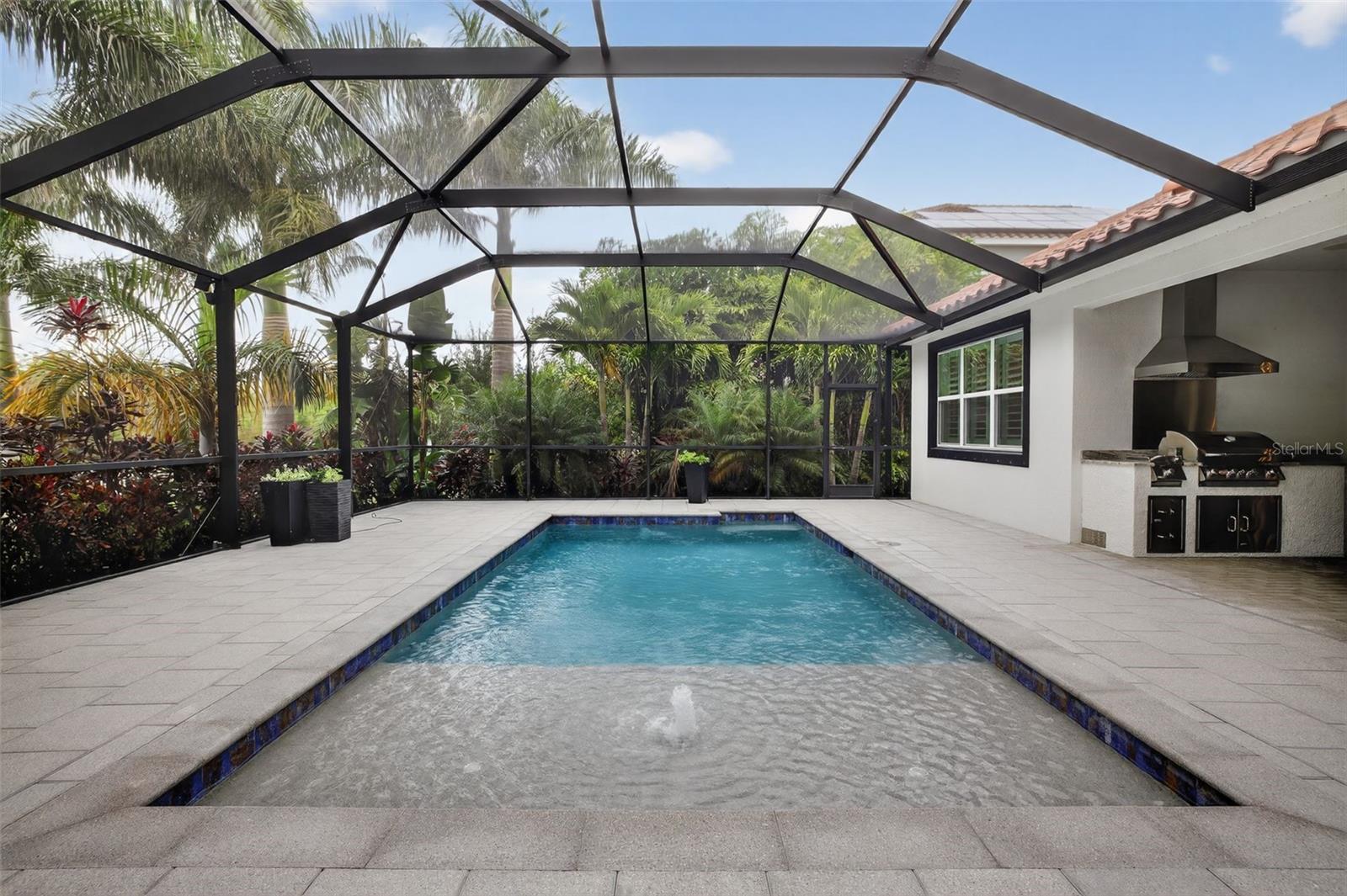 Under contract-accepting backup offers. PRICE IMPROVEMENT! Presenting a distinguished opportunity to acquire the Florenzo floor plan by Park Square AND seller is offering 10K in concessions to be used at buyers discretion at closing. This beauty is located within the gated community of Mira Bay’s exclusive Bay Estates Preserve. This meticulously maintained salt water pool residence provides 3,200 square feet of living space on a .46-acre lot adjacent to a tranquil nature preserve. The home offers four bedrooms, three and a half bathrooms, a three-car garage, a private office, and a sitting/formal dining area—all within a spacious open floor layout designed for comfort and entertaining. Each bedroom features wood flooring, crown molding, and plantation shutters. The master suite is equipped with built-in cabinetry and window seating, tray ceilings, and a well-appointed bathroom including a separate soaking tub, water closet, and dual sinks. The gourmet kitchen is enhanced by Cambria quartz countertops, farmhouse sink, double wall ovens, a pot filler, tiled backsplash, custom ship-lapped hood, an oversized island for bar seating, a vegetable sink island, custom butler's pantry, and stainless-steel appliances. A breakfast nook adjoins the kitchen for added convenience. The great room boasts twelve-foot tray ceilings and a ship-lapped accent wall with mantle and fireplace. The built-in bar adds sophistication for entertaining. The laundry room includes upgraded cabinetry, quartz countertop, sink and washer/dryer. Hurricane-rated sliding glass doors lead to a screened lanai overlooking the preserve, saltwater pool, outdoor kitchen, and built in with mantle and fireplace. The lanai offers a space for viewing beautiful sunsets from the backyard. The property’s curb appeal is elevated by professional landscaping and mature palm trees in the front and backyard that is a must see to fully appreciate. Additional amenities comprise of a whole house generator, fenced yard, epoxied three-car garage with ample storage cabinets, 40 amp EV charger, Pentair whole-house water filter and salt free water softener and conditioner, in-ceiling speakers throughout the home both inside and out, tankless water heater, ring security system with cameras inside and outside, office with built-ins, drop zone off the garage with cabinetry and shiplap accents, among others. Residents of Mira Bay enjoy resort-style amenities, including a pool with slide, café, fitness center, sports courts, and year-round community events. The location offers convenient access to shopping, dining, Tampa, Sarasota, Bradenton, St. Petersburg, Tampa International Airport, and MacDill AFB. This property combines luxury, versatility, is in a prime location and represents an exceptional choice for discerning buyers. Come make this paradise on the preserve your home today!