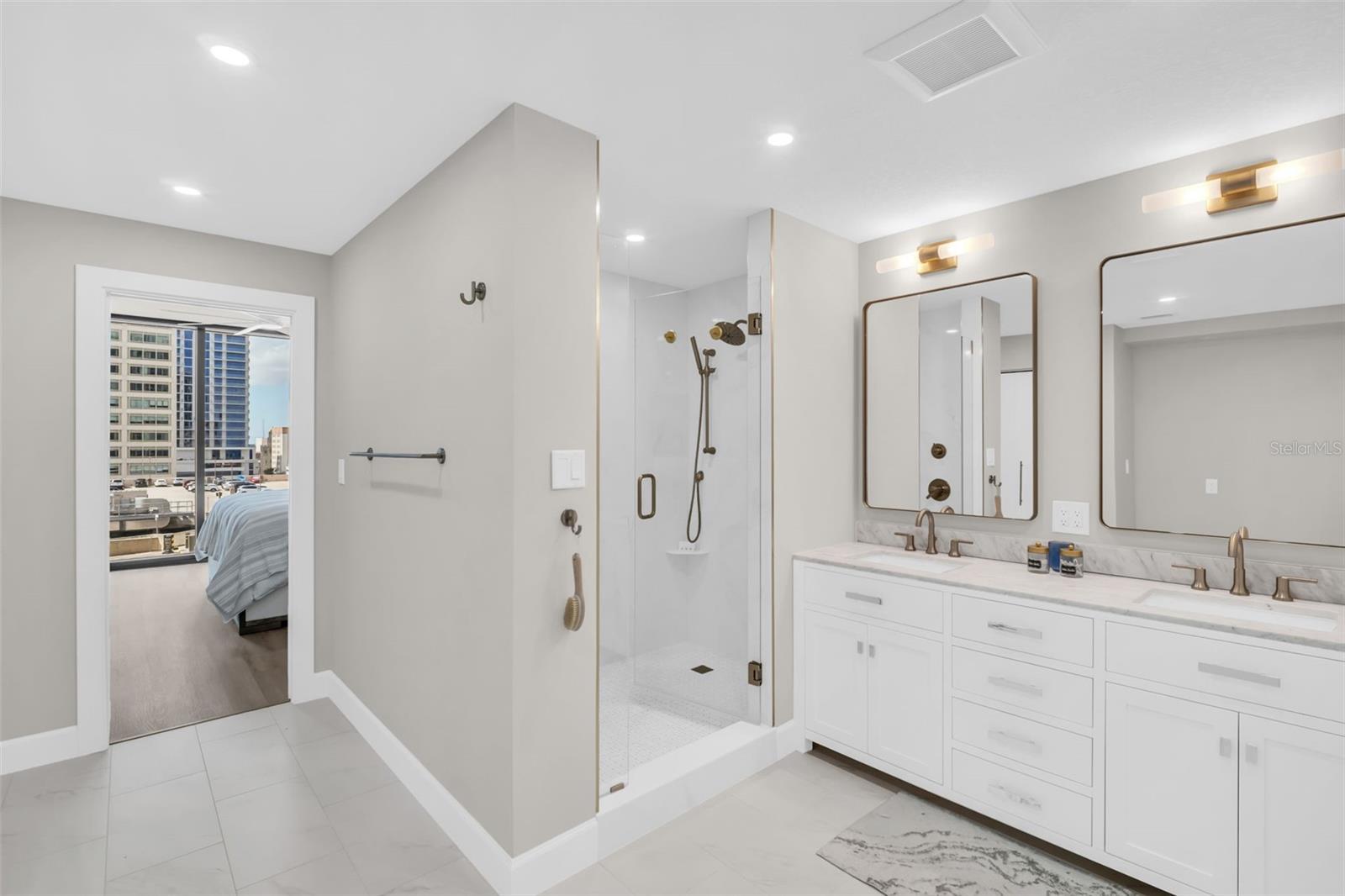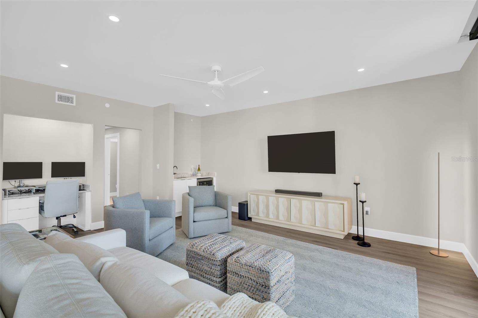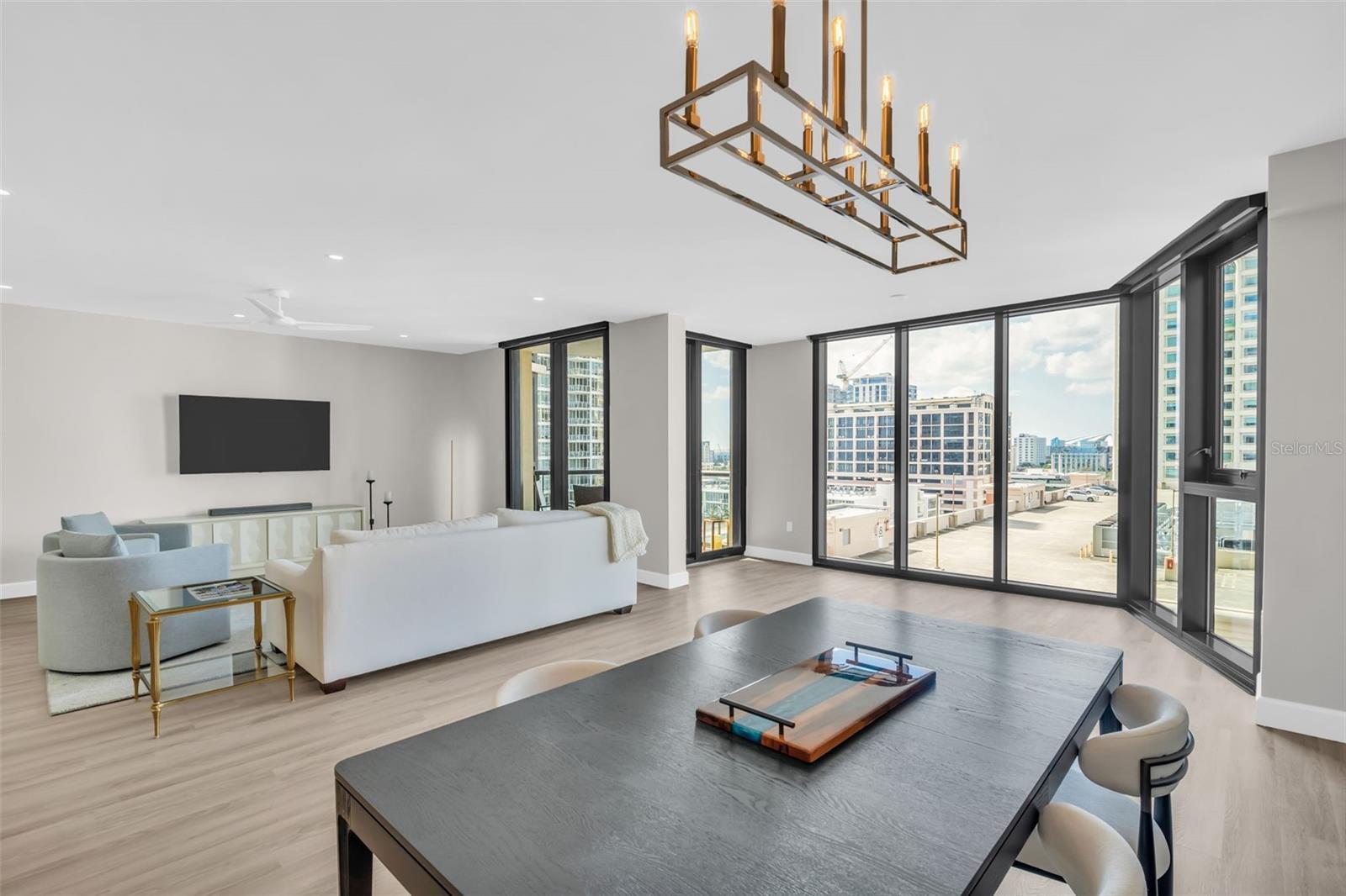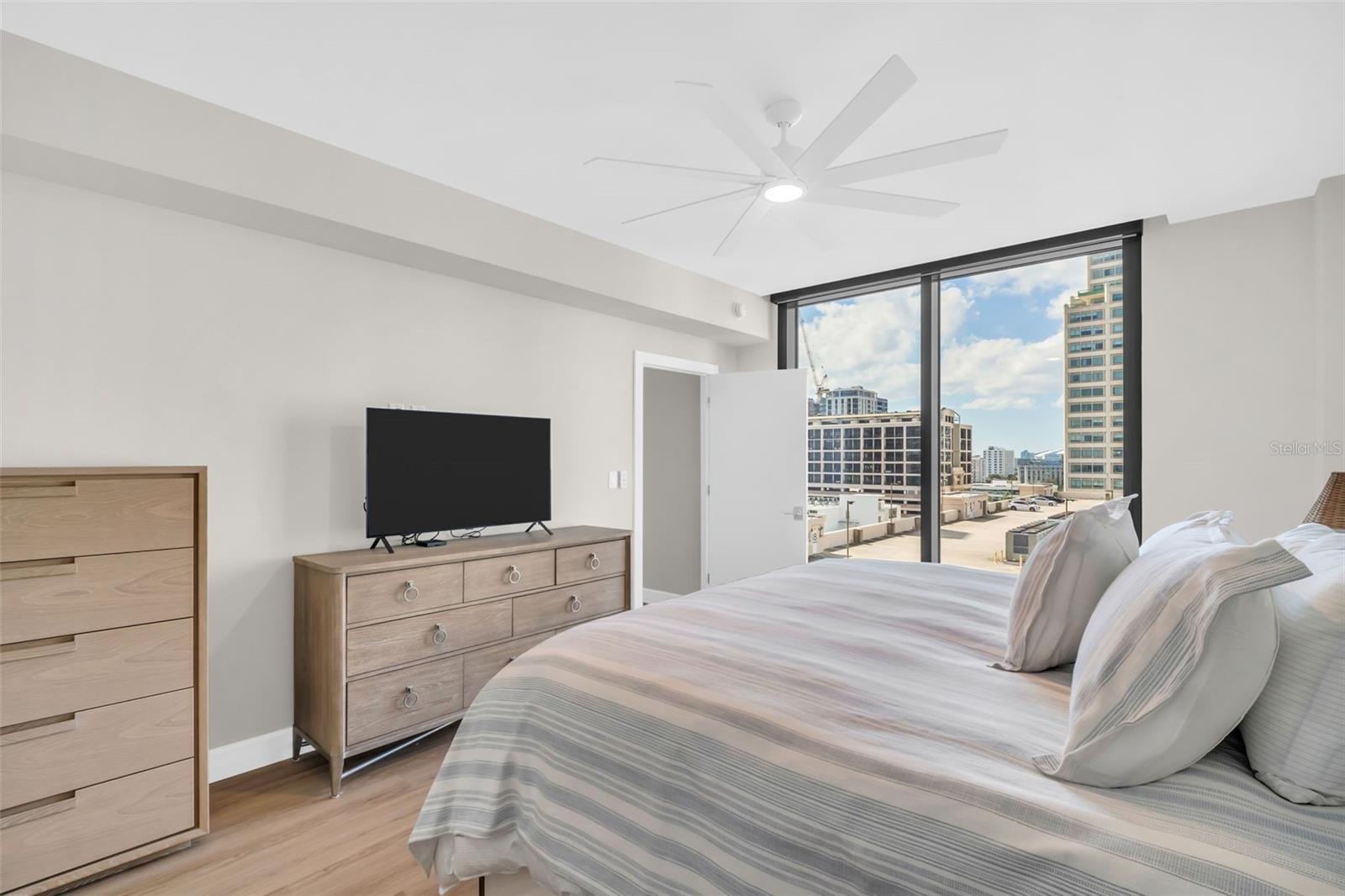 Discover elevated downtown living in this fully transformed 3-bedroom, 2-bath residence at Bayfront Tower, spanning approximately 1,925 interior square feet and featuring a generous balcony with sweeping city-scape views. From the studs up, no detail was overlooked in the 2025 renovation: all plumbing and electrical systems are brand new, and premium finishes abound, think Delta and Brizo faucets, an auto-touch kitchen faucet, Wolf induction cooktop with double ovens, and extended appliance warranties (via Ferguson). Custom Londos cabinetry enhances the kitchen, laundry and bar/work area, with under-island seating that conceals built-in storage. Marble surfaces grace the island, backsplash, countertops and work zone, while Franke granite sinks elevate the design. Updated windows and sliding doors flood the space with light. Wireless motorized roller shades dress every opening; remote-powered silent ceiling fans keep things comfortable. New sprinklers and fire-detection systems provide added peace of mind. With ample closet space and thoughtful built-ins, the home combines sleek design with efficient living. At Bayfront Tower, you'll enjoy full-service luxury in the heart of downtown: 24-hour concierge, valet parking, an on-site management team, rooftop heated pool and spa, jogging track, sprawling fitness center, library/game rooms and elegant social spaces for hosting events. Bayfront Tower. Live steps from the waterfront, vibrant dining, arts and culture, and the unbeatable walkability of St. Pete's premier address.