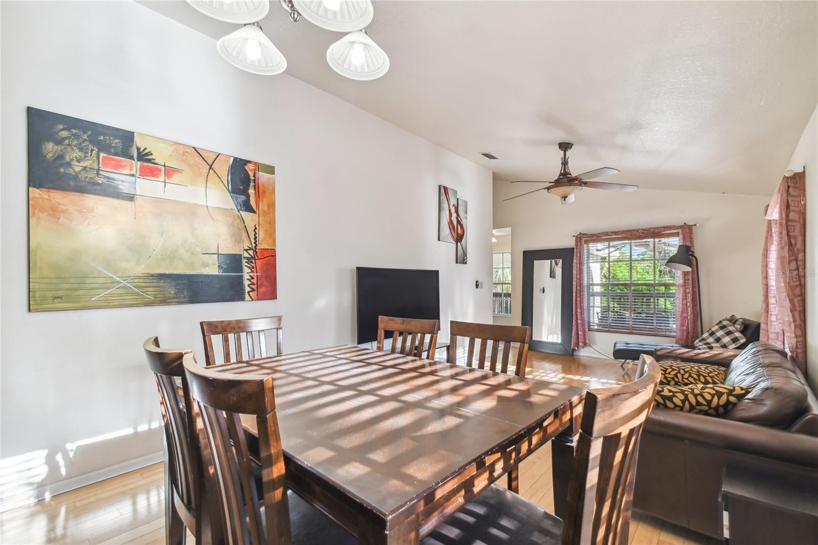 - Ceiling Fans(s), High Ceilings, Living Room/Dining Room Combo, PrimaryBedroom Upstairs, Solid Surface Counters, Solid Wood Cabinets, Stone Counters, Thermostat, Walk-In Closet(s)