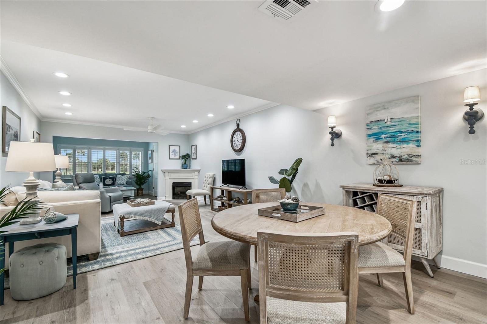 - Crown Molding, Living Room/Dining Room Combo, Open Floorplan, Other, Primary Bedroom Main Floor, Window Treatments