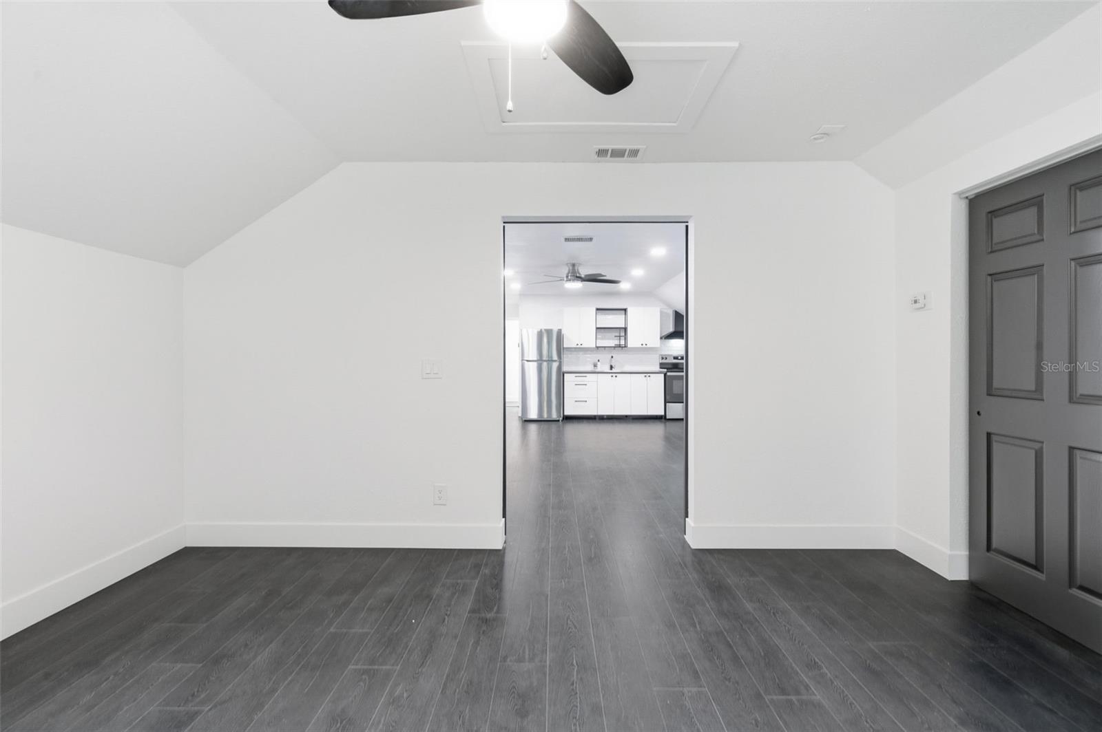 - Cathedral Ceiling(s), Ceiling Fans(s), Eat-in Kitchen, High Ceilings, Kitchen/Family Room Combo, Open Floorplan, Primary Bedroom Main Floor, Solid Wood Cabinets, Split Bedroom, Walk-In Closet(s)