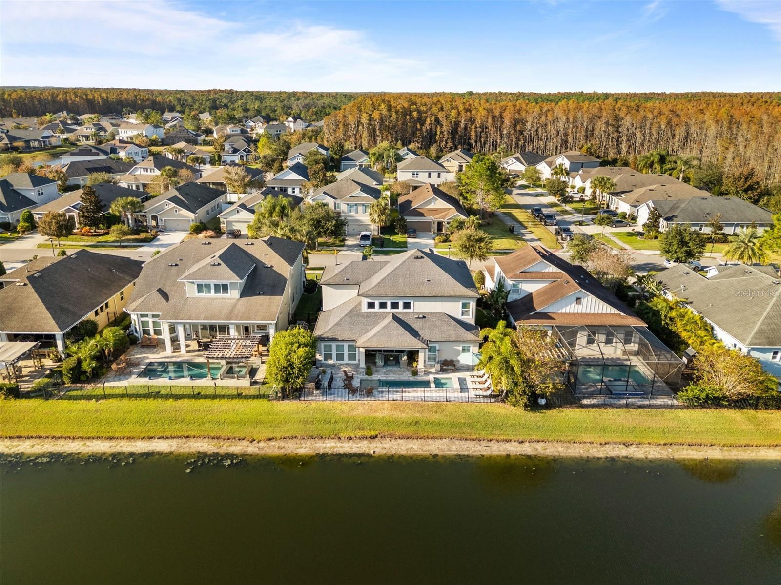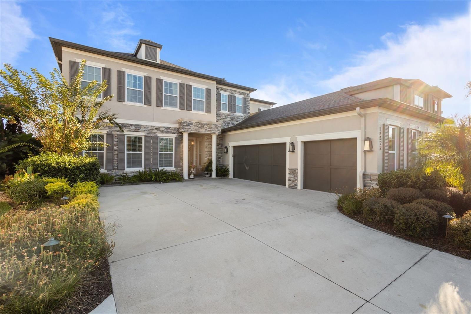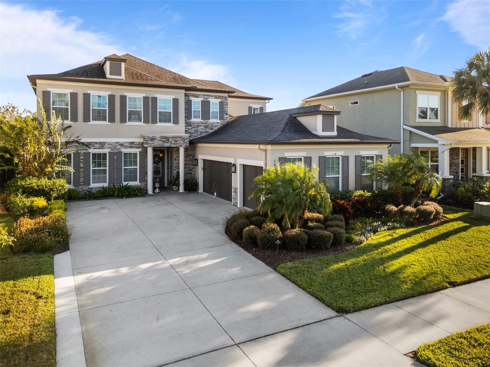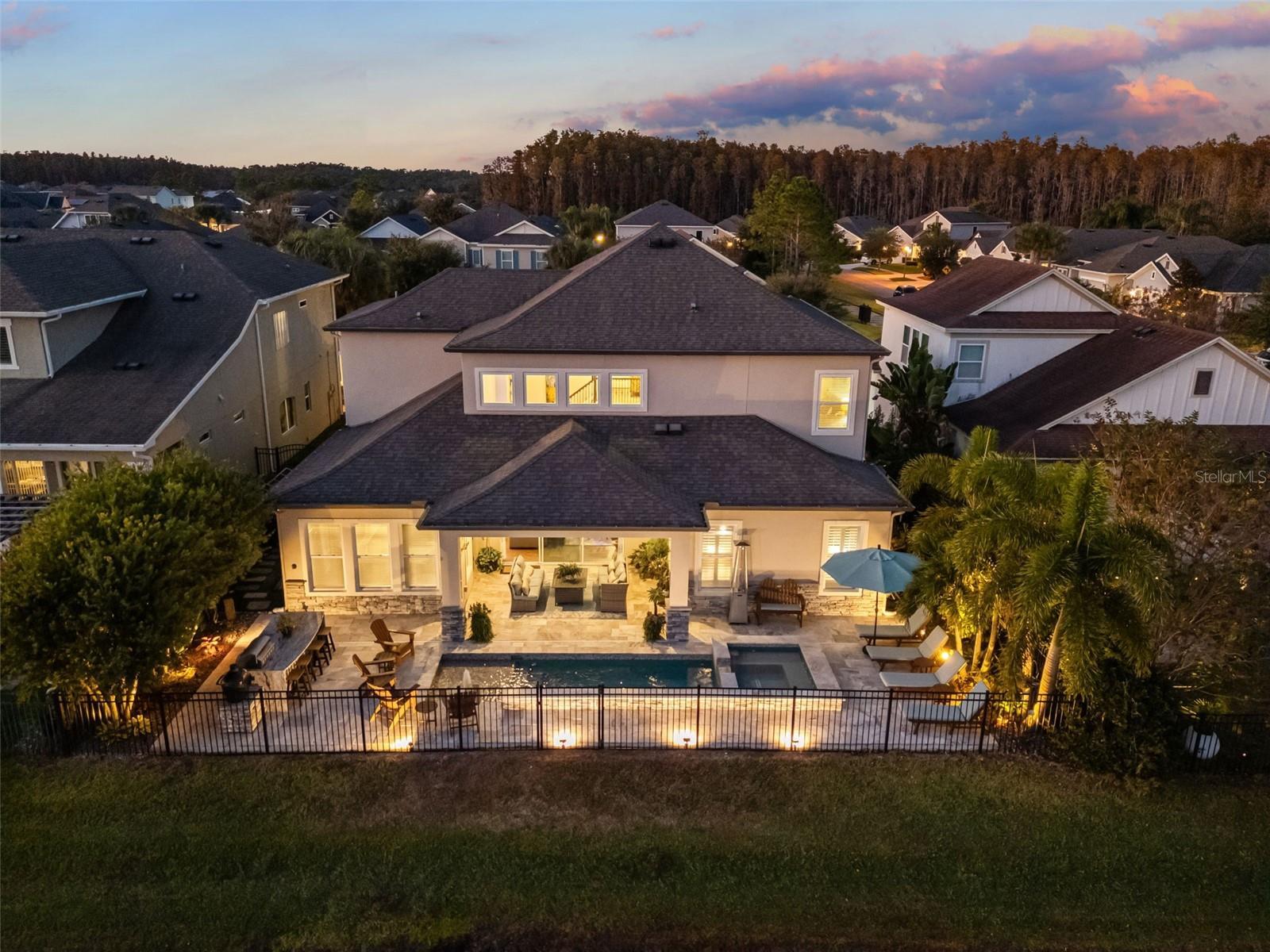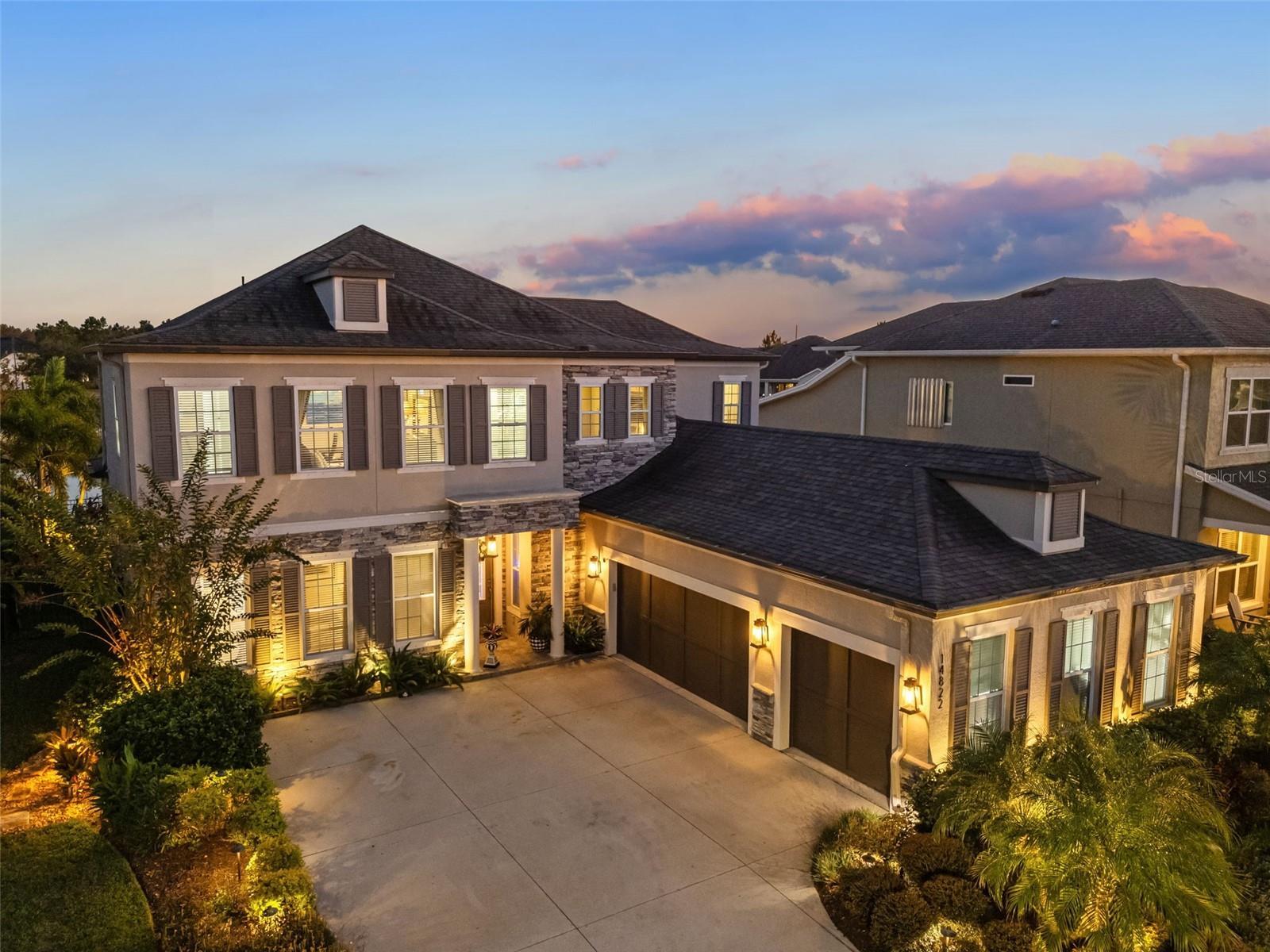 $40,000 in immediate SAVINGS with a $25,000 price reduction plus an additional $15,000 in seller credits for any offer accepted by January 31, 2026. Add over $180,000 in after build upgrades, and this becomes one of the most unique and heavily upgraded homes ever offered in Asturia. Beyond the numbers, this home makes an immediate impression. One of the most impressive homes to come to market in Asturia, this 6 bedroom, 5 bath Ashton Woods Caladesi II sits on a premium pond view lot and stands out for its elevated design, rare features, and entertainer focused layout. The stone accented façade, exterior lighting, and oversized driveway create a striking first impression and set the tone for the craftsmanship found throughout. Inside, the home reveals a level of refinement rarely seen in the neighborhood. Enhanced far beyond the standard builder package, it is loaded with custom, high end upgrades that elevate both style and function, beginning with the open tread staircase and continuing throughout the first floor. Just off the entry, the finished bar room with exposed beams and a full bar setup makes a statement and can also serve as a dining room, flex space, or additional living area. Rounded drywall corners add a subtle, premium finish. The open concept great room showcases soaring ceilings, exposed beams, built in speakers, and a wall of windows framing peaceful pond and pool views. The chef’s kitchen features white cabinetry with glass front uppers and internal lighting, a contrasting gray island, upgraded granite countertops with full backsplash, stainless steel appliances, a natural gas cooktop with pot filler, wall oven, and custom pendant lighting. A spacious dining area sits just off the kitchen. Step outside to a private, resort style retreat designed for year round enjoyment. The backyard includes a heated saltwater pool and spa, tropical landscaping, expansive deck space, covered lounge area, and a full outdoor kitchen with Blaze refrigerator, ice maker, and grill. The pool and spa are fully app controlled, with professional landscape and architectural lighting and built in speakers. The first floor primary suite offers a true retreat with a built in fireplace, plantation shutters, and tranquil pond views. The en suite bath includes dual sinks and a walk in shower with dual showerheads, while the customized walk in closet features built in lighting and white cabinetry. A second first floor bedroom with a full bath nearby provides flexibility for guests or multigenerational living. Upstairs, a spacious loft separates two private wings. One includes a guest suite with its own en suite bath. The opposite wing offers three additional bedrooms, with a Jack and Jill bath plus another full bath. Additional highlights include 8 foot doors on both levels, an app enabled security system that conveys, and a location just three homes from the neighborhood park and playground. Asturia residents enjoy a resort style pool, modern clubhouse, fitness center, playgrounds, dog park, and scenic trails. Conveniently located approximately 2.4 miles to the Suncoast Parkway, within 2.5 miles of dining and shopping along SR 54, zoned for Odessa Elementary, Seven Springs Middle, and JW Mitchell High School. Video tour and floor plan included. Minutes to Tampa International Airport, downtown Tampa, and area beaches, with quick access to major corridors for an easy daily commute.