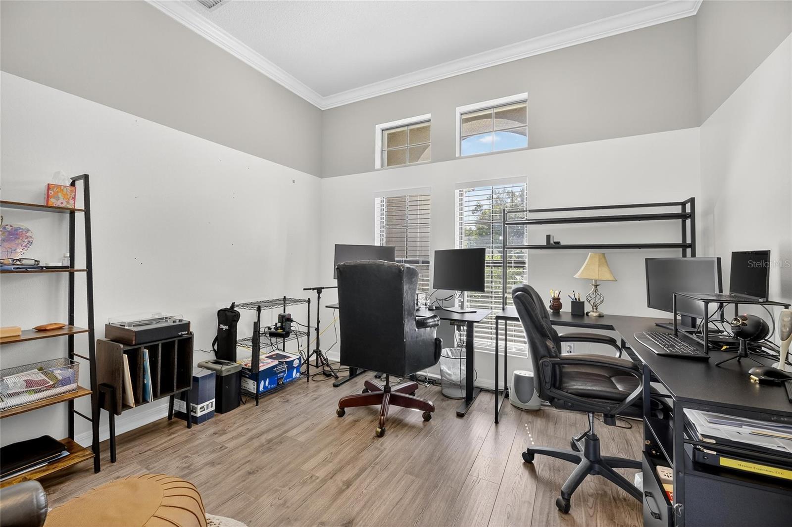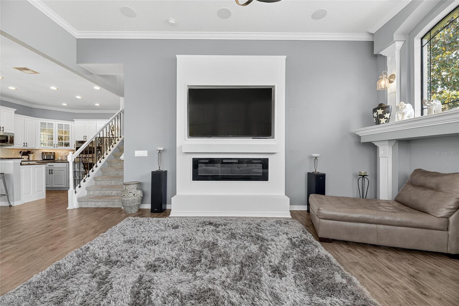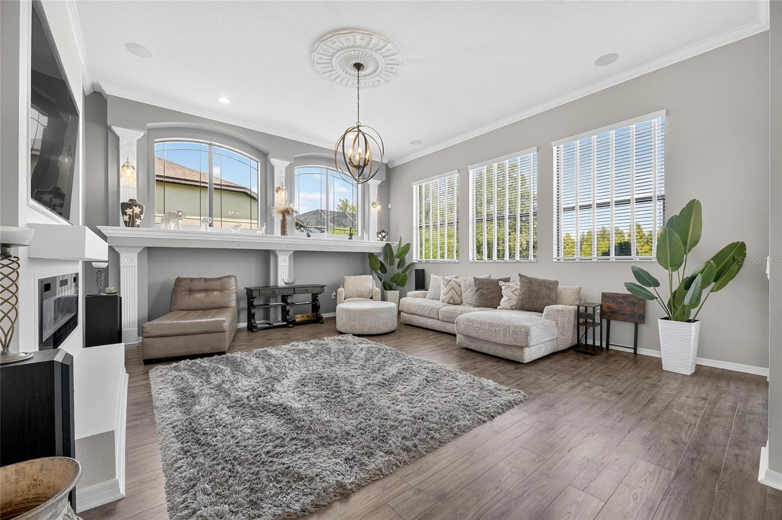 Welcome to 121 Falling Drive—where luxury, comfort, and thoughtful design come together in one exceptional residence. Located in the highly sought-after gated community of Stonewood, this home sits among meticulously maintained streets and lush landscaping, offering both privacy and prestige from the moment you arrive. Inside, you’ll find over 4,500 square feet of beautifully updated living space, including seven true bedrooms, three full baths, and two half baths—one conveniently positioned off the pool for effortless indoor-outdoor living. Over the past two years, the home has undergone impressive upgrades: a fully renovated chef’s kitchen, a refreshed pool area, a custom living room buildout, and an additional bedroom that expands the home’s already generous footprint. Designed with flexibility in mind, the layout easily supports multi-generational living, work-from-home needs, or simply room to spread out. Entertain in the oversized home theater equipped with ceiling-mounted surround sound throughout the house, stay active in the private gym with commercial-grade equipment, or unwind by the pool near glowing fire bowls. The gourmet kitchen features a gas cooktop, double ovens, abundant counter space, and an easy flow for hosting or everyday connection. When it’s time to recharge, the primary suite offers a true retreat—complete with dual showers, double vanities, two walk-in closets, an additional flex room ideal for an office or nursery, and direct access to the sparkling pool just steps away. Notable upgrades include a 2023 roof, tankless gas water heater, spray-foam-insulated walk-in attic, electric vehicle charging station, and wiring for a whole-home generator—delivering convenience and peace of mind. Outdoors, the backyard feels like a private resort. A travertine pool deck surrounds the infinity-edge spa, fire bowls, and fire pit, all overlooking an oversized, fully fenced yard. The covered lanai is pre-plumbed for an outdoor kitchen and equipped with built-in speakers and multiple TV hookups—perfect for quiet mornings or weekend gatherings. A private rear gate opens to a peaceful pond where you can enjoy fishing or simply unwind with the water views. Don’t miss the charming third-floor bonus room, complete with a bay window overlooking the pond—an ideal hideaway for reading, working, or relaxing. Every detail in this home has been selected with care, offering a rare combination of refinement, function, and comfort.