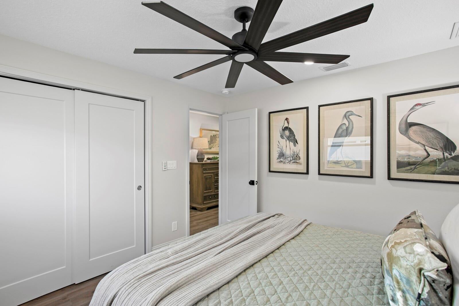 - Kitchen/Family Room Combo, Other, Solid Wood Cabinets, Window Treatments, Built-in Features, Ceiling Fans(s), Eat-in Kitchen, L Dining, Primary Bedroom Main Floor, Pest Guard System, Solid Surface Counters, Split Bedroom, Stone Counters, Thermostat, Walk-In Closet(s)