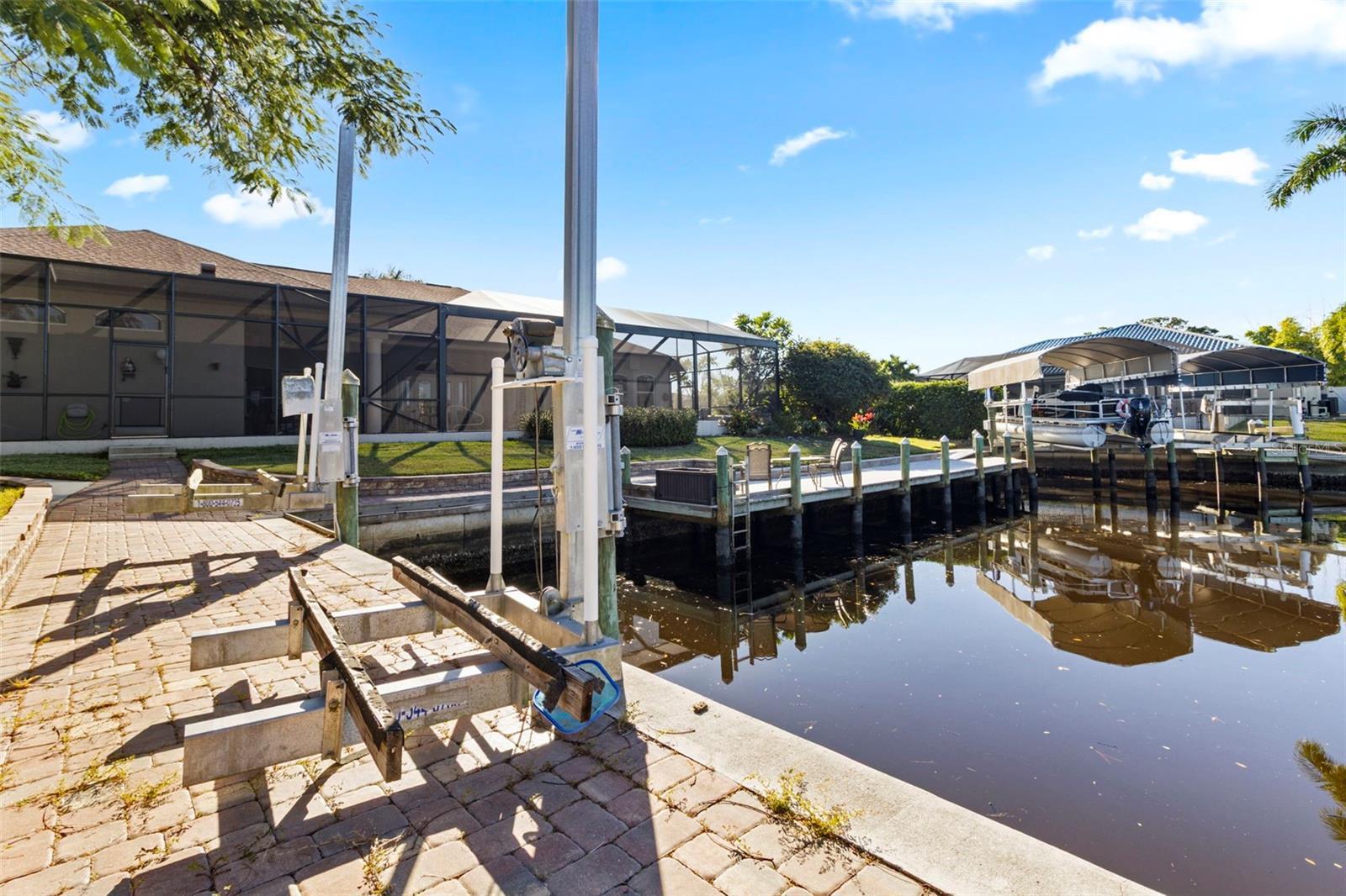 Just STUNNING! Discover an exceptional estate home that blends luxury and true Florida waterfront living. Perfectly positioned on three waterfront lots—totaling over three-quarters of an acre—this custom 4,265 sq. ft. residence offers sweeping views of the wide canal leading straight out to the Myakka River. Built with meticulous attention to detail, this 3-bedroom plus office, 3.5-bath pool home showcases refined architectural features including crown molding, step and coffered ceilings with custom lighting, built-in illuminated display cases, and and one elegant fireplace. French doors throughout the home open to an expansive 24' x 94' lanai, engineered for unobstructed water views creating a truly unique indoor–outdoor living experience. The chef’s kitchen impresses with high-end custom cabinetry, granite countertops, a large center island, breakfast bar, convection wall oven and microwave, stainless steel GE Monogram appliances, and picturesque views of the pool and canal. A built-in desk adds convenience for daily tasks. The serene master suite features a spacious sitting area, custom closet organizers, and a luxurious bath with separate vanities, a soaking tub, and a walk-in shower. Additional highlights include an intercom system, a state-of-the-art security and exterior video monitoring system, and an oversized 1,049 sq. ft. three-car garage complete with built-in cabinetry and pull-down attic access—ideal for car enthusiasts or hobbyists. The home also features a new roof installed in 2023, adding long-term value and reassurance. Outdoor living is elevated with a heated 15' x 33' saltwater pool with waterfall and an exterior shower. The pool cage was recently replaced and upgraded with oversized 6" gutters. The lanai is pre-plumbed and pre-wired for a future outdoor kitchen, making it perfect for entertaining in true Florida style. Boating and water-sport enthusiasts will appreciate the 62-foot dock with a 9,000-lb. boat lift, electric and water hookups at the dock, plus two additional jet-ski lifts located on the third lot. A 50-amp RV hookup provides added convenience for guests or recreational vehicles. Whether you enjoy boating, fishing, kayaking, or simply relaxing by the water, this home offers a lifestyle that is both luxurious and effortlessly coastal. Begin your next chapter in the prestigious riverfront community of Gulf Cove—where every day feels like a retreat.