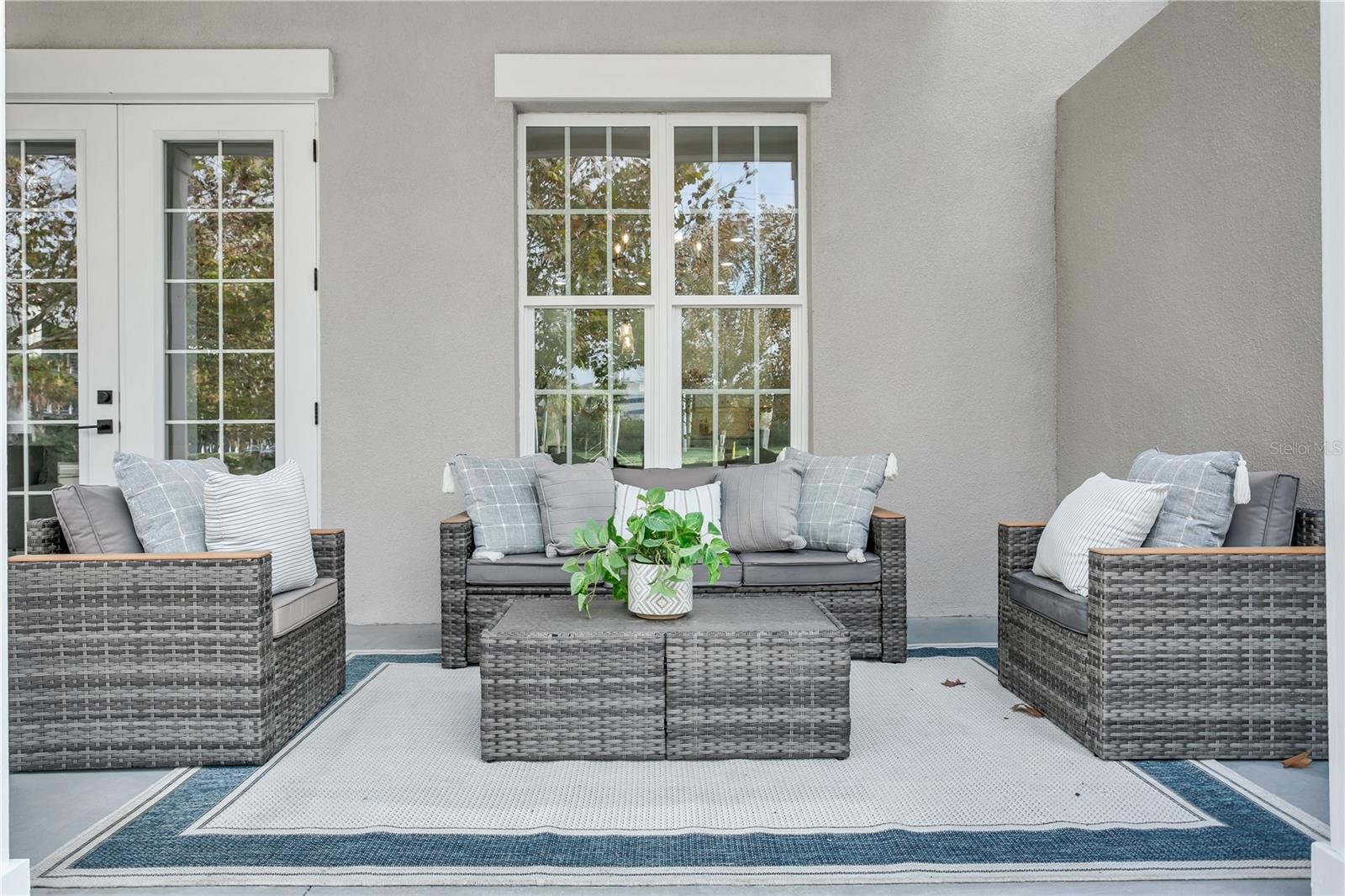 - Balcony, French Doors, Lighting, Sidewalk