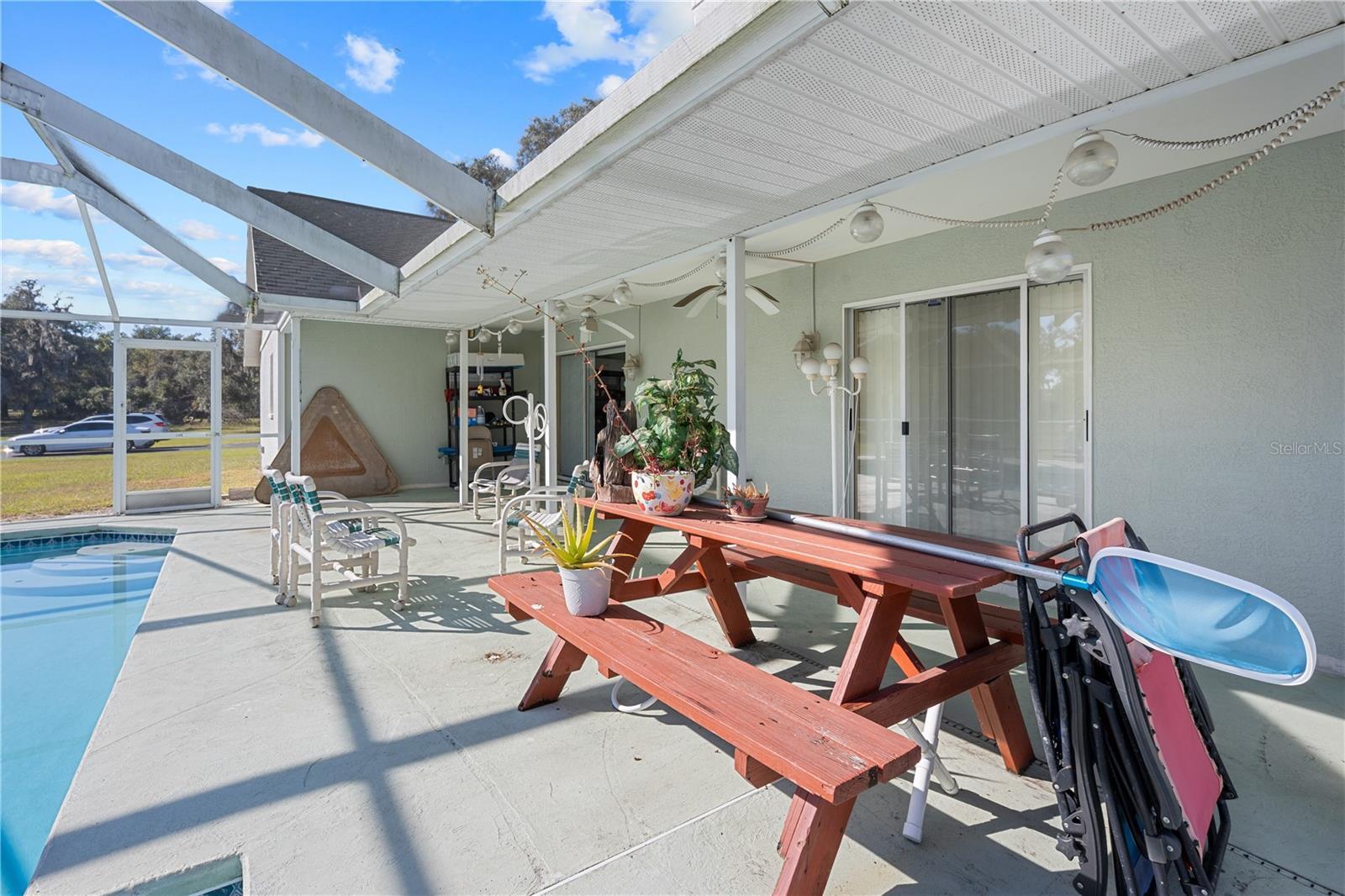 Welcome to your own private oasis—where peaceful country living meets modern comfort and convenience. Nestled on over 5 acres of beautifully maintained land, this exceptional 3-bedroom, 2-bath pool home offers the space, privacy, and versatility you’ve been searching for. As you enter the property, a long paved driveway lined with majestic oak trees creates a breathtaking first impression and guides you to the heart of this charming estate. The canopy of mature oaks provides natural shade, scenery, and a sense of tranquility that sets this property apart. The well-appointed home features a spacious split-bedroom floor plan designed for both comfort and functionality. The inviting living area with wood burning fireplace flows effortlessly into the dining space and kitchen, making it ideal for hosting family gatherings or relaxing evenings at home. Generous windows allow natural light to pour in, highlighting the serene views of the surrounding acreage. Step outside to your very own paradise—an oversized screened-in pool and patio area, perfect for cooling off on warm Florida days, entertaining guests, or simply unwinding in complete privacy. With abundant outdoor space, you have endless opportunities for gardening, recreation, or expanding your outdoor living vision. For those needing extra storage or workspace, the property includes a detached barn, offering excellent utility for equipment, tools, livestock, or hobbies. Additionally, the dedicated RV carport provides safe, covered parking for your recreational vehicle, boat, or extra vehicles—ideal for travelers, adventurers, or anyone who values convenience and protection for their investments. This exceptional property offers the best of both worlds: a peaceful rural setting with all the amenities needed for comfort, recreation, and everyday living. Whether you’re seeking a private homestead, a hobby farm, or a place with room to grow, this home delivers unmatched potential. Don’t miss this rare opportunity to own a spacious pool home on expansive acreage with endless possibilities. Come experience the beauty, privacy, and freedom this unique property has to offer!