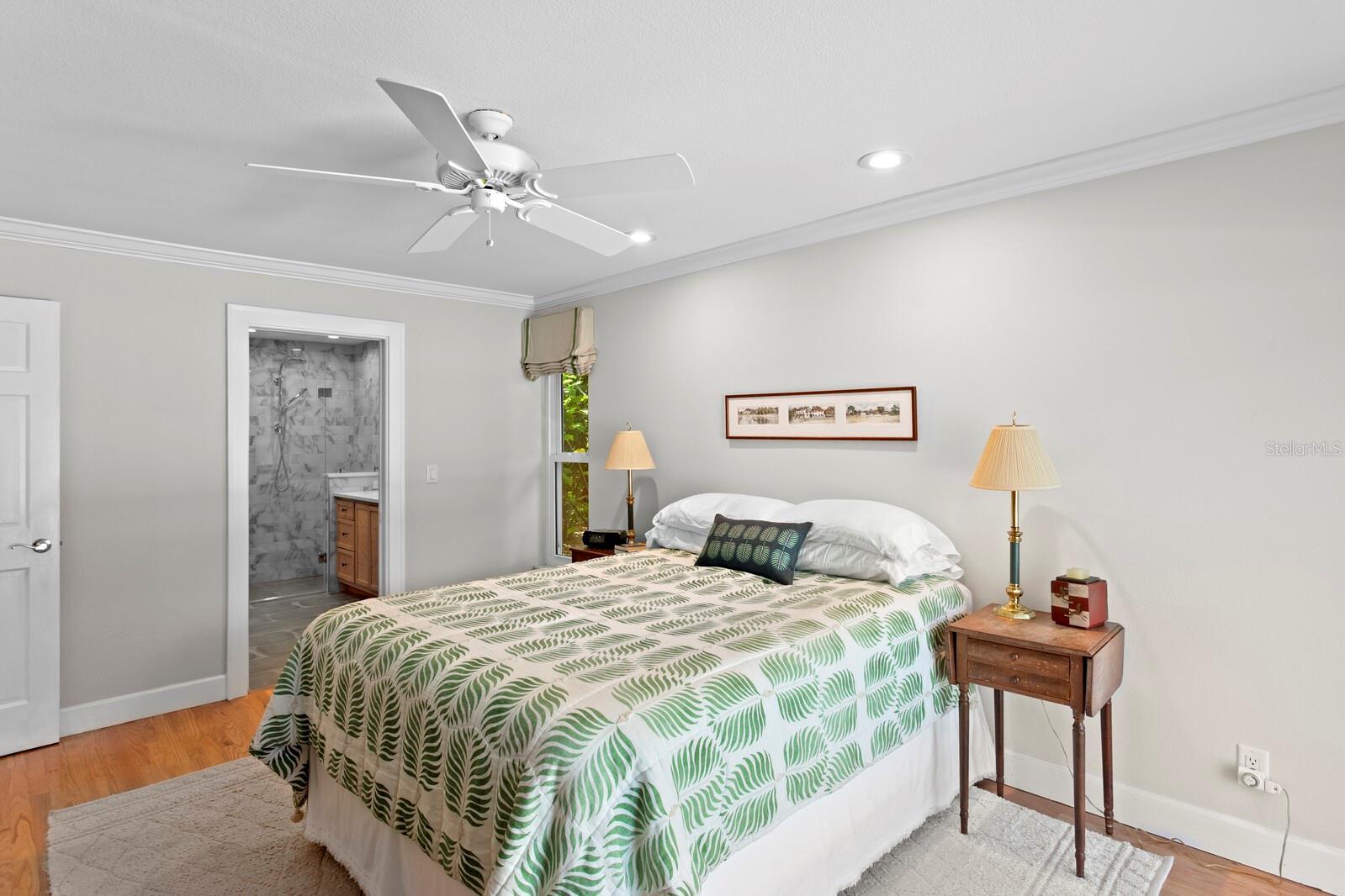 - Ceiling Fans(s), Crown Molding, Eat-in Kitchen, Kitchen/Family Room Combo, Solid Wood Cabinets, Split Bedroom, Stone Counters, Thermostat, Walk-In Closet(s), Window Treatments