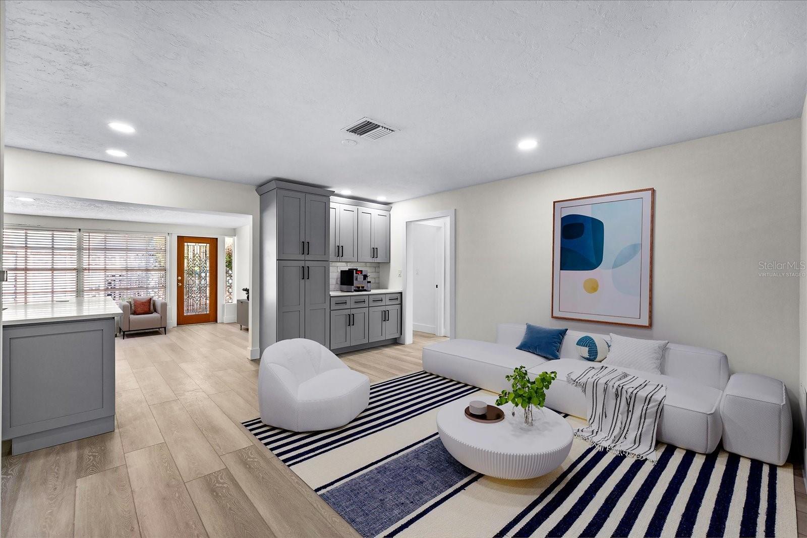 One or more photo(s) has been virtually staged. 4.5% ASSUMABLE LOAN! Don't miss out on this opportunity! Discover the perfect blend of comfort, style, and community in this beautifully remodeled, move-in-ready home located in the highly coveted Yacht Club Estates. This stunning 4-bedroom, 2-bath residence features an inviting open floor plan with a spacious, updated kitchen with quartz countertops, designed for gathering—complete with abundant counter seating that’s ideal for hosting family, friends, or guests. This home has a living room, dining room, extra seating area, a large sunroom perfect for a pool table or oversized family room. The primary suite is privately tucked away, offering a serene retreat with an en-suite bath, and a walk-in closet. A thoughtful split-bedroom layout provides added privacy for all. Situated on a large corner lot, the property offers a fenced backyard and plenty of room for a future pool on the west side yard. Enjoy the warm Florida days and evenings on the charming front courtyard patio, ideal for outdoor dining, relaxing, or a sunset cocktail. Yacht Club Estates is known for its welcoming, community-oriented lifestyle—all with no HOA. Residents enjoy an active boat club with monthly outings and parties, along with book clubs, wine nights, “mommy & me” groups, and more. It’s easy to meet neighbors, make friends, and feel right at home. Location is everything, and here you're just minutes from the Gulf beaches and vibrant downtown St. Petersburg, offering endless dining, arts, music, and entertainment options. Whether you're drawn to sun-filled beach days or the cultural charm of the city, this area has it all. A beautifully updated home, an amazing community, and an unbeatable lifestyle—don’t miss this rare opportunity!