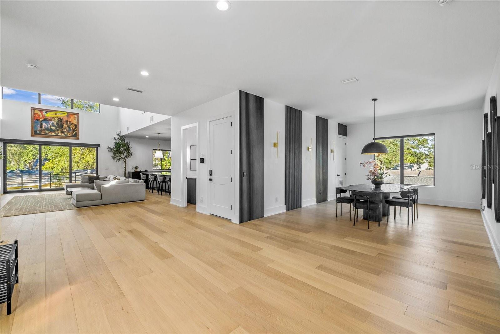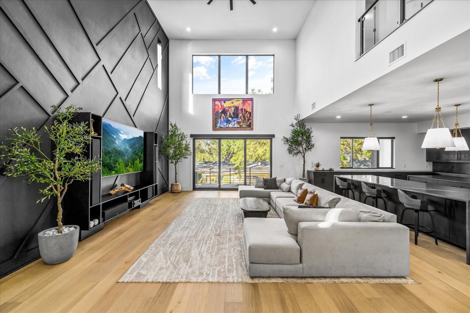 Located in the heart of Sunset Park, this modern South Tampa residence offers 4 bedrooms, 4.5 baths, and 4,200 square feet of beautifully designed living space. This 3 story home showcases a clean, contemporary aesthetic with impressive upgrades throughout. The main level features an open layout anchored by a spacious family room with a custom accent wall and a chef’s kitchen with double waterfall islands, sleek black cabinetry, professional ZLINE appliances, and a wine bar with refrigeration. Brand new European Oak hardwood flooring enhances the entire downstairs, creating a warm contrast to the modern finishes, and upgraded electric window shades provide added comfort and privacy. The main level also includes a dining room, office, and powder bath. The primary suite is located on the main level and offers a private terrace, a custom walk-in closet, and a spa-style bath with a soaking tub, a 10 foot frameless glass shower, slate flooring, and floor-to-ceiling tile. Upstairs are 3 additional ensuite bedrooms, each with large walk-in closets, plus a full laundry room for convenience. Outdoor living includes a covered terrace overlooking the private pool with waterfall spa, paver patio, and fenced side yard. Additional features include impact windows and doors, a glass stairway and railing system, a state-of-the-art security system, and an oversized garage spanning the entire first floor with parking for 10 plus vehicles, storage, and flex space. The location offers quick access to Tampa International Airport, St. Pete/Clearwater Airport, Midtown, Water Street, Hyde Park Village, beaches, dining, shopping, and top rated schools.
