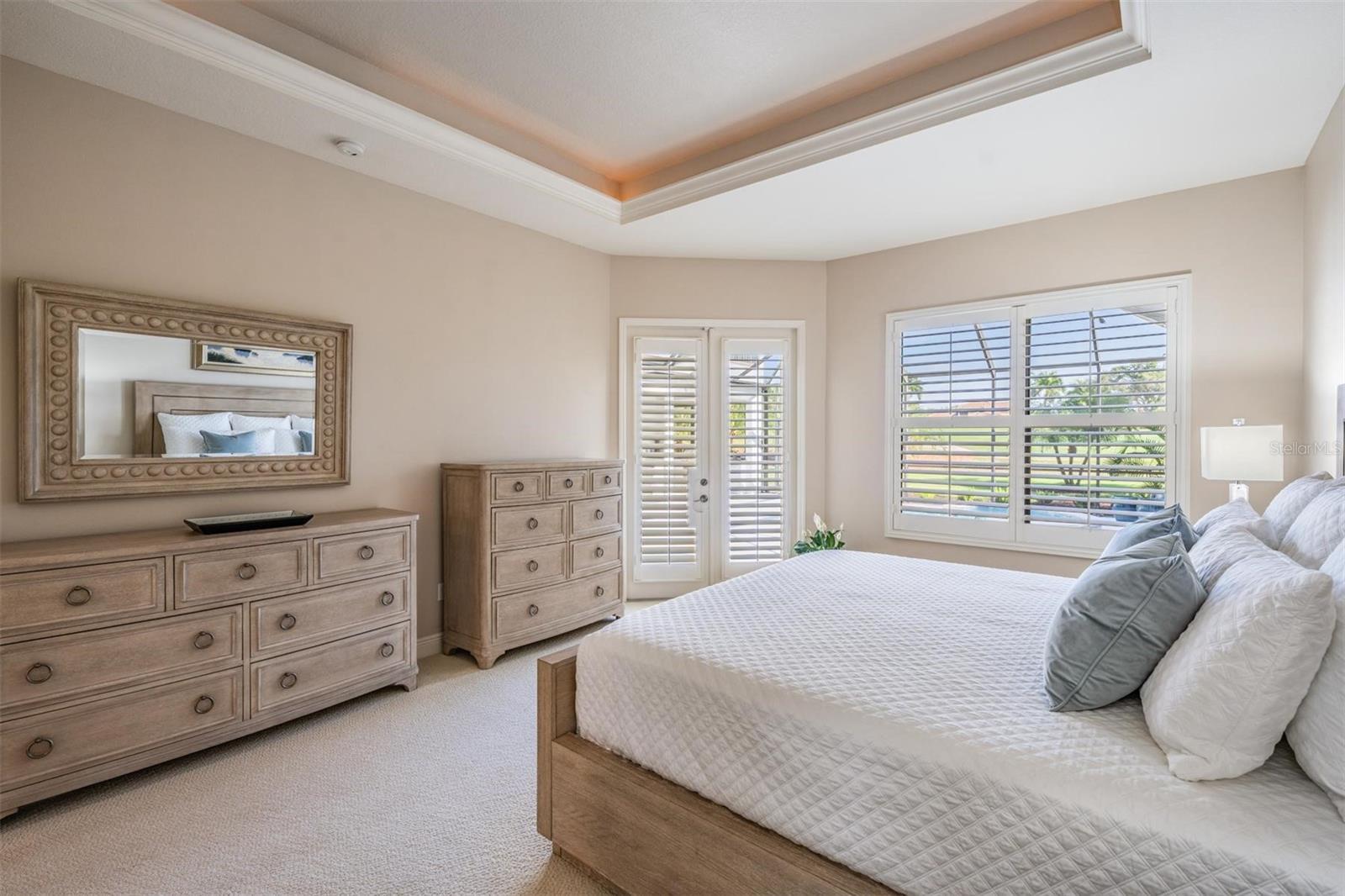 - Ceiling Fans(s), Coffered Ceiling(s), Crown Molding, Eat-in Kitchen, High Ceilings, In Wall Pest System, Open Floorplan, Primary Bedroom Main Floor, Solid Wood Cabinets, Split Bedroom, Stone Counters, Thermostat, Tray Ceiling(s), Walk-In Closet(s), Window Treatments