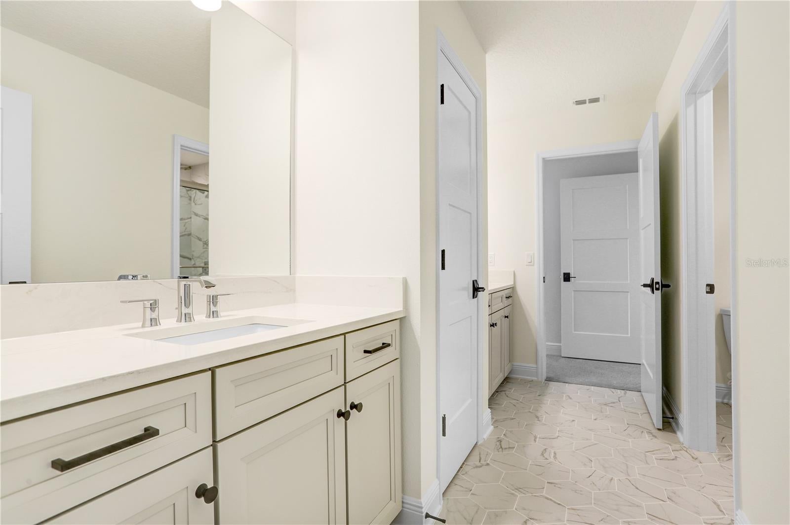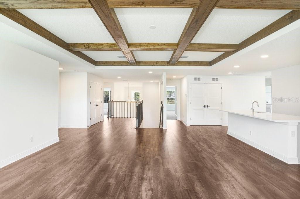 Do NOT miss out on the ONLY move in ready GRANDSAIL III in the highly desired village of Shortgrass in Two Rivers. **Since original photos were taken the sellers have professionally added wood beams at the dining and bonus room** This beautiful waterfront lot home has never been lived in and it is STUNNING!!! With 5,452 square feet spread between 2 levels you'll find 6 bedrooms, 4 full bathrooms, 2 half baths, 2 laundry rooms and a 3 car tandem garage. Upon entering the foyer your gaze will immediately be drawn to the openness of the second level with vaulted ceilings, an upgraded staircase with wrought iron spindles that overlook the dramatic entrance. If generational living is your goal, the Grandsail floorplan could check all of your boxes. It features the primary suite downstairs with 1 additional bedroom in the opposite corner with another full bath & a walk-in shower. Prepared to be wowed as all the bathrooms have been tastefully upgraded with custom tile on walls & flooring that are sure to impress! The kitchen is a chef's delight. No detail has been overlooked, from the backsplash behind the vented hood, the waterfall center island, to the over-the range pot filler and the wine fridge in the butlers pantry...simply STUNNING!!! Feel the Spa Vibes upon entering your private en-suite. The primary bathroom features a huge walk-in shower with elegant tile to the ceiling and a stand-alone soaking tub that is sure to alleviate all the stresses of the day. His & Her sinks along with His & Her closets keep the fusing at bay:) This floorplan was built with functionality in mind; there are separate laundry rooms located on both levels so no more racing up & down the stairs. The second level is an entertainer's dream! A huge bonus room has limitless options. Already set up with a large island & wet bar plus additional counter and cabinet space put your ideas into motion. Want a private home theater or media room??? Say no more....double doors will open up to a blank canvas ready for you to design! Four additional large bedrooms are located upstairs with walk-in closets & impressive Jack & Jill bathrooms. Another oversized half bath is also located upstairs for guests. If privacy is desired, then this location is ideal to relax and unwind. Located on a serene pond overlooking conservation, you'll have nothing but birds and turtles staring back while enjoying your morning cup of joe or evening merlot. This home features numerous upgrades such as sconce prewires at foyer, ceiling fan prewires in multiple locations, 5.1 theater pre-wire, 80amp pool pre-wire, additional gas drop, rear sliders ILO windows, outdoor kitchen rough-in, gourmet extended kitchen, 25'X8' trussed lanai and much much MORE!!!!! Located only minutes to Wesley Chapel, I-75 and multiple hospitals, Two Rivers is the place to be. The Landing (Social Club) is expected to be completed in late 2026. Why wait 8 to 10 months to build when you can close in 30 days. Request your private showing TODAY before this beauty gets away!!