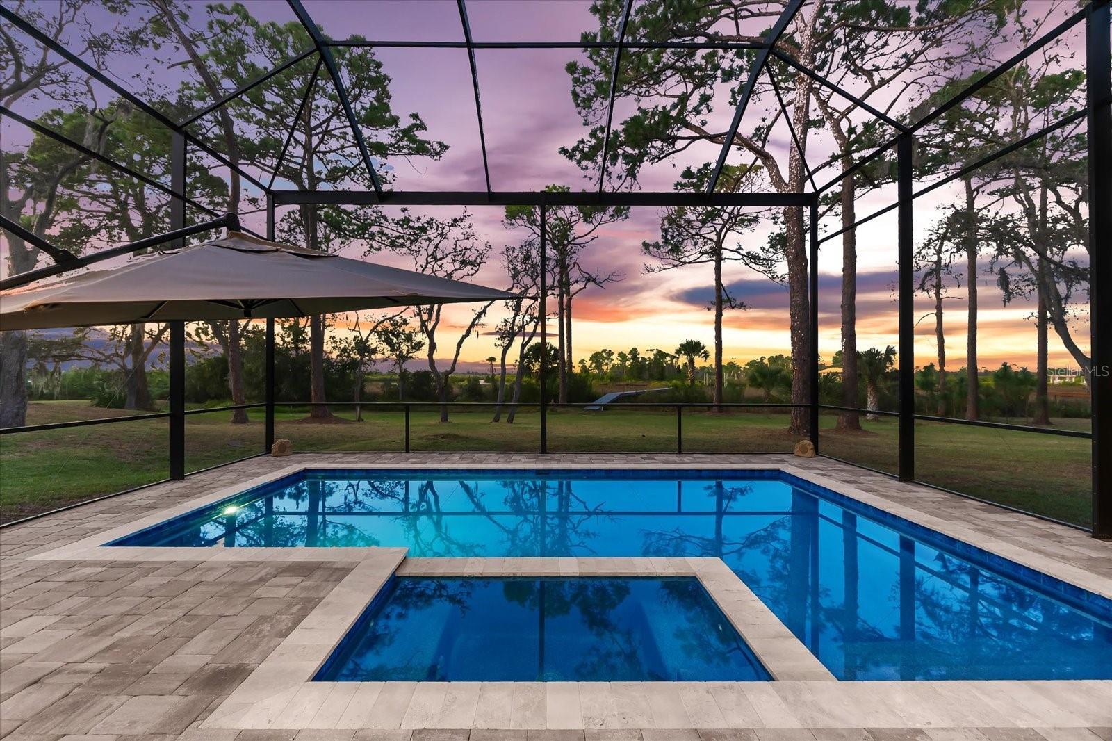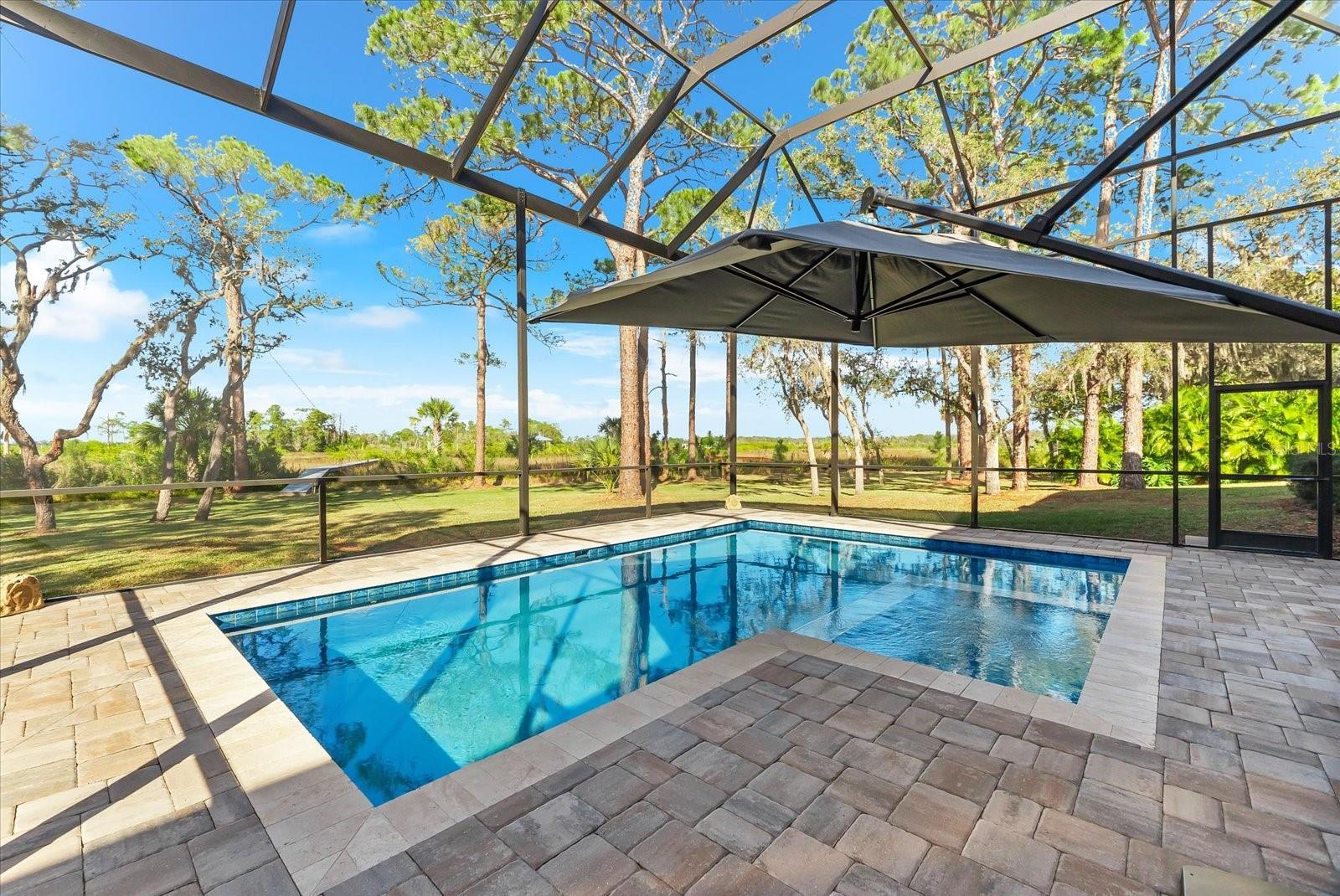 Located in the secluded Riverside Ridge community, experience the essence of waterfront living in this custom 1-story block home, built in 2022 by the award-winning Tampa builder Devonshire Custom Homes. Open the front door to the spaciousness and ultimate Northwest view of natural beauty and wildlife, complete with daily sunsets free of charge, where the view never gets old, ever. This property boasts 10-foot ceilings, 8-foot Jeld-Wen doors, a 17-foot vaulted great room, stunning hickory hardwood flooring, recessed LED lighting throughout, PGT impact-rated windows and sliding glass doors, as well as detail-oriented craftsman trim and crown molding. At 3,031 square feet, this 4 bedroom, 3 bath impeccably maintained property offers luxurious living inside and out, with almost 1.5 acres including riparian rights on the Anclote River with direct Gulf access at your disposal. You will experience gorgeous color-drenched sunsets from nearly every room in the privacy of your own peaceful space. The unique floor plan flows with ease and style. Enjoy the natural presence of a 13-foot Cambria quartz island, Bosch stainless steel appliances, in-island stainless sink, solid wood cabinetry, and gas stove top which anchor the elegance of this galley kitchen. The spacious butler’s pantry comes complete with a butcher block countertop, outlets and lots of storage for the most discerning chef and organizer. From the kitchen, the 4 panel sliders open up to a whole new world: outside living with a built-in outdoor kitchen and outfitted with granite countertop, cabinets, gas pizza oven, gas grill, stainless hood, refrigerator and stainless sink. Upgraded railings and panoramic pool screen allow for the utmost rewarding view. The sparkling in ground saltwater pool and infinity gas heated spa enhance the serenity. Irrigation system, mature landscaping, private dock with electrical capability all contribute to your personal oasis. Other upgrades and enhancements include: dual zoned HVAC units, surround sound speakers, custom built-in closets, in wall pest control, security system, water softener, 500-gallon propane tank, tankless water heater, washer/gas dryer, rain gutters, warranteed shingle roof, sealed pavers driveway, sidewalk, lanai and pool deck with travertine coping. In addition, garage is an oversized 2 car with an epoxy floor, lots of built-in shelving, bike racks, EV charger, WIFI garage door and peg boards. This pristine place sits at 13.5 feet above sea level and sustained no interior or pool flooding during any hurricanes. If you’re searching for the ideal turnkey, non-gated waterfront home with character, THIS IS IT! P.S., you’ll even know your postal carrier and that’s pretty neat!