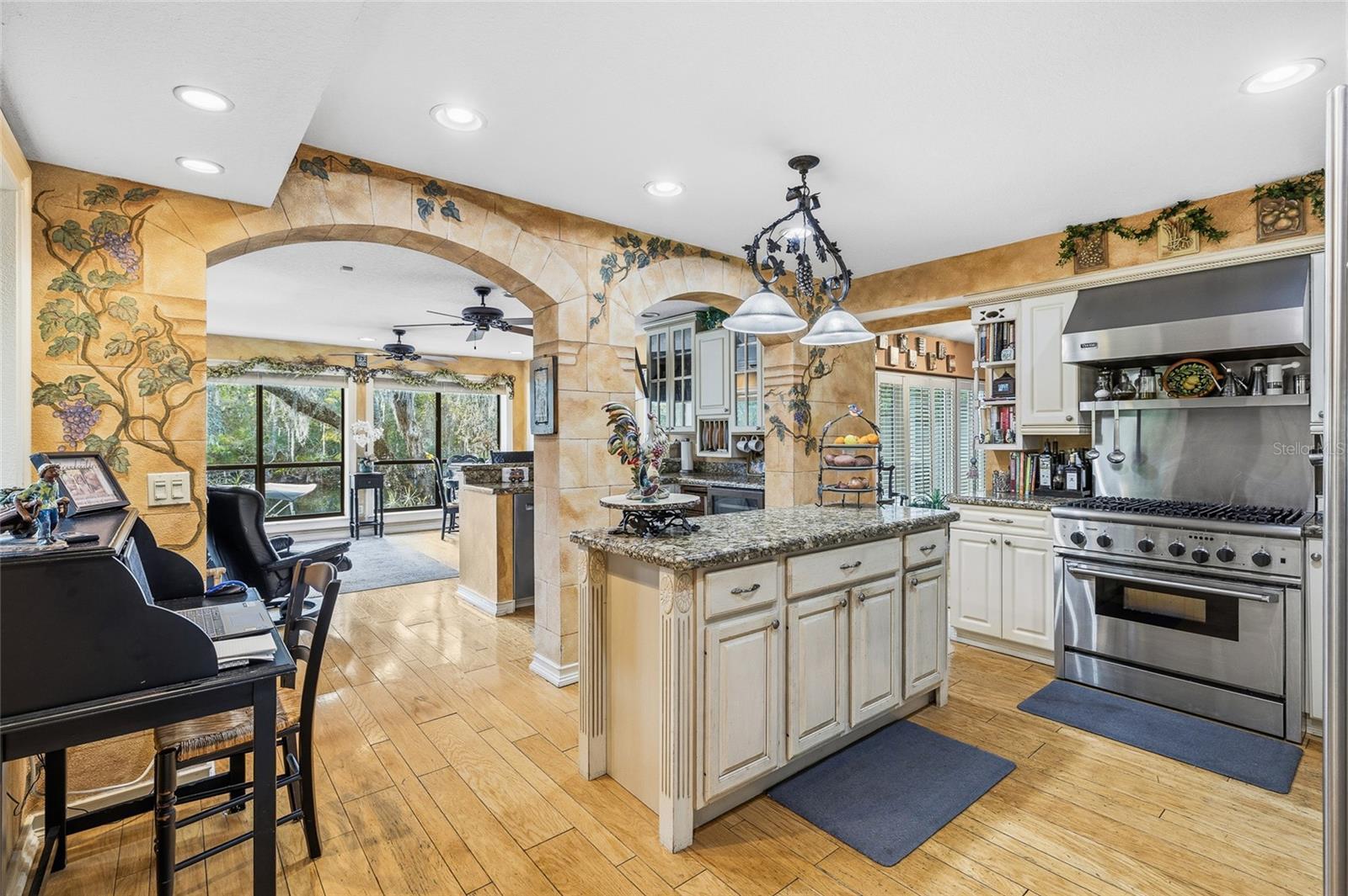 Under contract-accepting backup offers. Welcome to the riverfront retreat you’ve been dreaming of—serene waters, lush landscaping, and resort-style living await in the highly sought-after Temple Terrace Estates. From the moment you arrive, the peaceful setting, mature landscaping, and luxurious outdoor spaces make it clear that this is a one-of-a-kind sanctuary. Situated on an expansive .39-acre lot with a generous horseshoe driveway and side-entry garage, the home welcomes you with a charming elevated catwalk leading to the front entry. Step inside to a warm, inviting foyer highlighted by an elegant open wood banister staircase and dramatic vaulted ceilings that immediately elevate the space. The downstairs layout offers multiple inviting living areas designed to capture the beauty of the outdoors. A comfortable living room just off the kitchen features vaulted ceilings, a cozy fireplace, and plantation shutters overlooking the lush backyard and side patio. The kitchen opens to a second family room filled with windows framing stunning river and backyard views, with French doors leading directly to the pool deck. The kitchen itself showcases cream cabinetry, speckled granite countertops, high-end appliances including a desirable gas range, a center island, and a peninsula with bar seating—perfect for entertaining. A lovely formal dining room with soaring ceilings adds to the home’s charm. The first floor also includes a stylish powder bath, a spacious laundry room, and two guest bedrooms connected by a Jack-and-Jill bathroom. Upstairs, a large bonus room and secondary living area provide additional flexibility, along with an adjoining sunlit space wrapped in windows overlooking the peaceful landscape. The primary suite is a true retreat, featuring a beautifully updated primary bathroom with a large walnut vanity topped with granite counters and a stunning walk-in shower with a picture window that floods the space with natural light and brings nature into the room. The primary suite also offers a walk-in closet and a private balcony with serene river views. The fourth bedroom features its own balcony facing the front of the home and has access to a dedicated full bathroom just outside the room. The outdoor living space is undeniably the showstopper—your own private resort. Enjoy multiple patios, gazebos, and a beautiful pool deck surrounded by lush, tranquil landscaping, all set against the backdrop of the shimmering river. Other important features include a new roof installed in 2025, new fencing on the pool side, new wood decking on the master balcony, new wood decking on the riverfront gazebo, a transformer switch for generator hookup, and a pool resurfaced within the past few years. Whether you love fishing, boating, or simply relaxing by the water, this property offers endless possibilities for enjoying Florida living at its finest. Don’t miss this rare opportunity to own a true riverfront paradise—where luxury, tranquility, and natural beauty come together in perfect harmony. Welcome home.