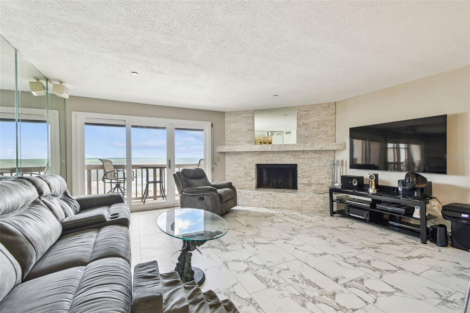 Welcome to Your Slice of Paradise – Gulf Front Penthouse in Indian Shores Experience true beachfront luxury in this DIRECT GULF FRONT PENTHOUSE, where coastal charm meets refined comfort. Located in the heart of Indian Shores, this exceptional 4-bedroom, 3-bath residence offers panoramic views of the Gulf and the Intracoastal Waterway, delivering the ultimate in Florida beach living. Step inside to find sleek, modern updates complemented by timeless finishes. The open-concept great room is anchored by a striking wood-burning fireplace, with ceramic tile flooring flowing throughout the living areas, kitchen, and hallways. The gourmet kitchen is a chef’s dream, featuring custom cabinetry, stone countertops, a breakfast bar that seats six, a closet pantry, and a dry bar with wine cooler—ideal for entertaining. Two spacious en-suite bedrooms with updated baths are located on the main floor, offering privacy and comfort for family and guests. Through the sliding glass doors, step out to your Gulf-front balcony and soak in stunning sunsets and the sound of waves. The upper level boasts a grand master suite with cathedral ceilings, a private beachfront balcony, and expansive views of the Gulf. A versatile fourth bedroom on this level is perfect for a home office, media room, or yoga studio. With two additional balconies, you can enjoy sunrises over the Intracoastal and sunsets over the Gulf—all from your own private retreat. Additional features include: • Gated access • Two assigned under-building parking spaces • Private storage closet for beach gear, bikes, and more • Recently renovated building exterior with Hardie Board siding Whether you’re seeking a primary residence, a luxury vacation home, or a high-end investment, this penthouse offers vacation-style living all year long. Conveniently located near popular restaurants, beach bars, coffee shops, entertainment, and the beach trolley. Don’t miss this rare opportunity—schedule your private showing today and start living the beachfront lifestyle you’ve always dreamed of.