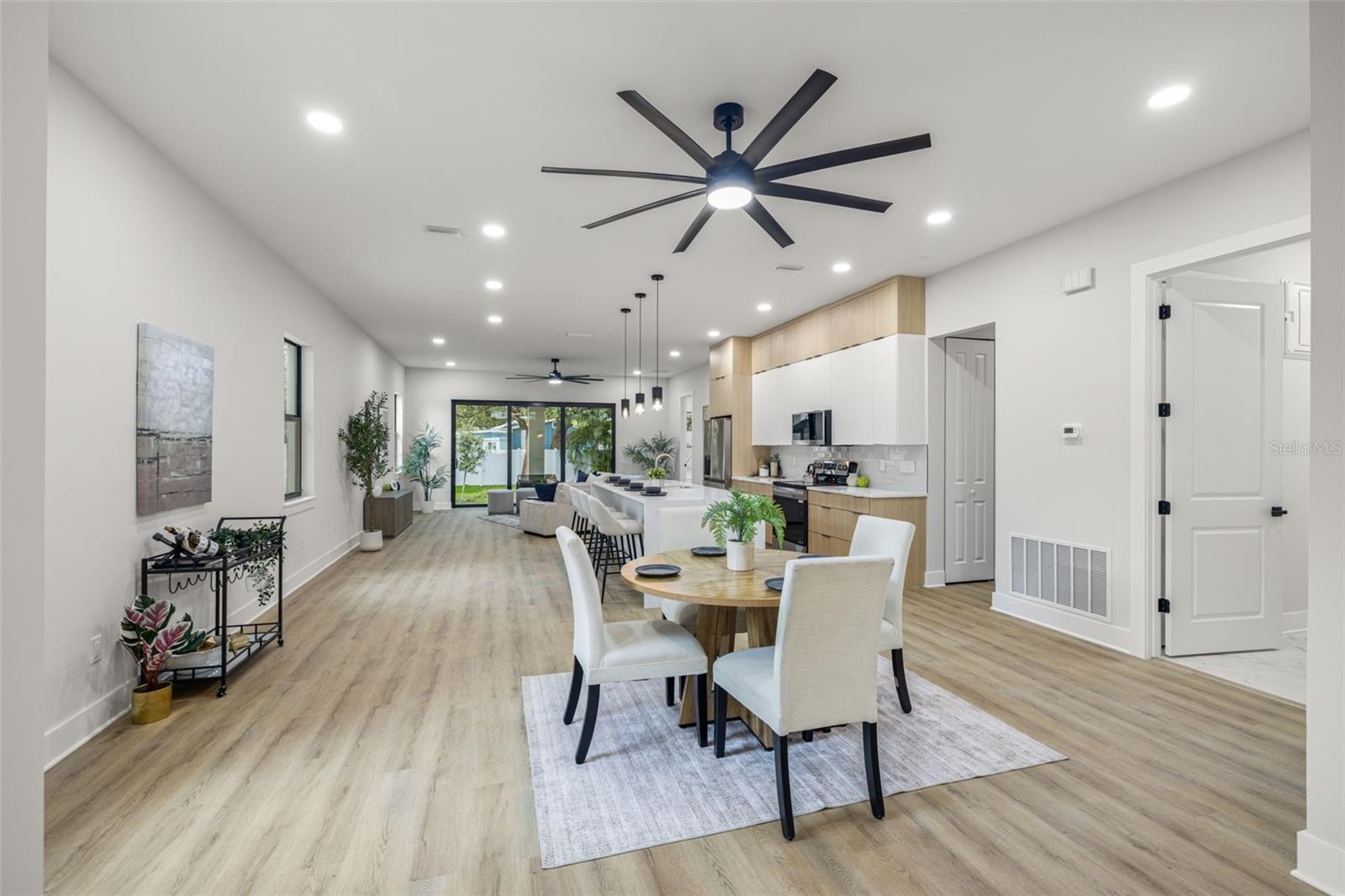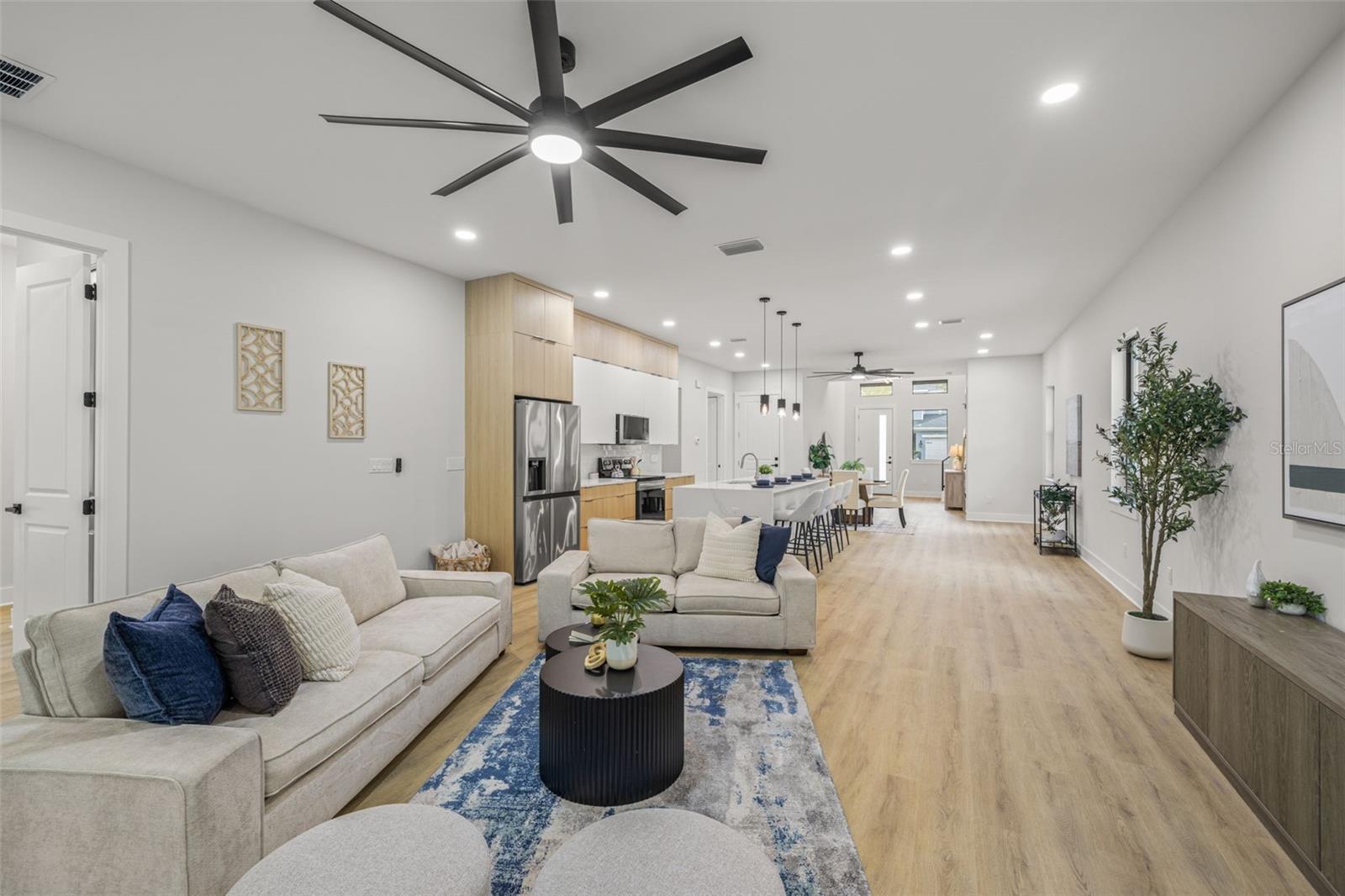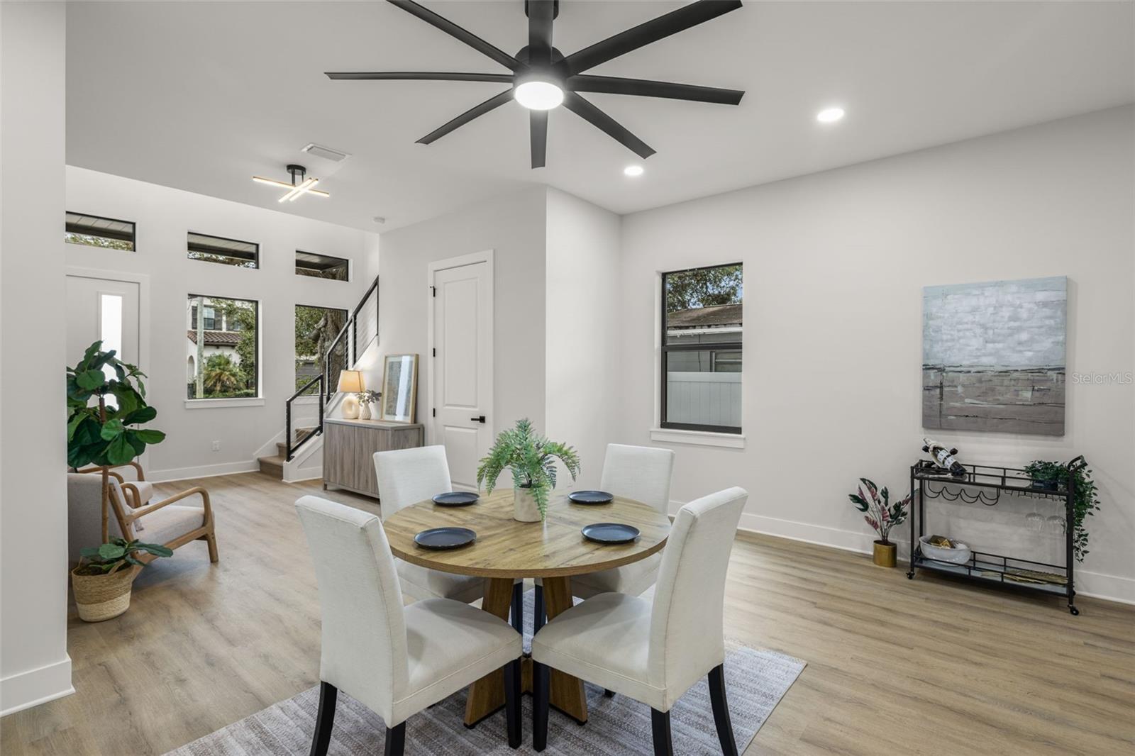 - Ceiling Fans(s), Eat-in Kitchen, High Ceilings, Kitchen/Family Room Combo, Living Room/Dining Room Combo, Open Floorplan, Primary Bedroom Main Floor, Solid Surface Counters, Solid Wood Cabinets, Stone Counters, Walk-In Closet(s)