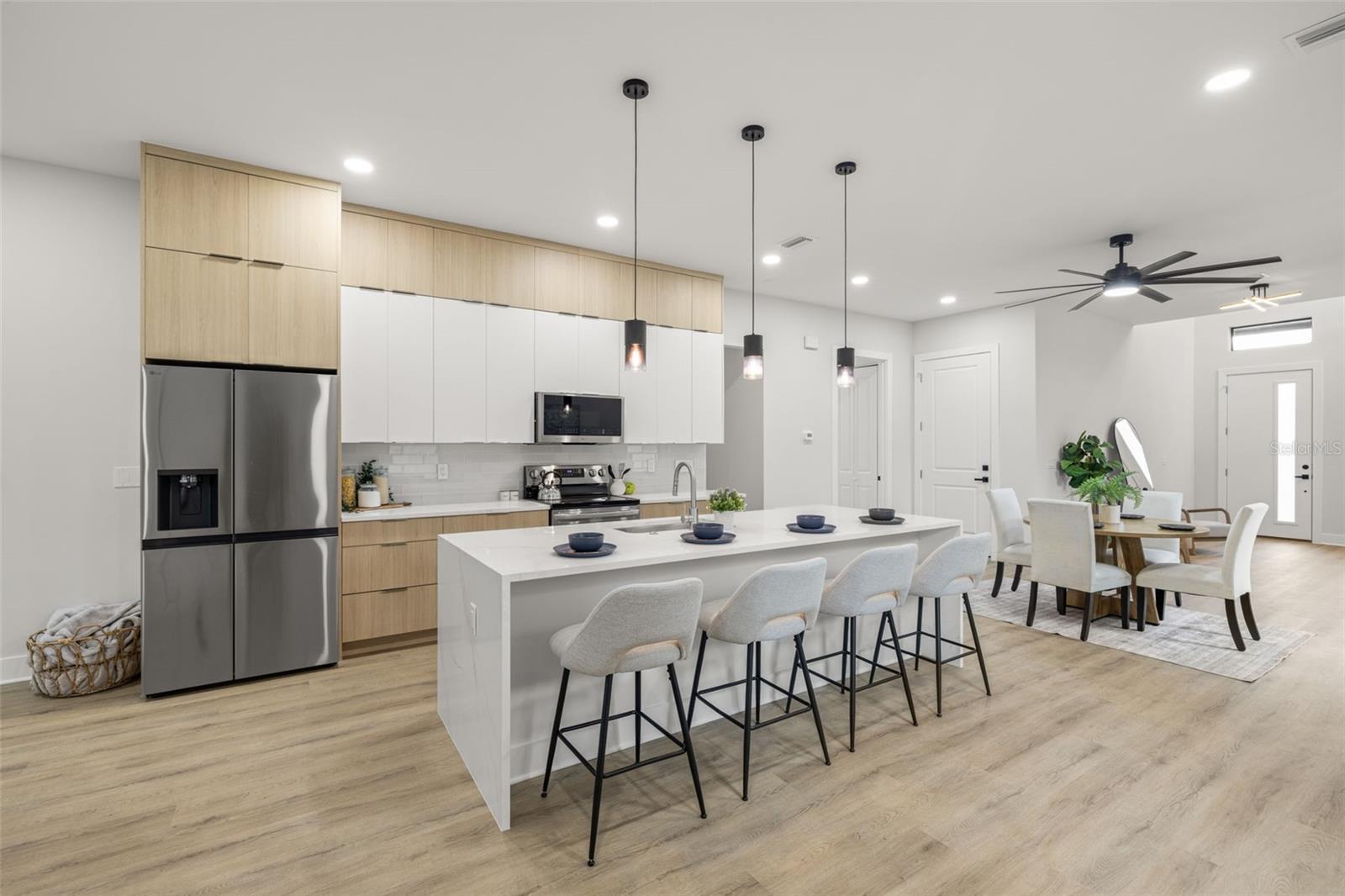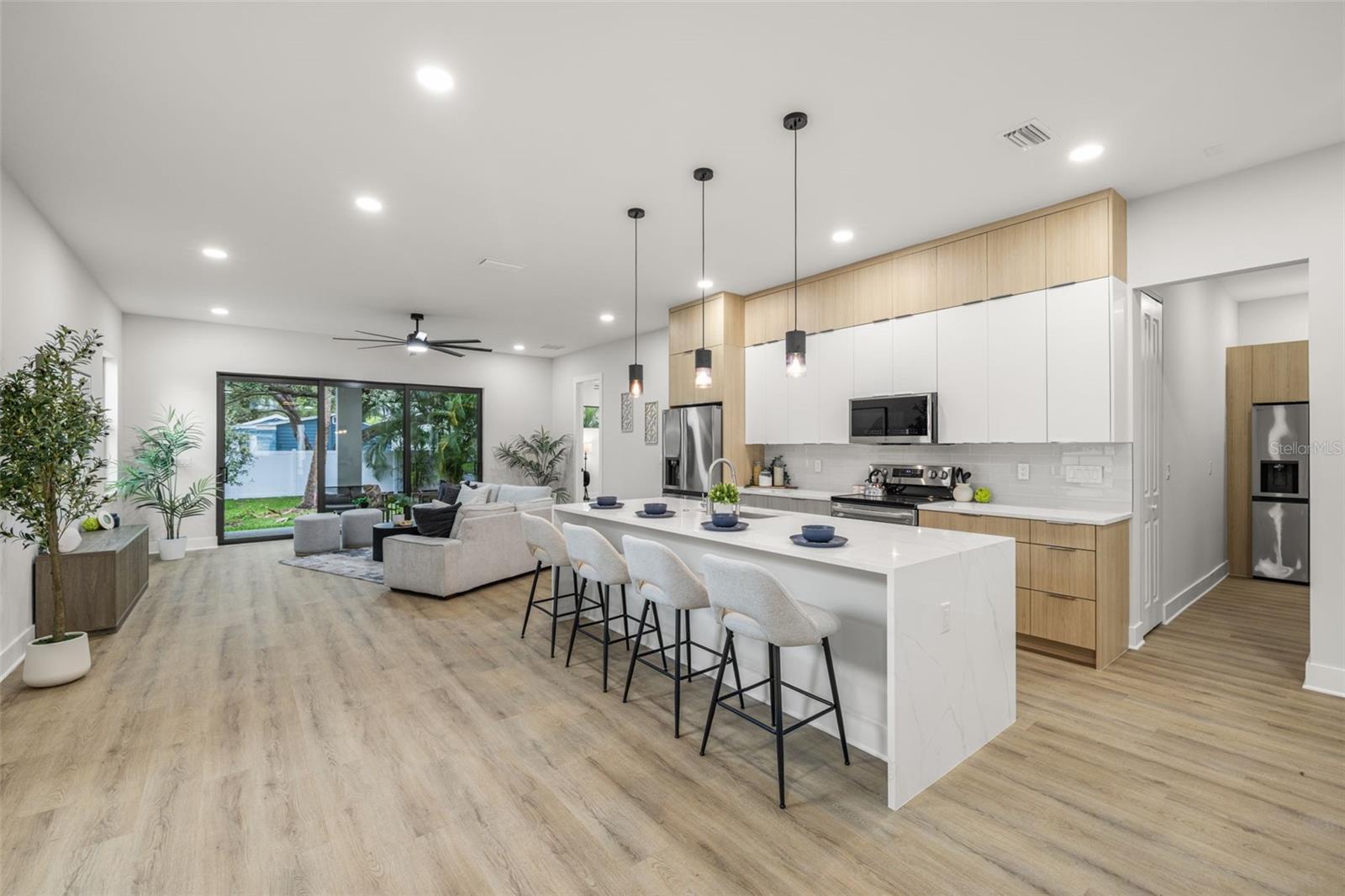 Welcome to this stunning NEW construction home offering the best of South Tampa living in a NO FLOOD ZONE. Featuring 4 bedrooms, 4.5 bathrooms, and 3056 sqft of living space, this home is thoughtfully designed to deliver modern style & everyday comfort. From the moment you enter, you’re greeted by soaring ceilings and an abundance of natural light, highlighting the impressive two-story living area and statement staircase. The open-concept first floor seamlessly connects the living, dining, and kitchen spaces, perfect for both everyday living and entertaining. The chef-inspired kitchen features stainless steel appliances, custom cabinetry, quartz countertops, and an exceptional butler’s pantry with its own refrigerator. Yes, two refrigerators for ultimate convenience! The FIRST FLOOR PRIMARY suite is a true retreat with two walk-in closets and a spa-like ensuite featuring double vanities, a walk-in shower, and a soaking tub. Upstairs, an oversized loft filled with natural light offers the ideal flex space for a media room, office, or lounge. You’ll also find three generously sized bedrooms, including two with ensuite bathrooms, plus an additional full bath. The laundry room is equally well-appointed with custom cabinetry, a sink, and ample storage and workspace. Step outside to the covered lanai with a built-in grill and hood area, perfect for enjoying Florida’s year-round outdoor lifestyle. The massive, fully fenced backyard provides plenty of space for entertaining, play, storage, or future enhancements. Additional highlights include a 2-car garage and a driveway that can accommodate up to four vehicles. Ideally located just minutes from Bayshore Blvd, about 10 minutes to Downtown Tampa, and under 25 minutes to Downtown St. Pete, you’ll be close to top dining, shopping, and local attractions. Don’t miss the opportunity to see this exceptional home, schedule your private showing today!