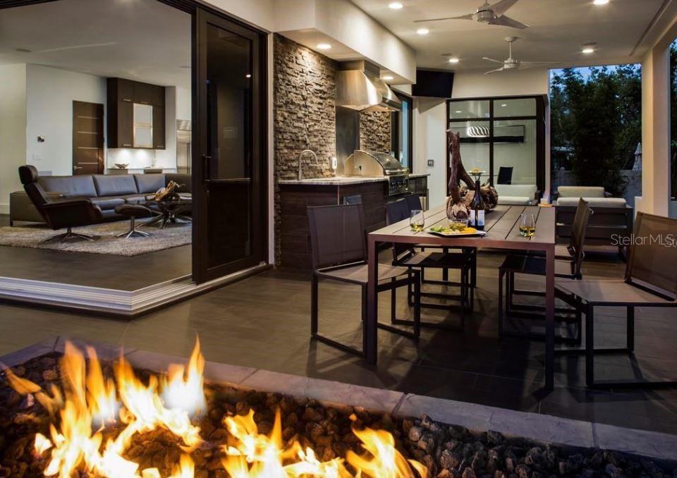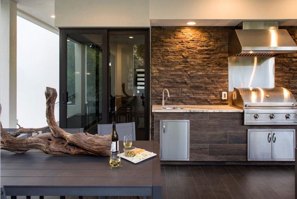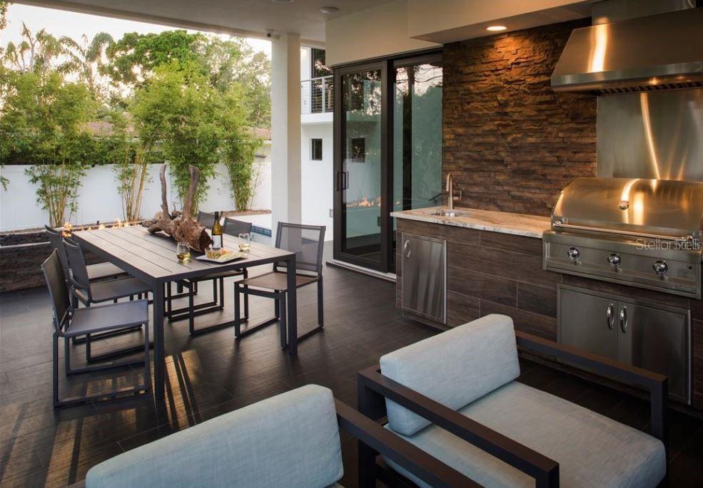 Thoughtfully designed and impeccably built, this exceptional Snell Isle residence reflects the vision of a local custom home builder who crafted the home for personal living, with no detail overlooked. Spanning 3,784 square feet, the home blends refined architecture with natural stone accents and an effortless connection between indoor and outdoor spaces, all enhanced by abundant natural light. Designed for both everyday living and entertaining, the open interior features 10’ ceilings and a gourmet kitchen equipped with Sub-Zero, Wolf, and Miele appliances, opening to the Great Room and expansive outdoor living areas. The oversized lanai includes a fully equipped outdoor kitchen, interior and exterior fireplaces, and overlooks a resort-style pool and heated spa for year-round enjoyment. The primary suite occupies its own private level, offering front and rear balconies for peaceful retreats. Upstairs also includes a game room loft, a private study, and two en-suite bedrooms, while a downstairs guest suite provides ideal privacy or flexible office space. Additional highlights include an oversized two-car garage, whole-home surround sound, smart-home features, whole-house generator, on-demand gas water heaters, extended HVAC warranties, and construction built one foot above FEMA requirements—all set within one of St. Petersburg’s most desirable neighborhoods.