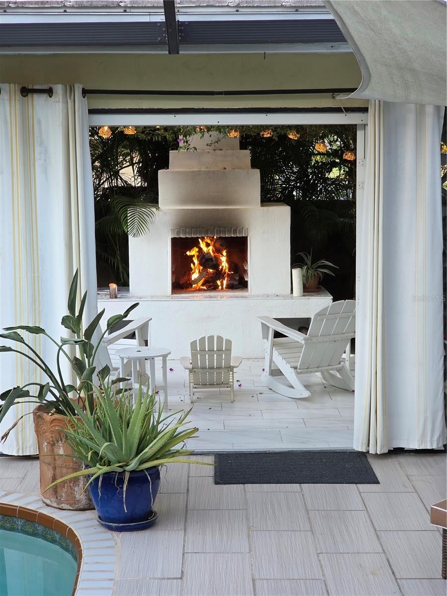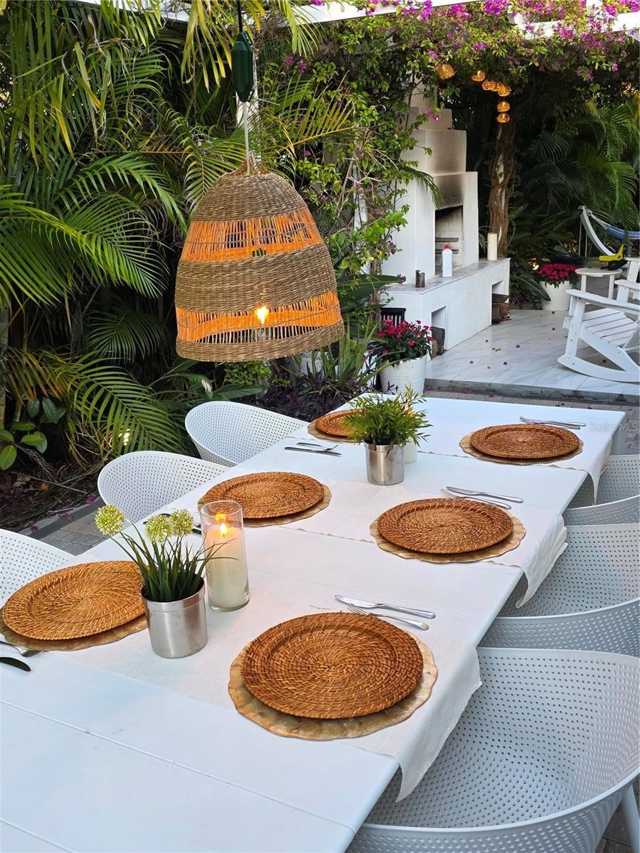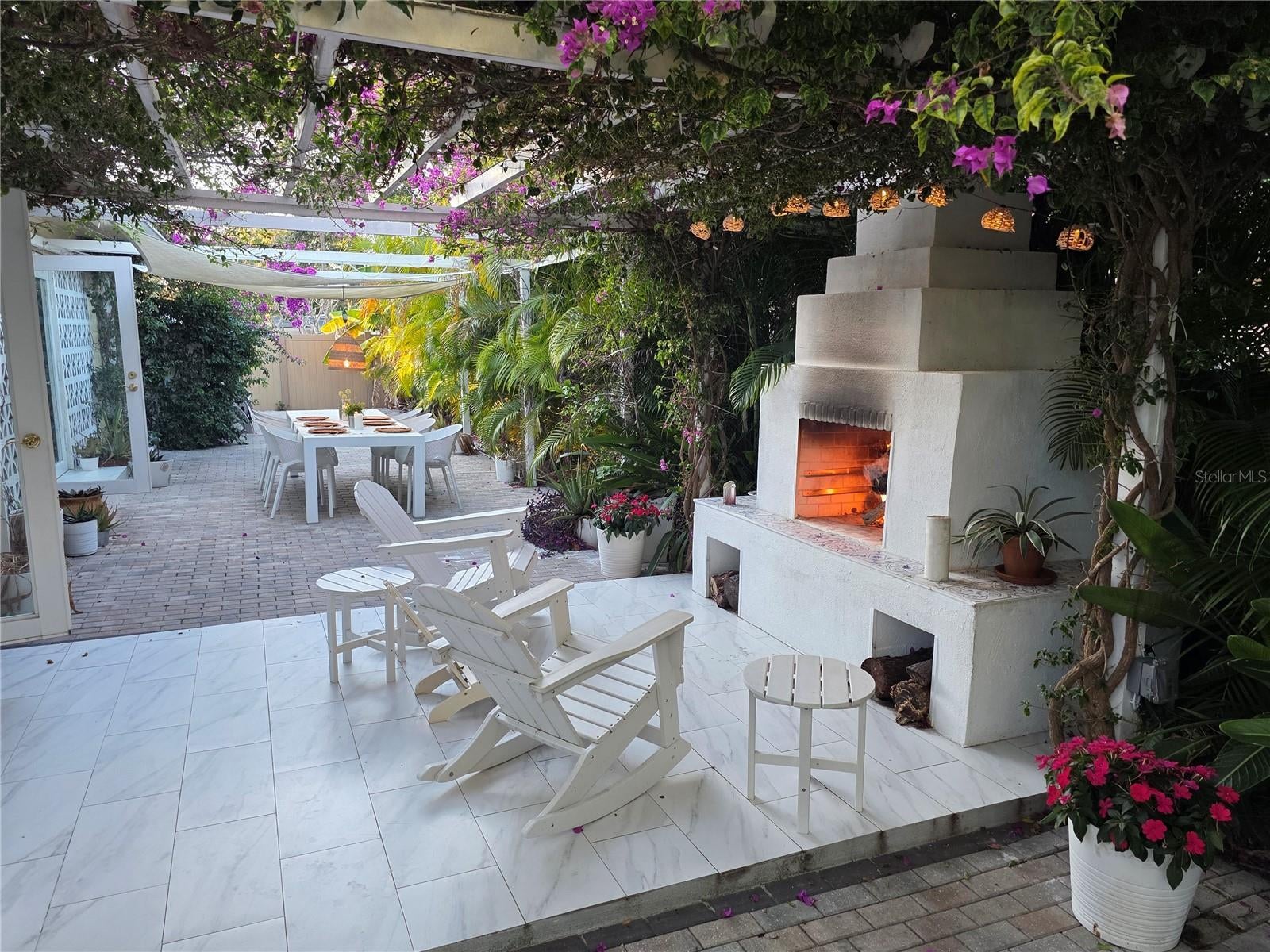 - Courtyard, Fire Pit, French Doors, Garden, Hurricane Shutters, Lighting, Sliding Doors