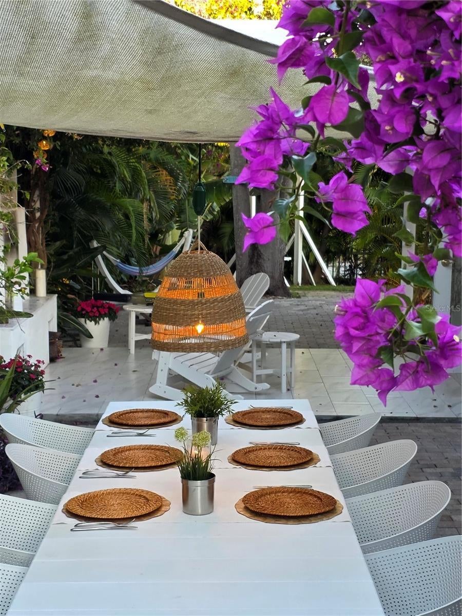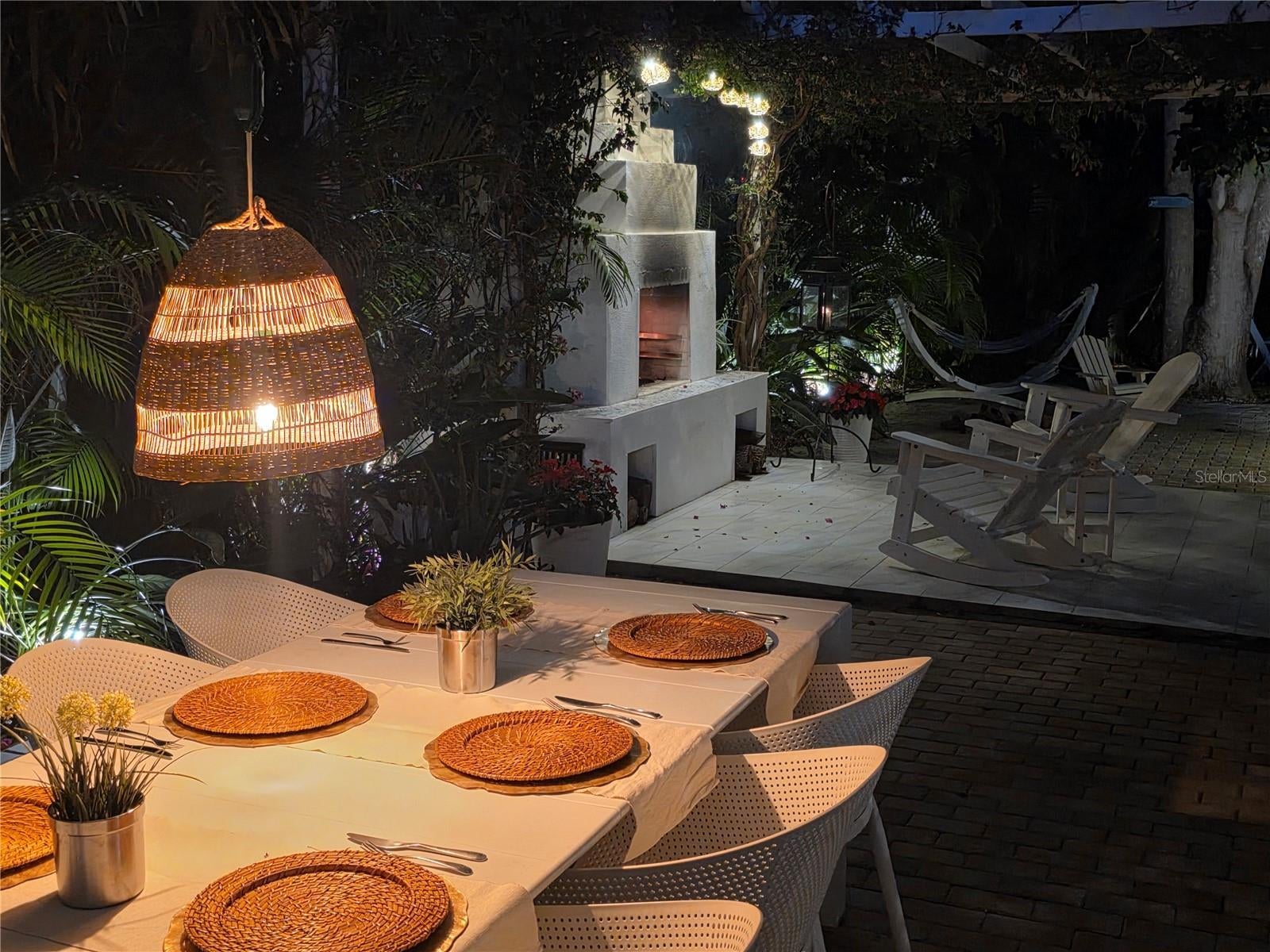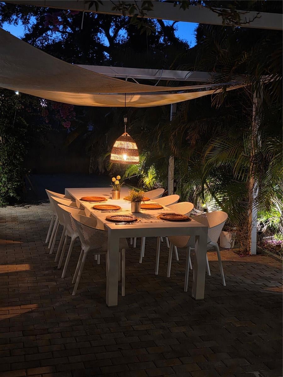 - Courtyard, Fire Pit, French Doors, Garden, Hurricane Shutters, Lighting, Sliding Doors