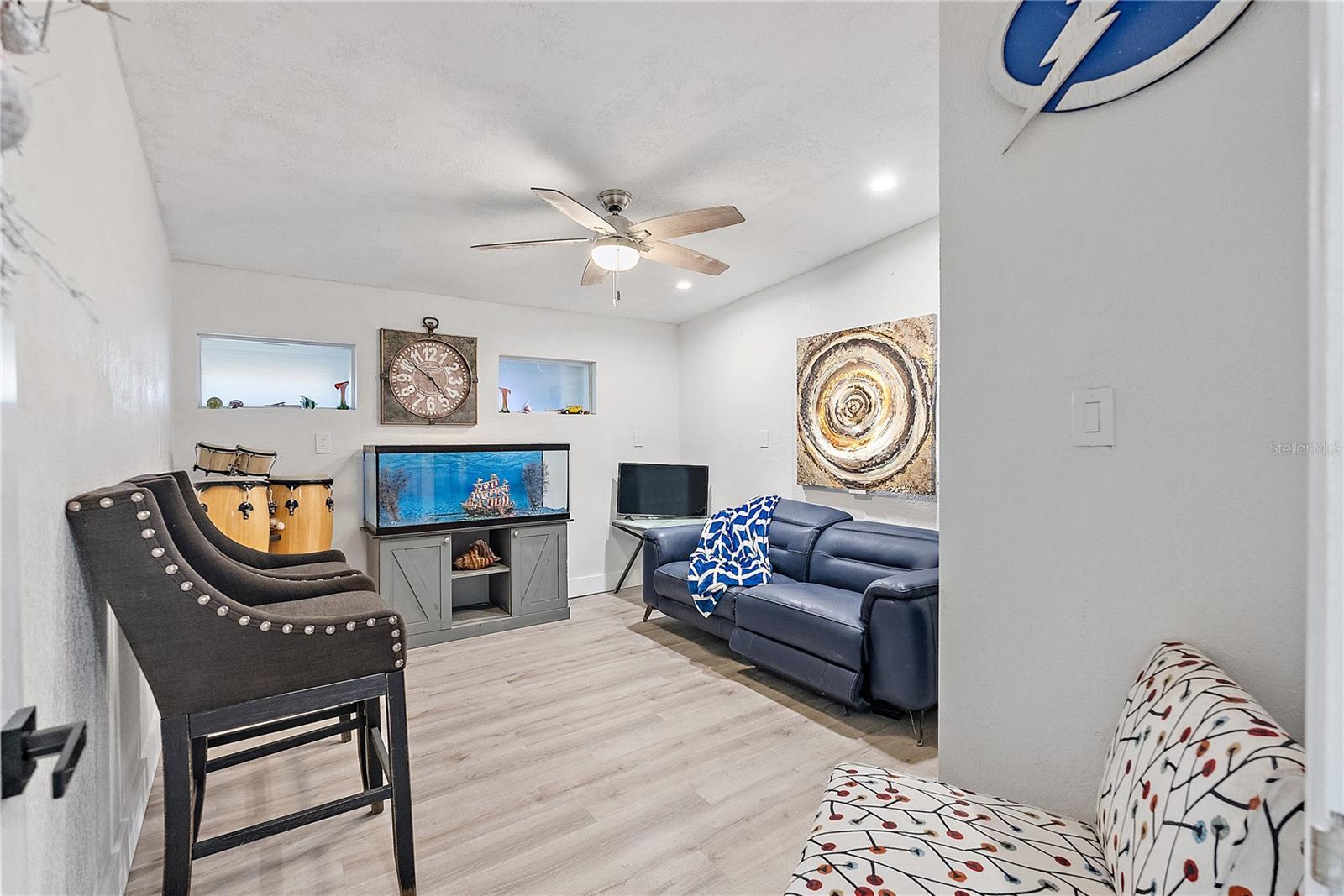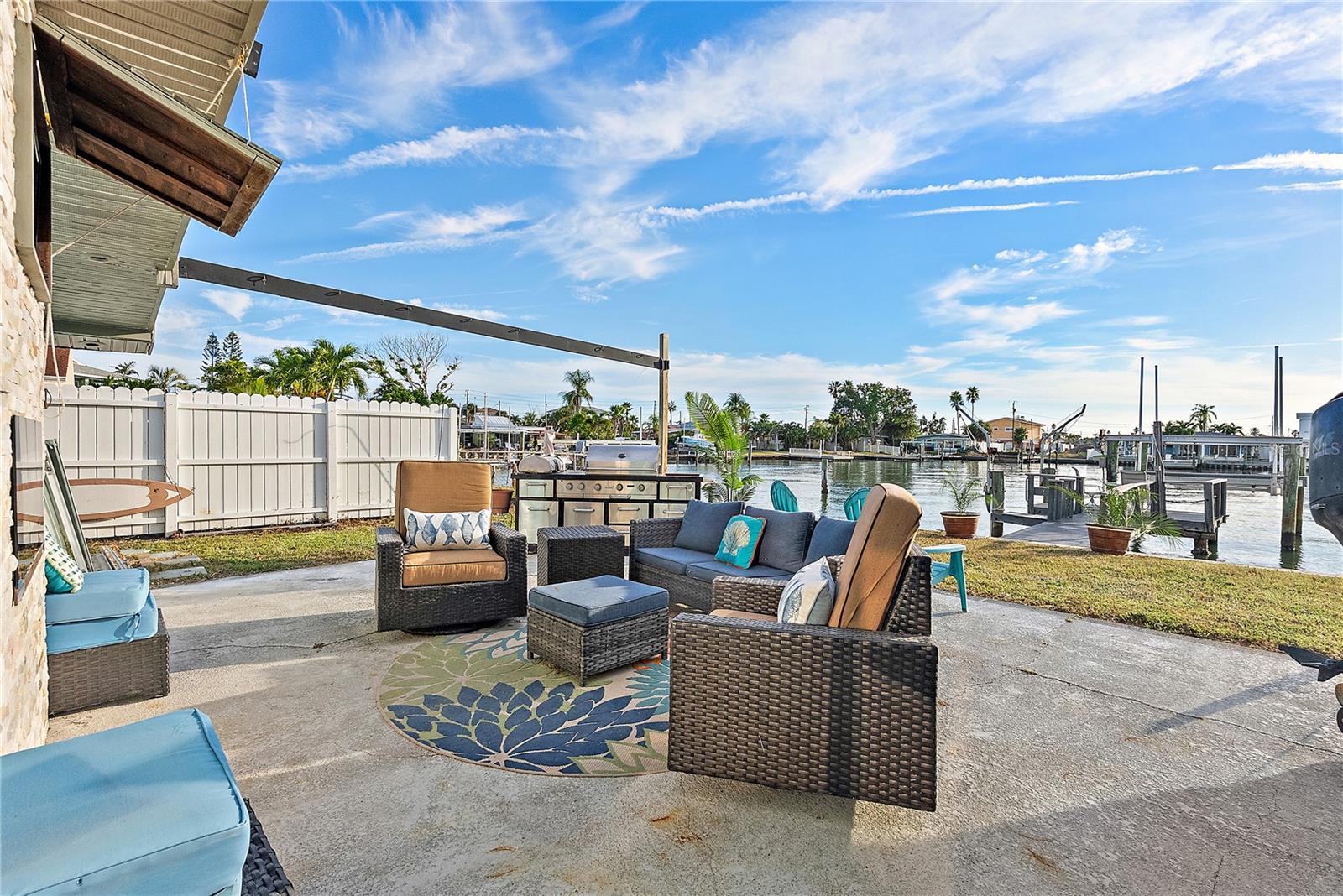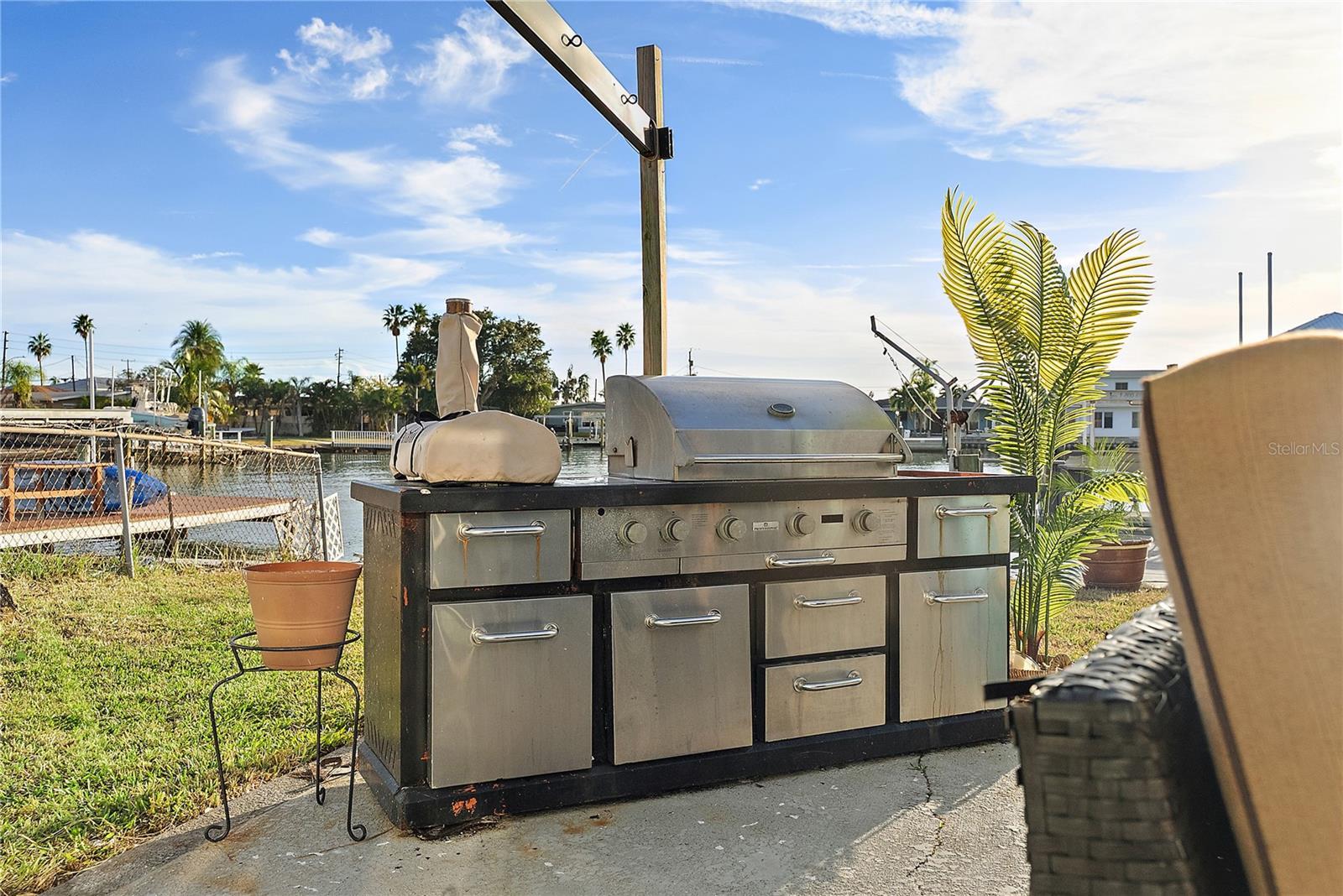 Large 4 bedroom 3 bath home is looking for its new owner. The open concept layout of the home provides for excellent entertaining opportunities by providing versatile living spaces and a large kitchen featuring 3 separate counter-bar top areas for seating as well as standard table seating. The kitchen features stainless steel appliances including a slide-in LG range with AirFry and WIFI capabilities, upgraded granite countertops, marble backsplash and large array of wood cabinets. All three bathrooms have been updated and feature new, modern motiffs; each one with its own flair. The four bedrooms are situated in somewhat separate locations allowing each one its own privacy. One of the guest bedrooms actually converts to a second ensuite. There are a few built-in design elements already included within the home; ledger-rocked electric fireplace wall with tv mount, wood beamed ceilings and shiplap walls to name a few. There is no lack of storage in this home as it features a separate, fully shelved, walk in storage room (23ft x 3.5ft) within the interior of the home. The rear of the home provides the opportunity to view picturesque waterview sunsets nightly. Also the large (20 x 16) poured slab patio houses an additional ledger rocked, electric fireplace which produces heat (for those occasional chilly nights) and provides easy viewing of the annual holiday boat parade as well as multiple firework displays provided by local municipalities several times per year right from your own backyard. The property has a composite dock with electric and water, 12K lb boat lift, kayak boat rack and a storage shed.